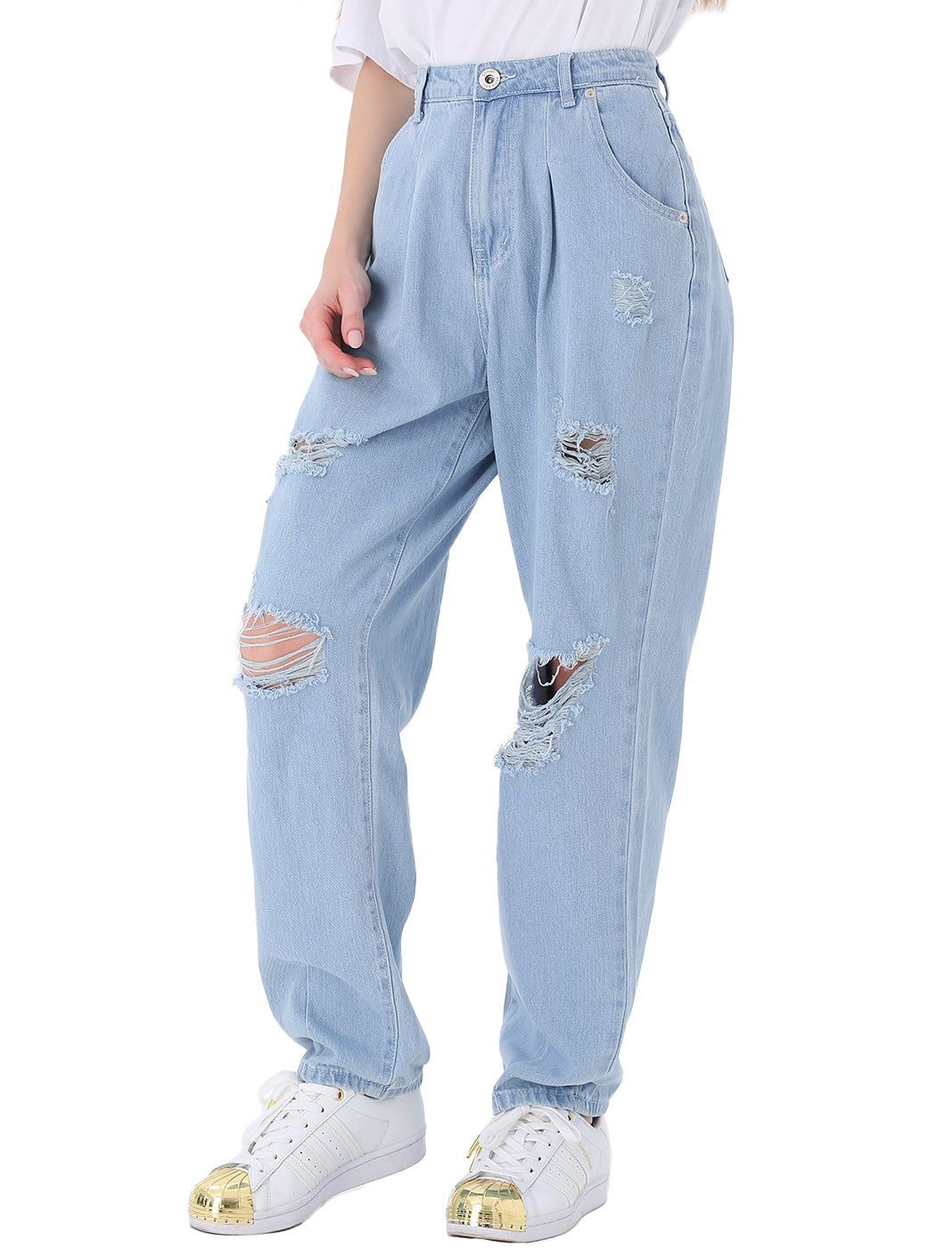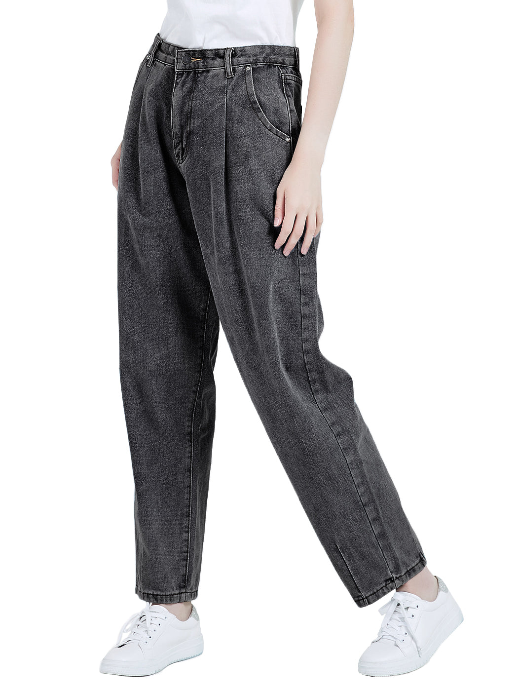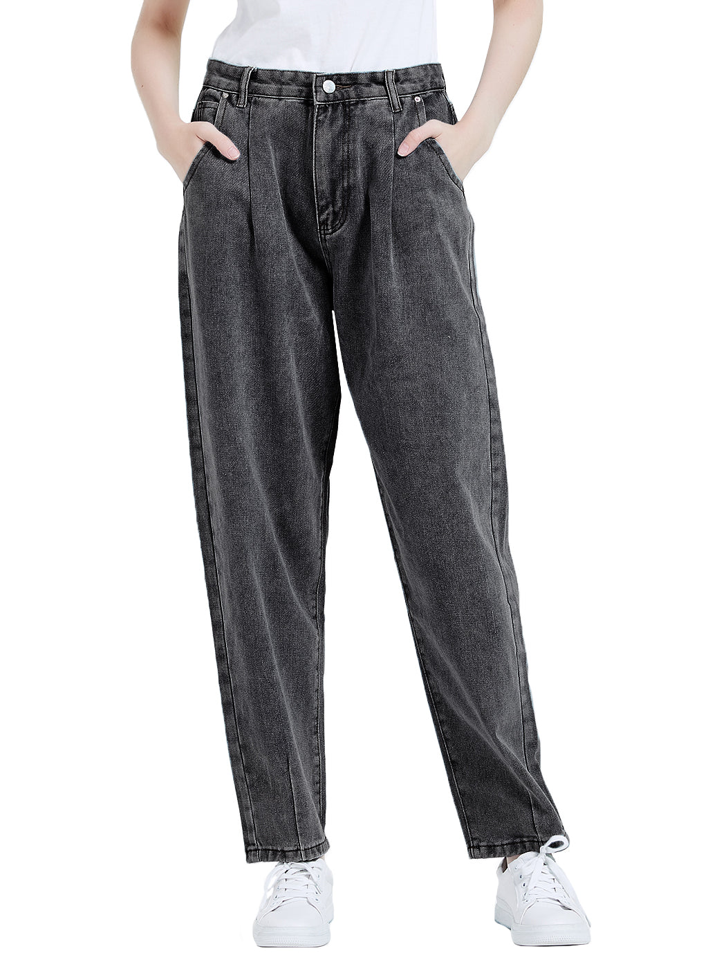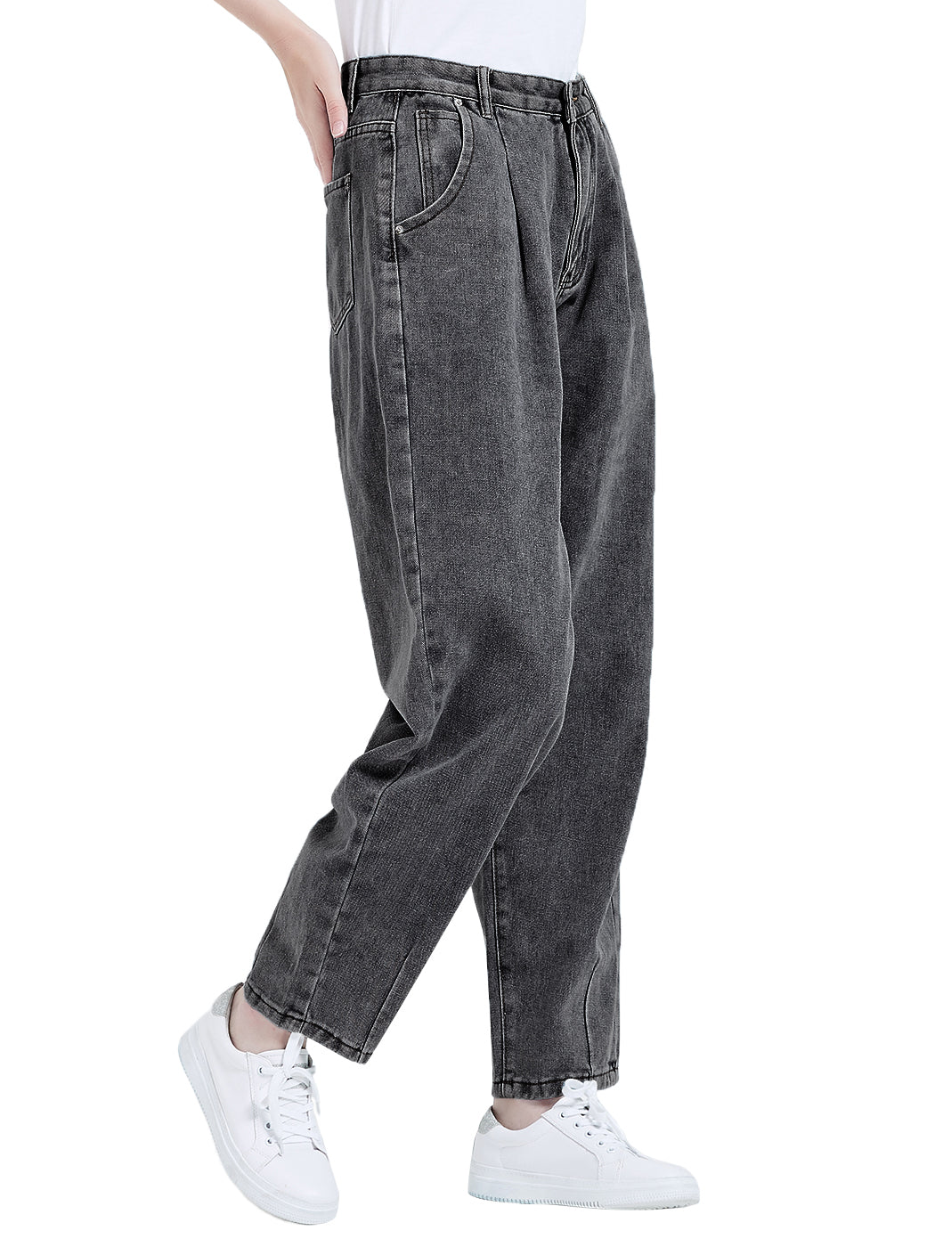 - FEATURES - Mid waisted, Wide Leg, traditional 5 pockets, front zipper & button closure, cropped denim jeans, baggy harem pants, loose fit tapered pants, lantern trousers.