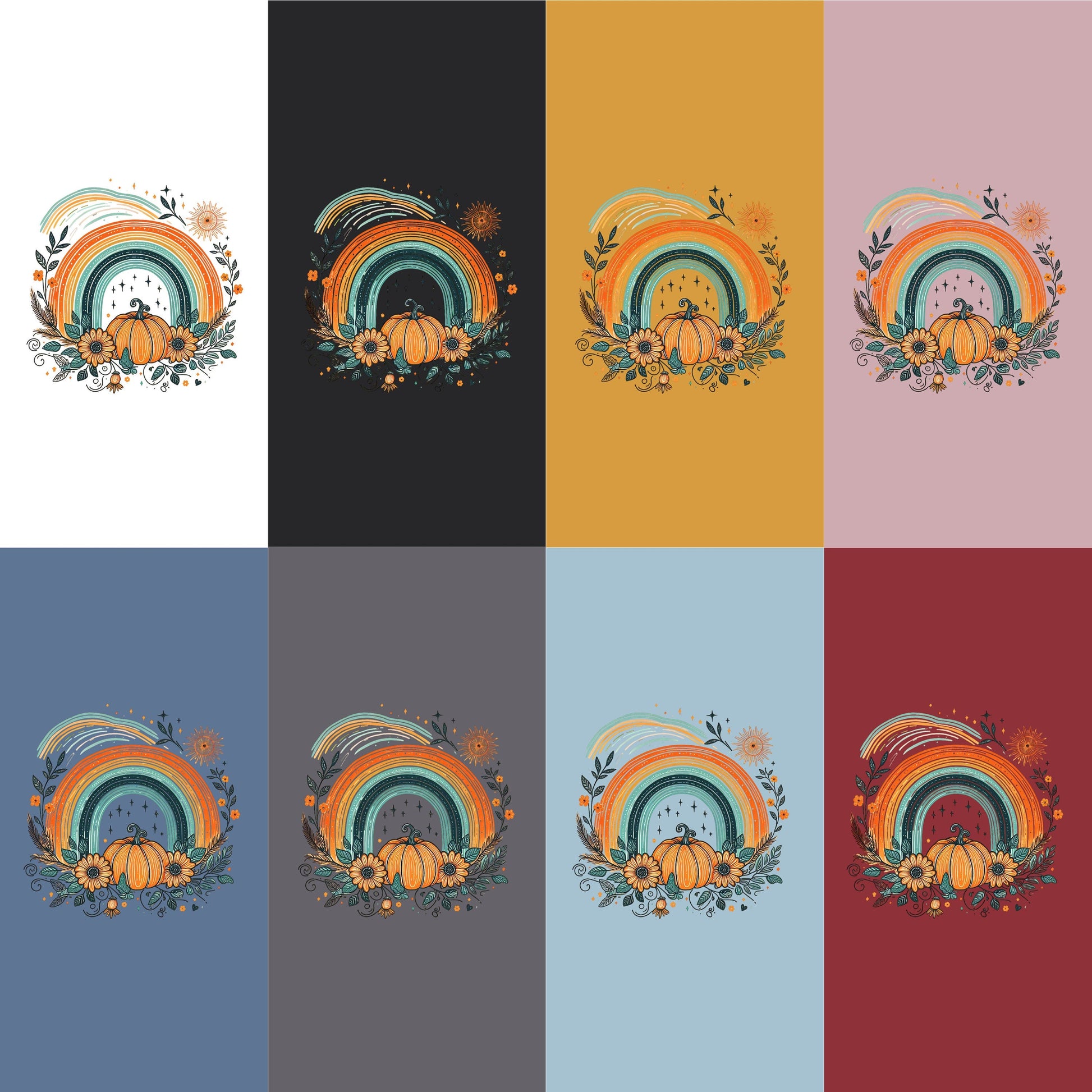 Infuse your wardrobe with the serenity of nature and the beauty of a rustic rainbow. Order our Pumpkin & Sunflowers Rustic Rainbow T-Shirt today and wear a piece of natural splendor!