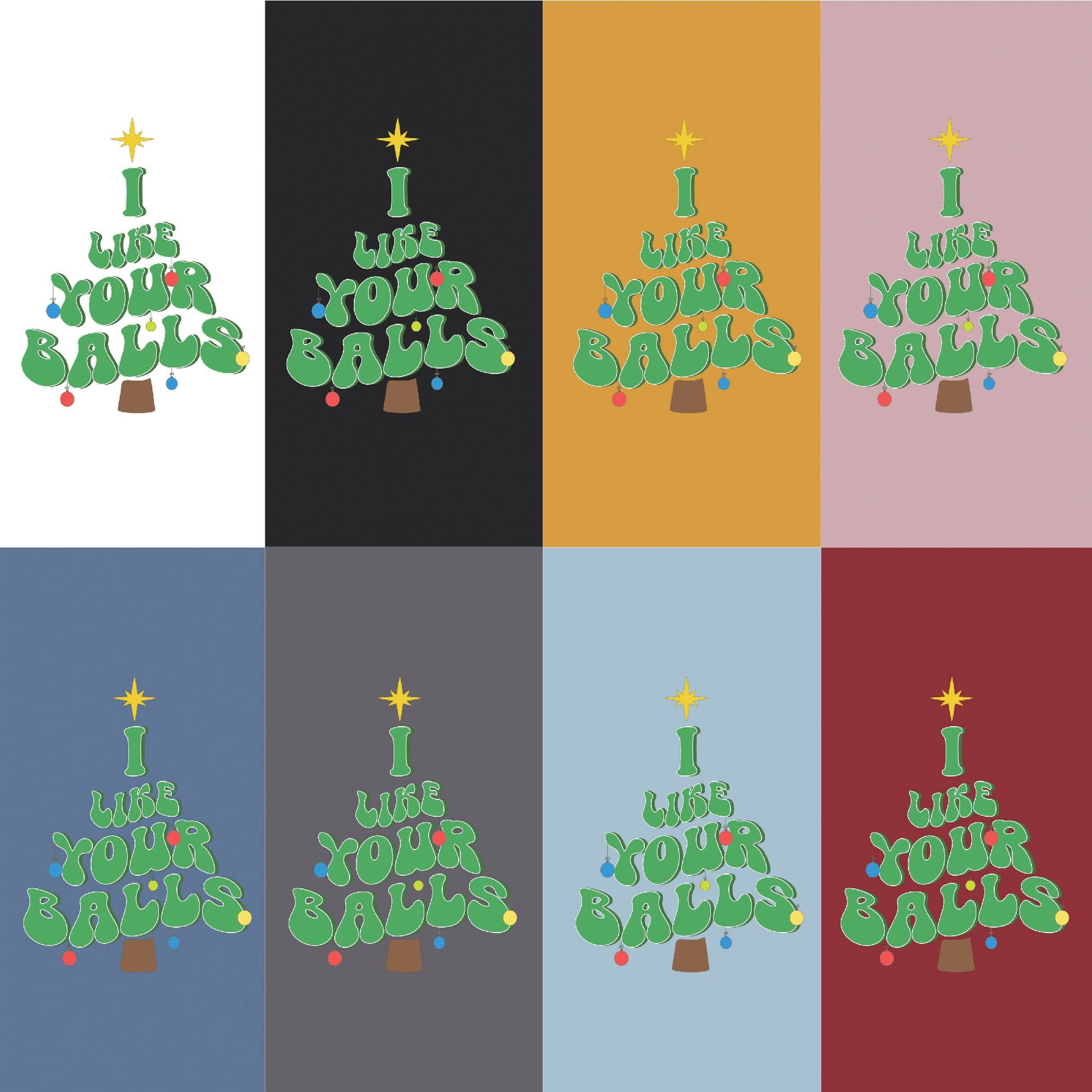 🌟 Embrace the festive spirit with a touch of cheeky humor, as the vibrant Christmas light design adds a playful twist to your wardrobe.Crafted for comfort and style, this tee is a unique celebration of holiday merriment. The lighthearted phrase, "I Like Your Balls," paired with the twinkling lights, creates a merry and whimsical atmosphere. ðŸ¤ðŸ’¡