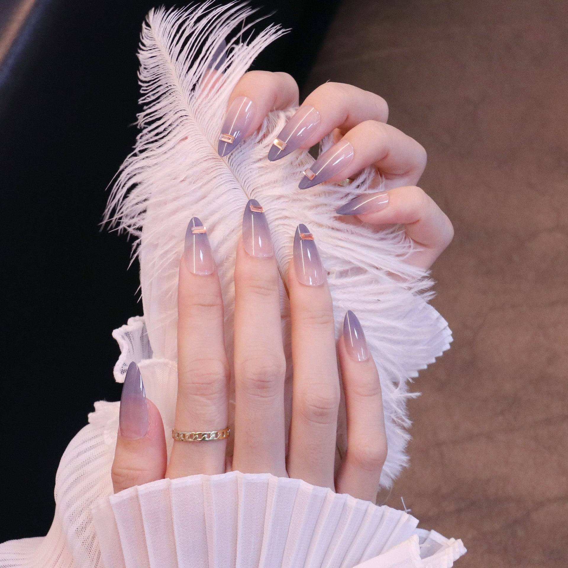 Long Almond Periwinkle Press On Nails with Crystal Charms