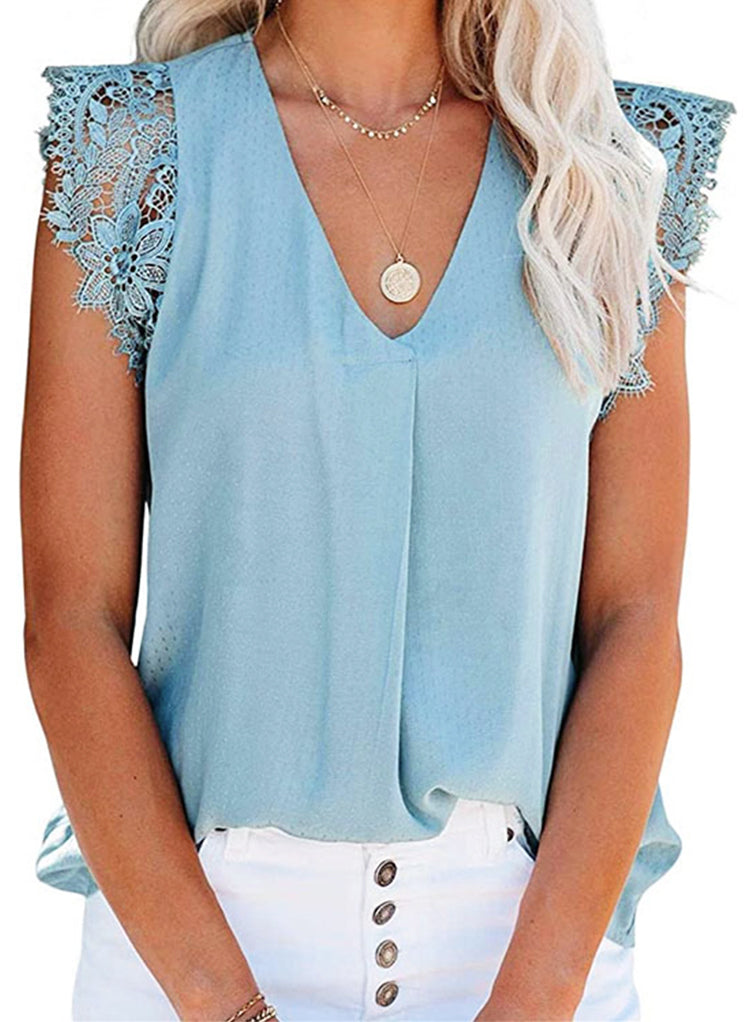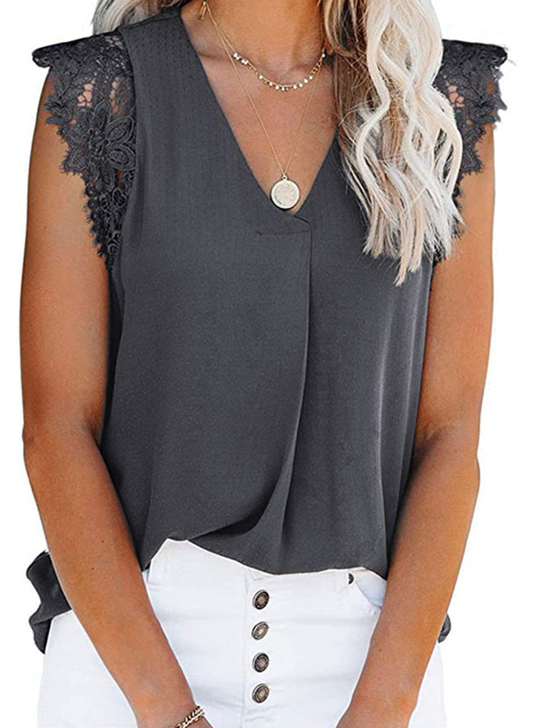 Lace and spring can be such a cute and chic combo! Easily pair this chiffon lace tank with your favorite denim and your favorite heels! Then easily transition to summer with your best denim shorts and leather sandals.