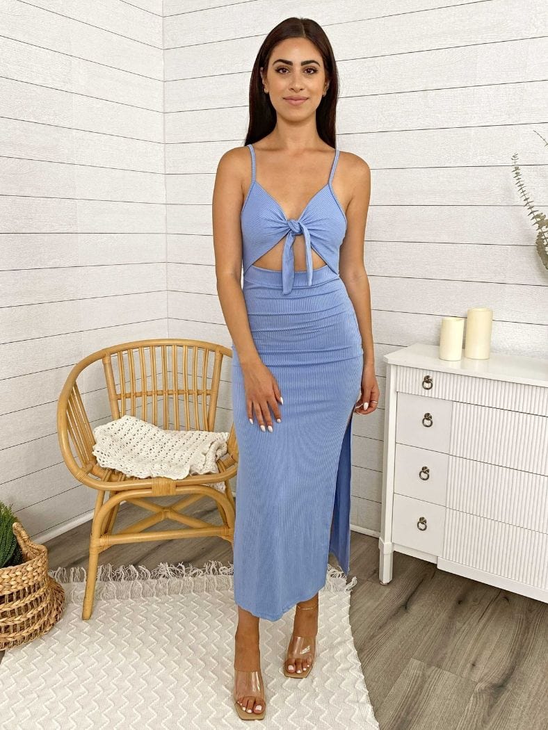 The Bloom's ribbed dress details the perfect piece to wear this season! This stretchy ribbed knit dress features a front knot to give support, a sleeveless bodice, and a bodycon silhouette. Pair this bodice dress with your favorite strappy heels for a fabulous look!