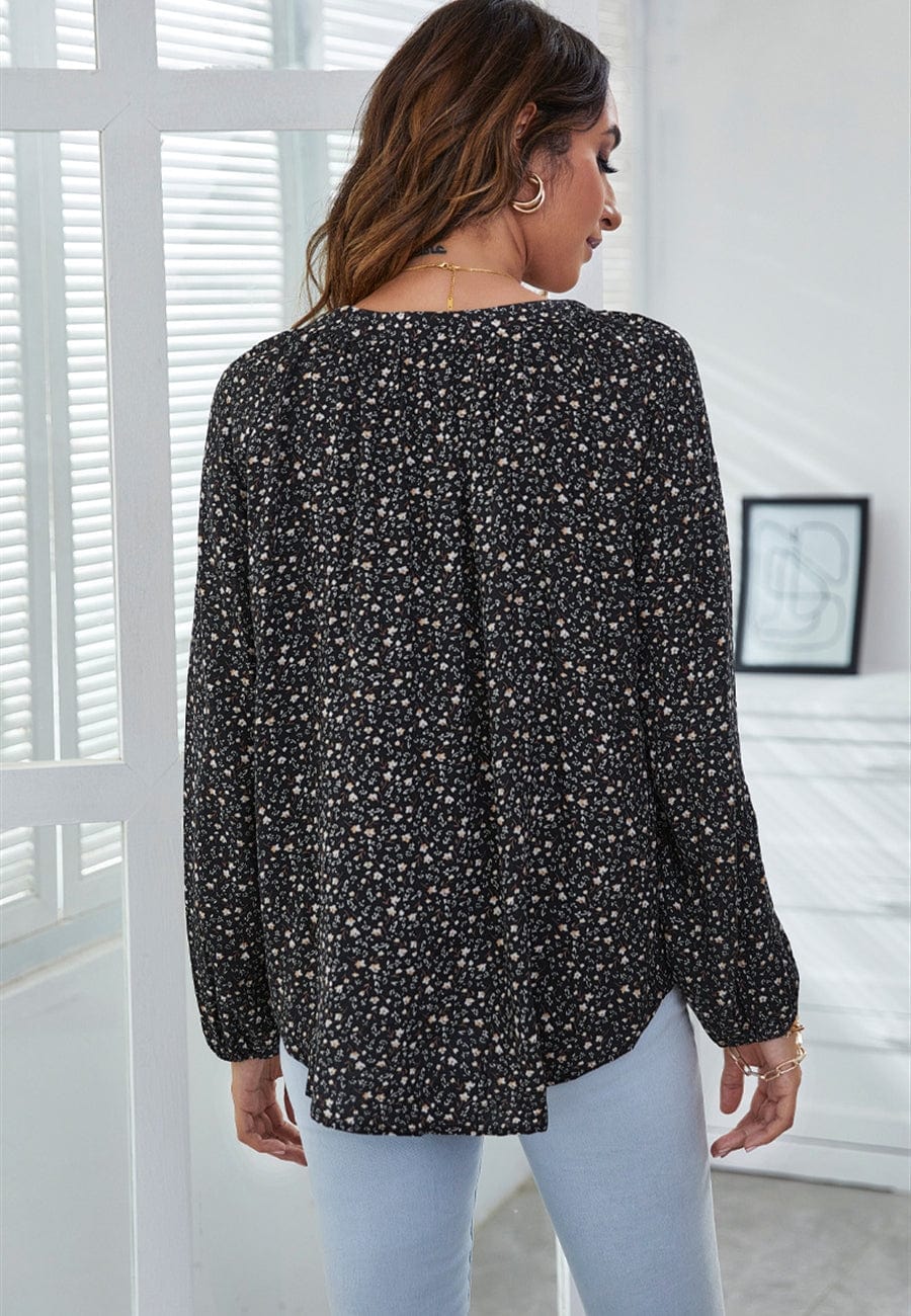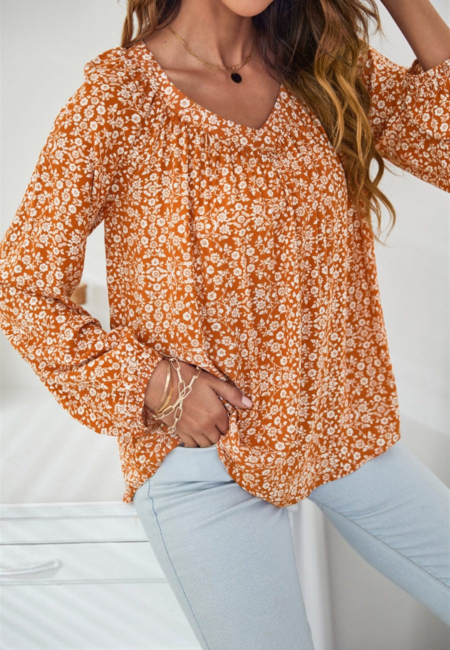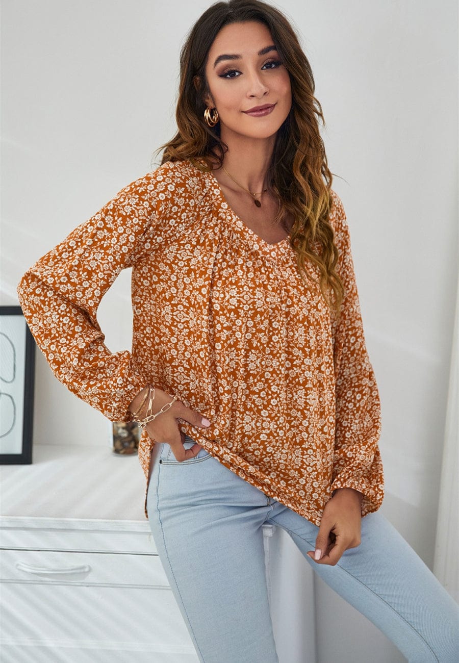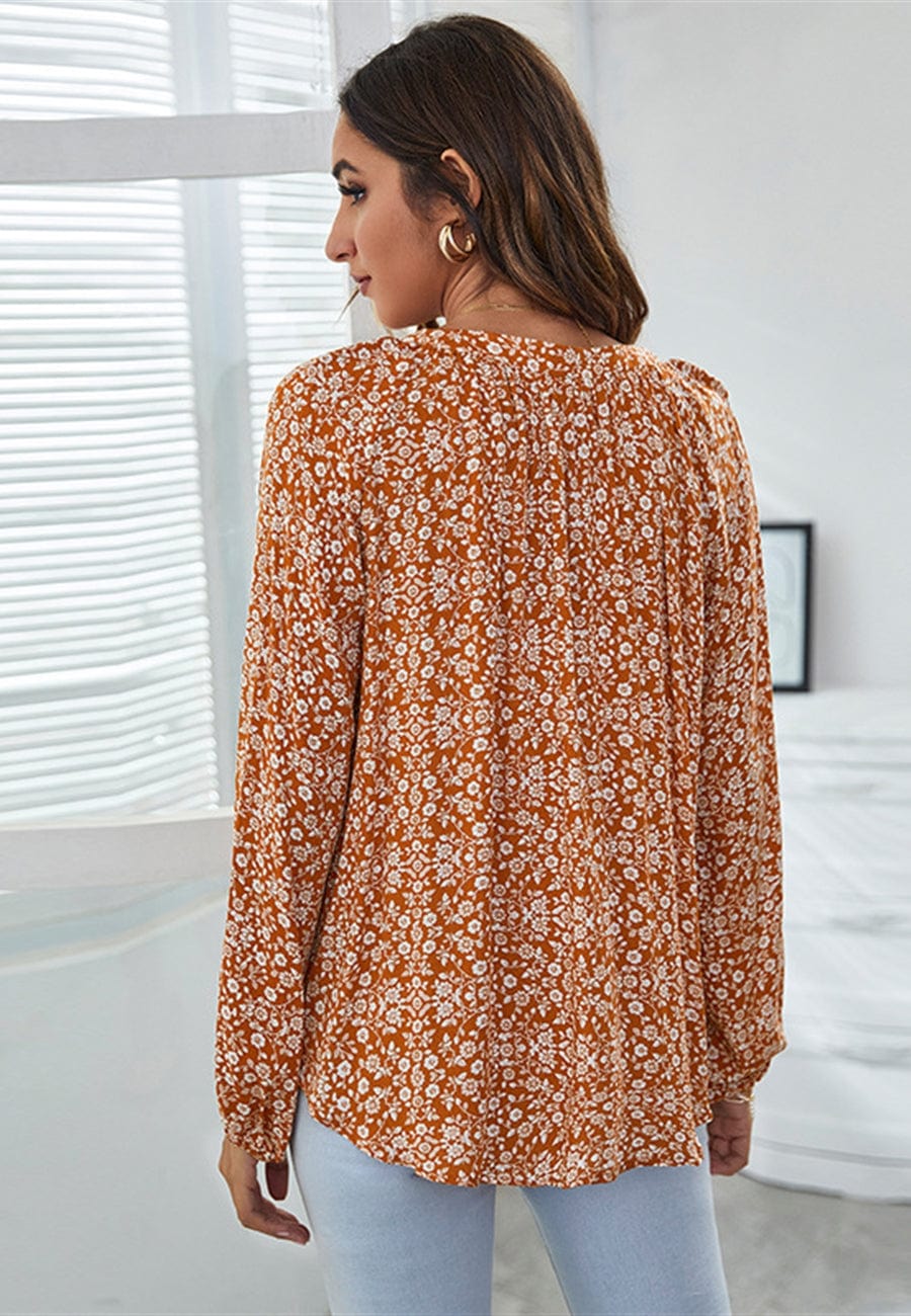 The Anna-Kaci blouse is detailed with a classic v neck line. Features a floral print, long sleeves, and loose fit. Pair it with jeans and boots for a nice spring look.
