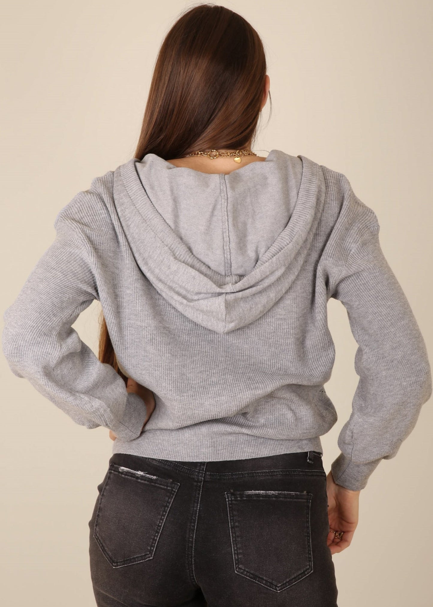Henley Ribbed Knit Hoodie