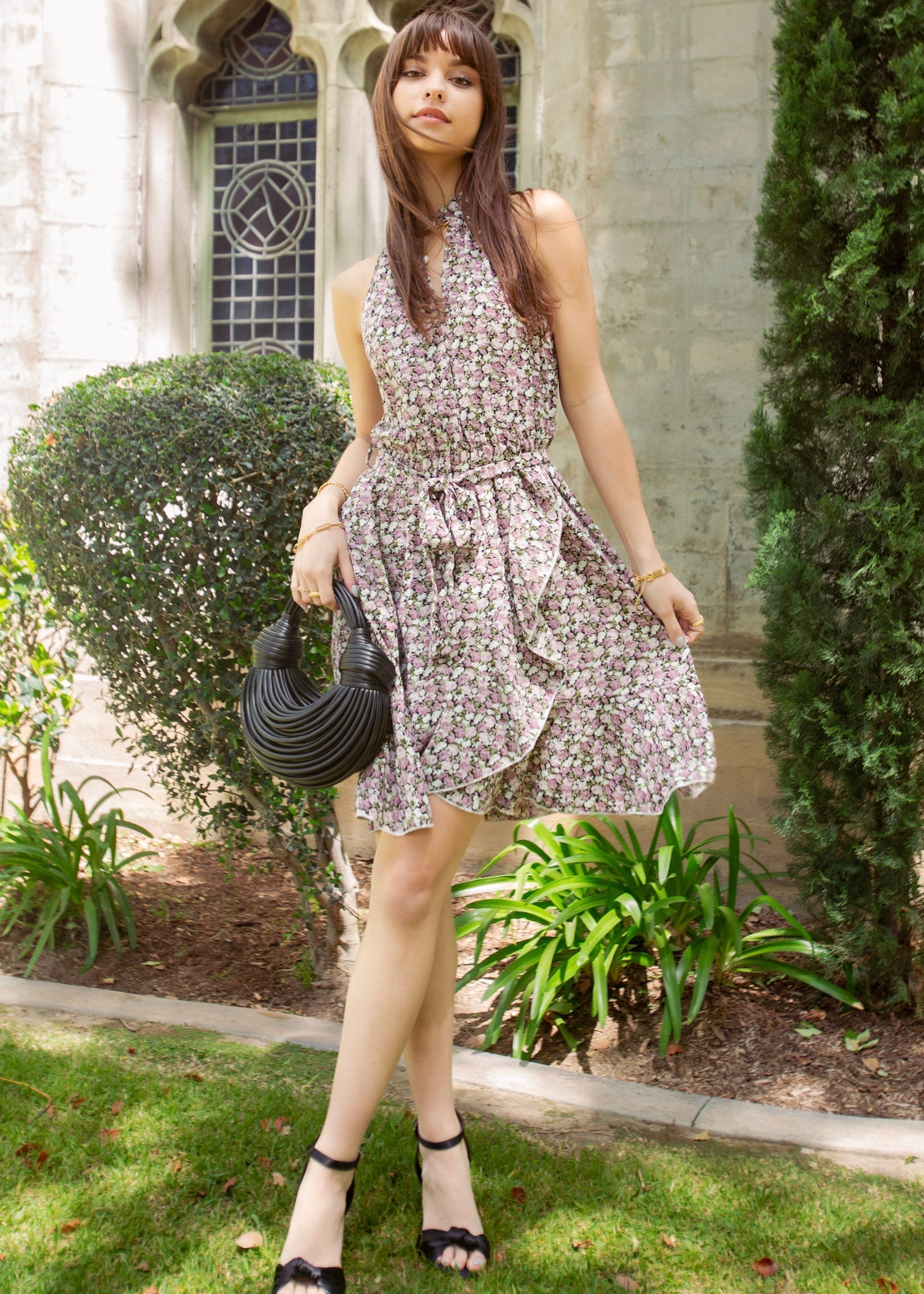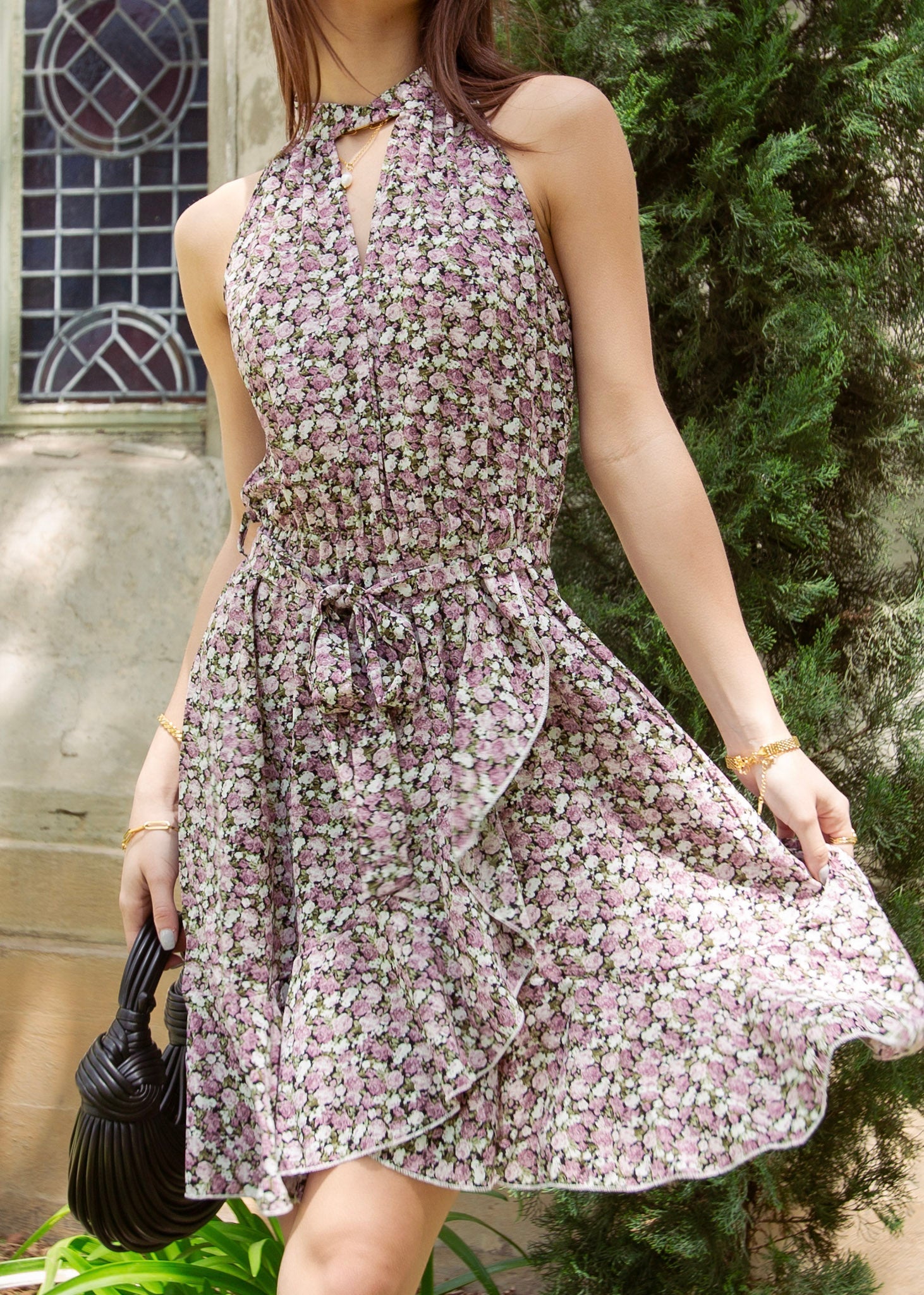 Floral Cutout Front Halter Dress