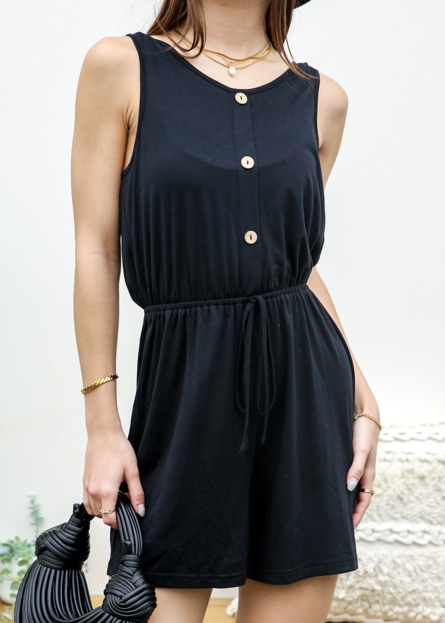 Tie-Shoulder Button Front Romper