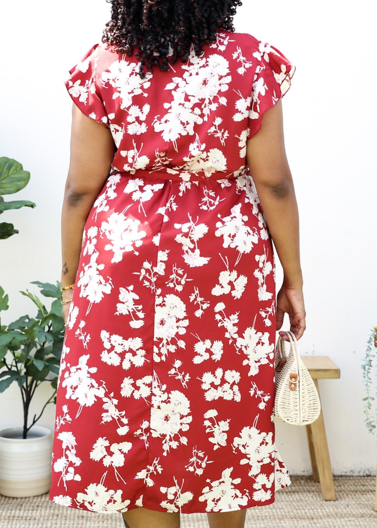 Embrace the tropical vibes with the Anna-Kaci plus size maxi dress. This wrap dress features a captivating tropical floral print that's perfect for warm-weather occasions. The V-neckline and shoulder sleeves create an elegant and flattering silhouette. The ruffle sleeves add a playful and feminine touch. With its tied belt waist and flowy skirt, this dress ensures both comfort and style. Pair it with wedges and a floppy hat for a chic summer look.