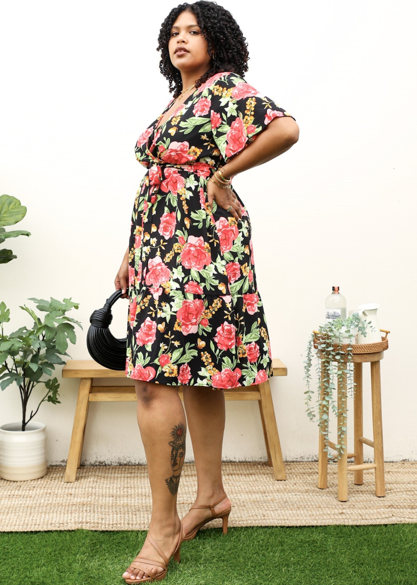 Embrace the vibrant allure of the tropics with the Anna-Kaci plus size midi dress. Adorned with a tropical floral print, this dress captures the essence of paradise. The V-neckline and short sleeves provide a flattering silhouette, while the tied belted waist adds a touch of elegance. With its flowy skirt and comfortable fit, this dress is perfect for summer parties or beach getaways. Complete the look with strappy sandals and statement earrings.