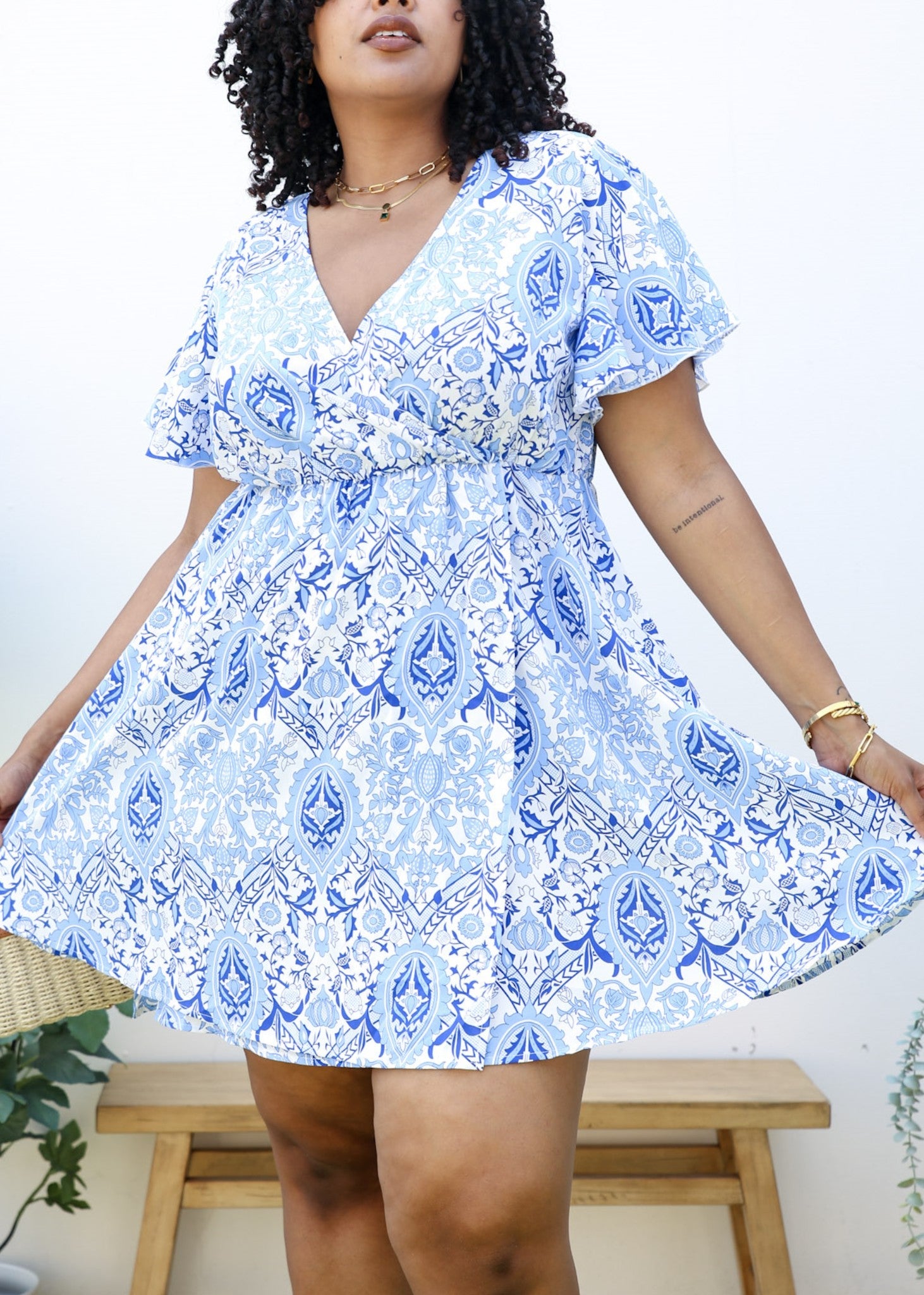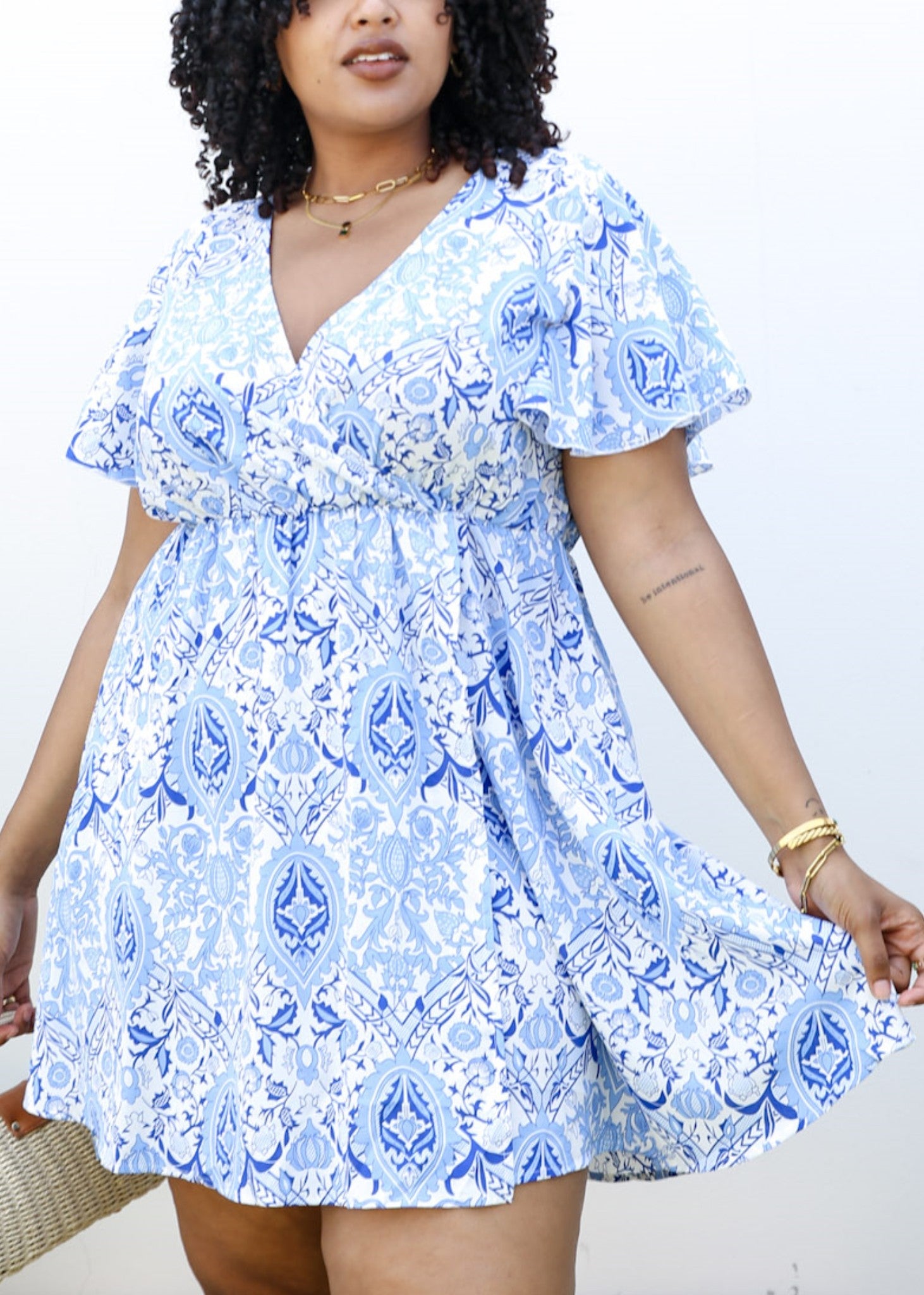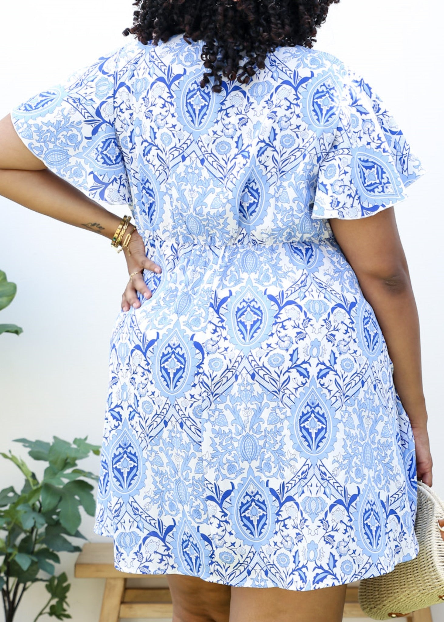 Plus Size Paisley Boho Print Ruffle Sleeve Swing Dress