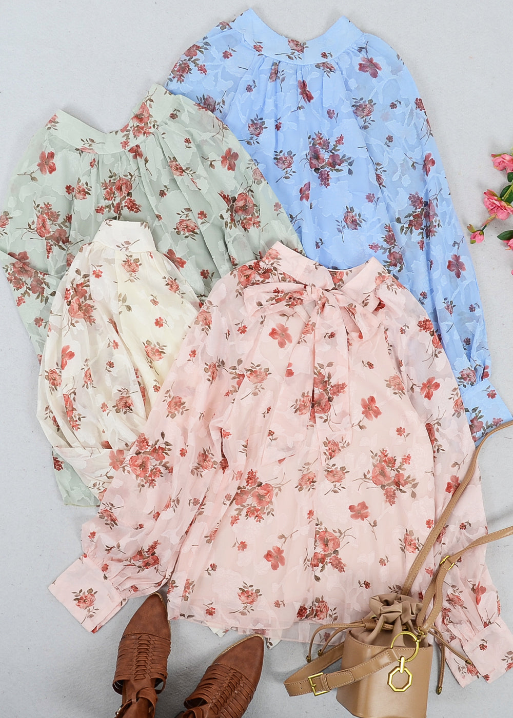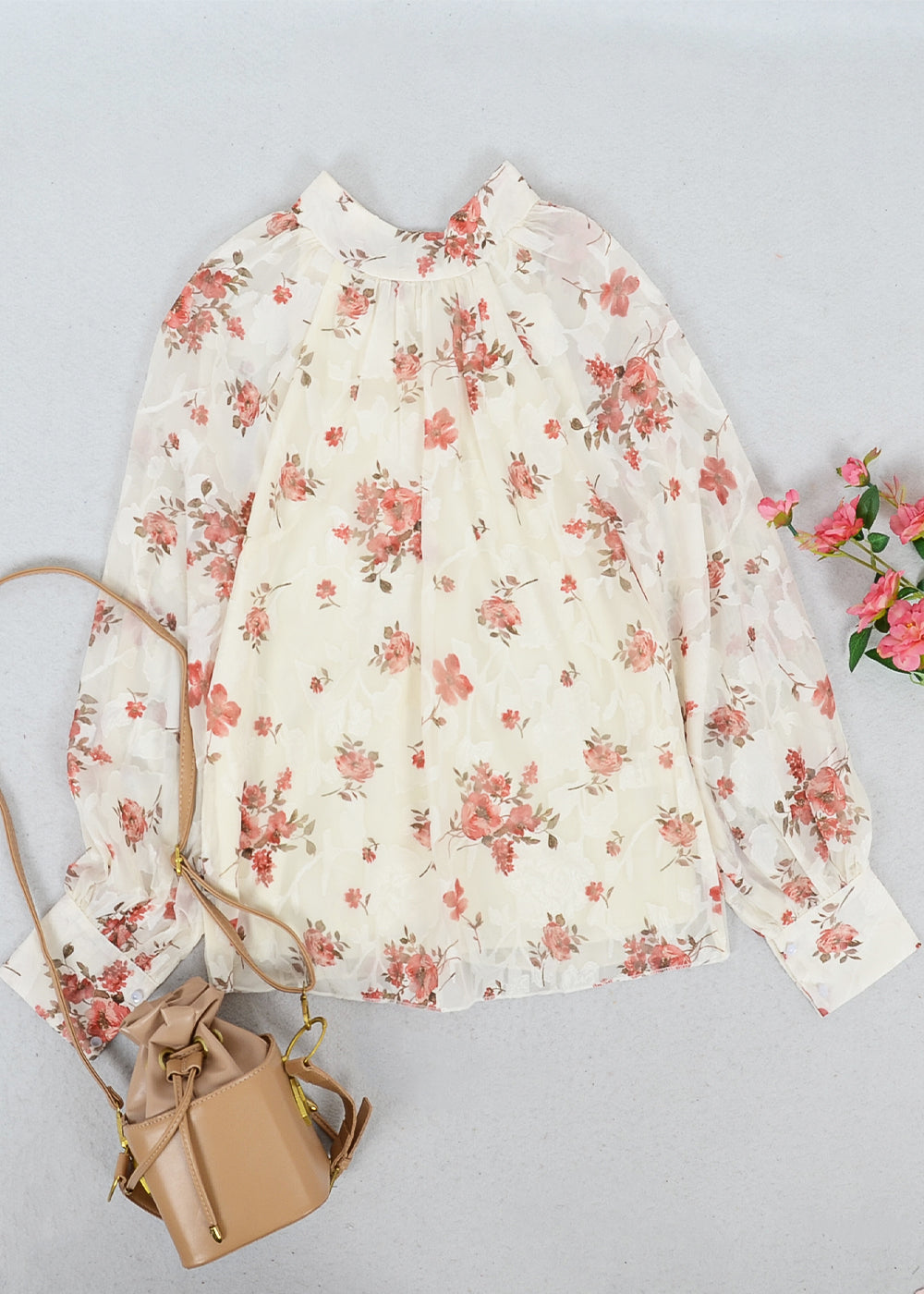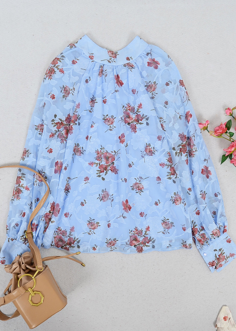 Multi-Floral Pattern Bishop Sleeve Blouse