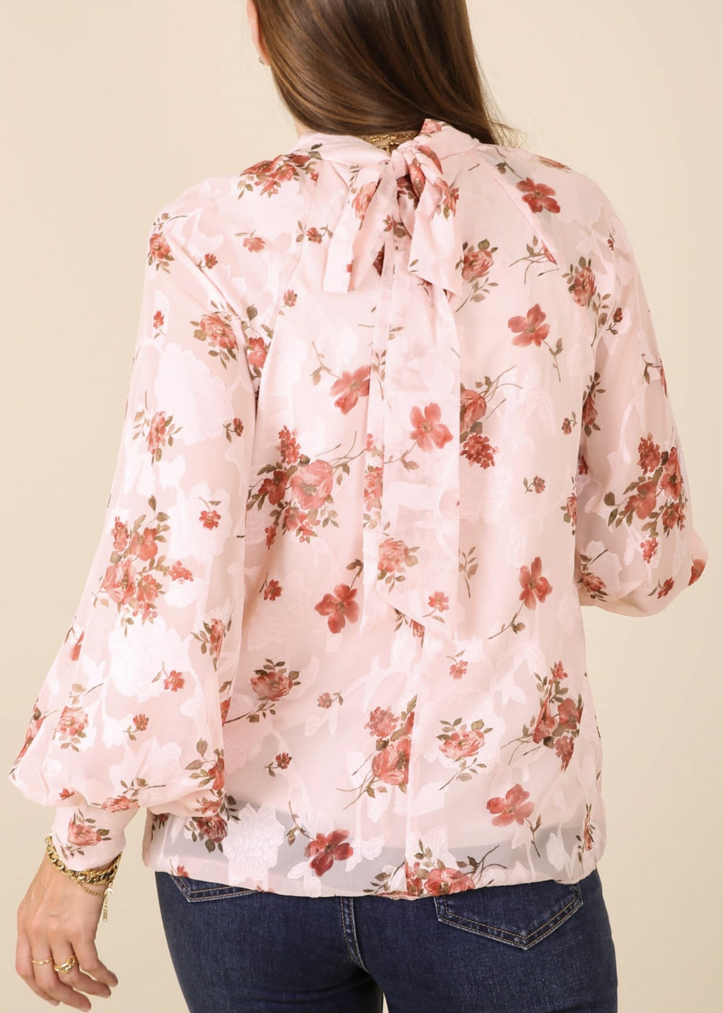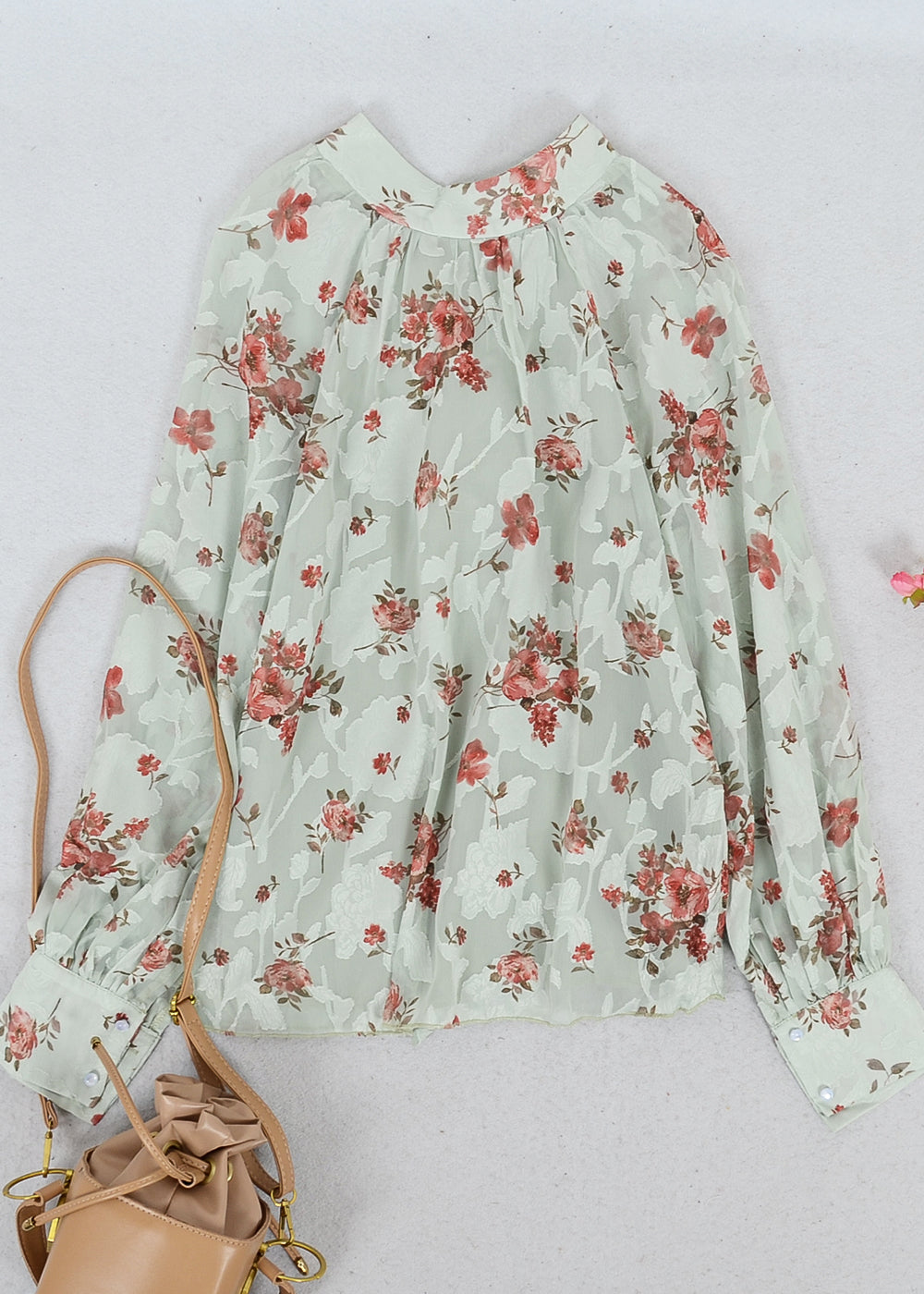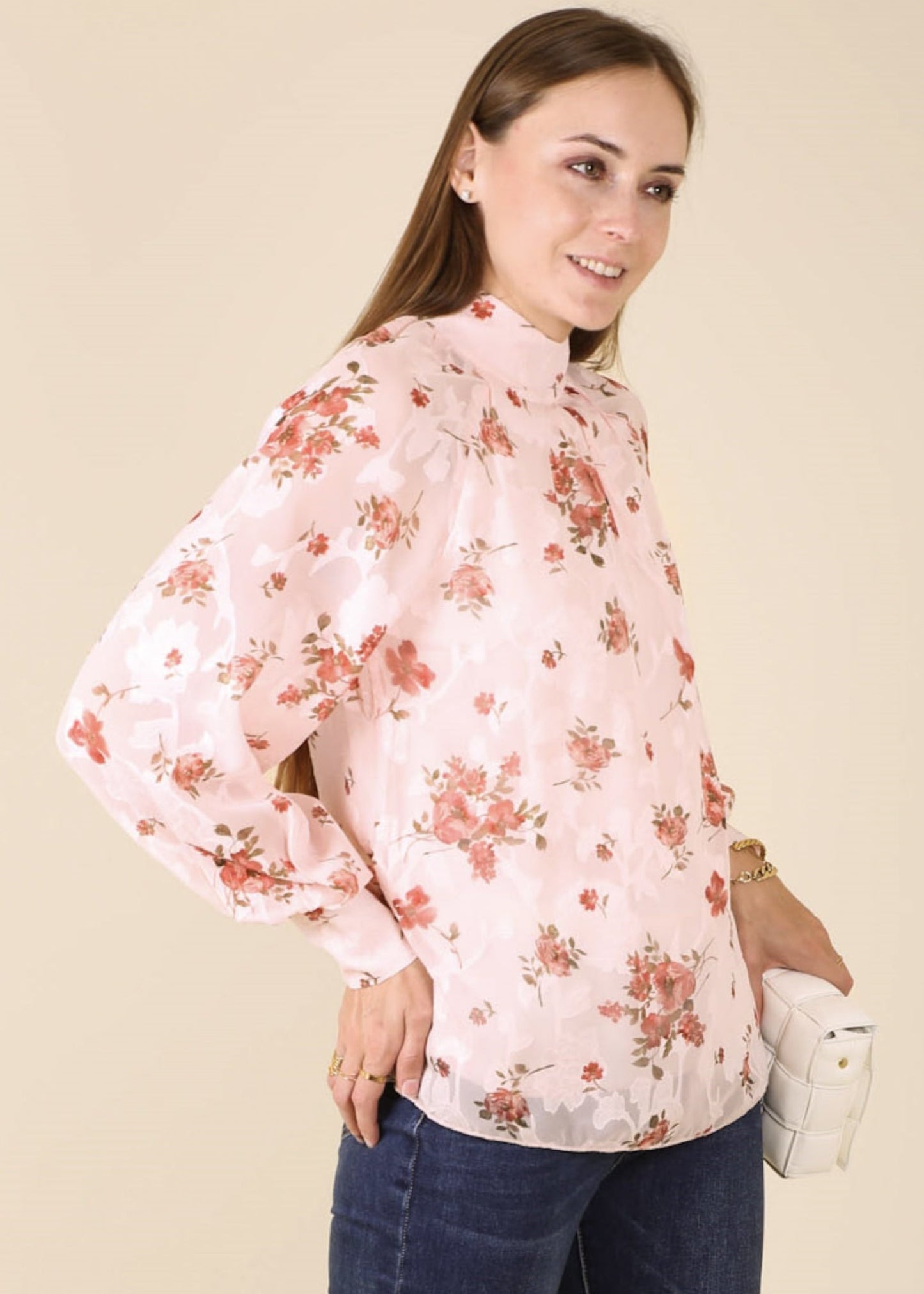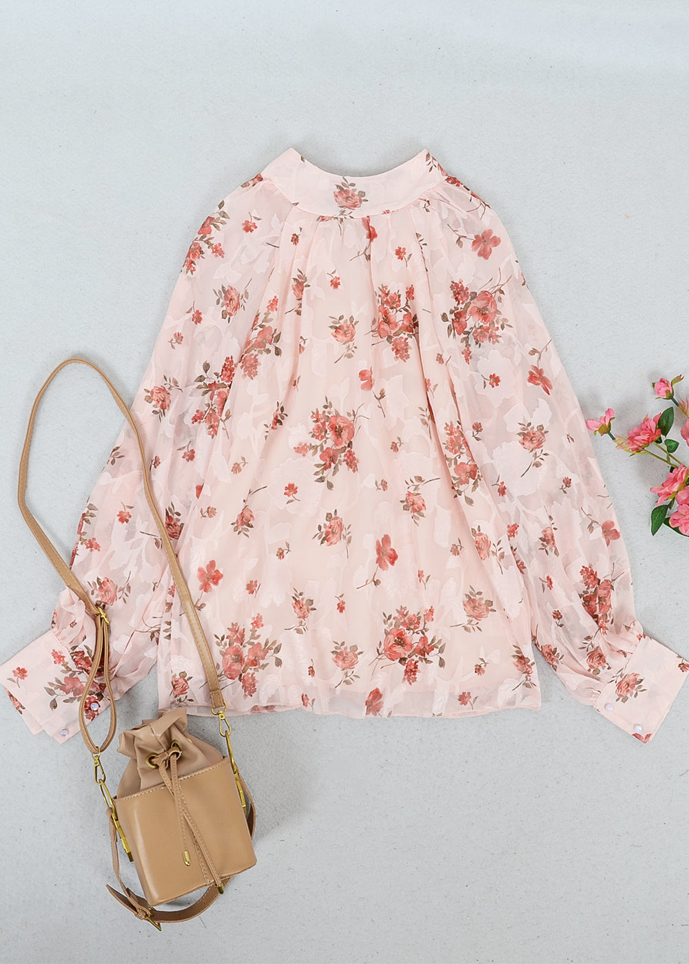 Multi-Floral Pattern Bishop Sleeve Blouse