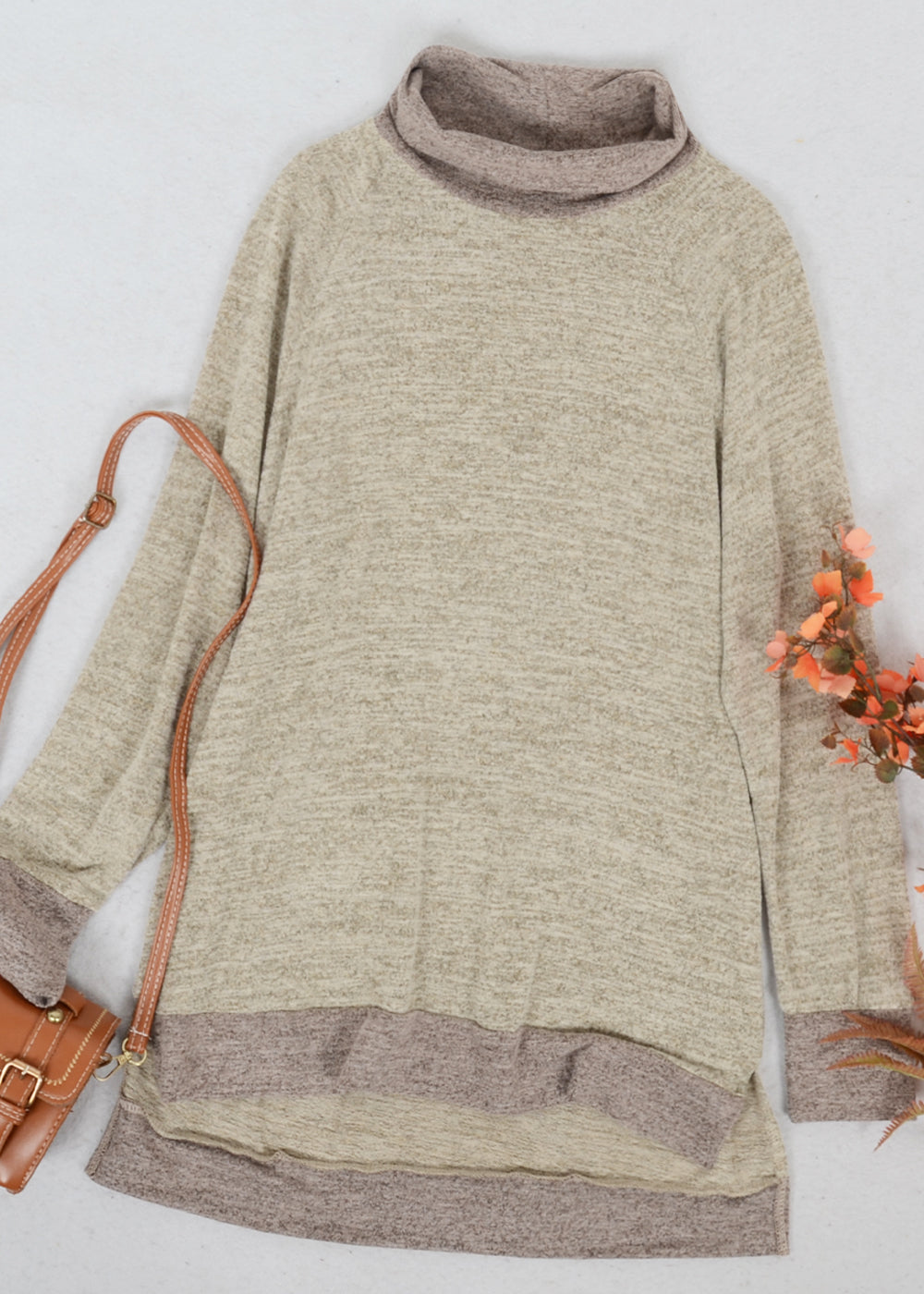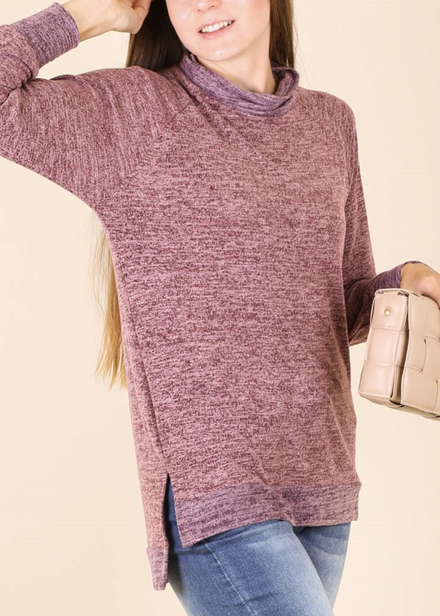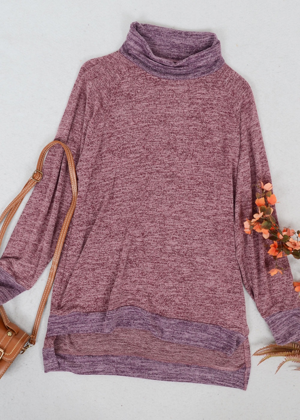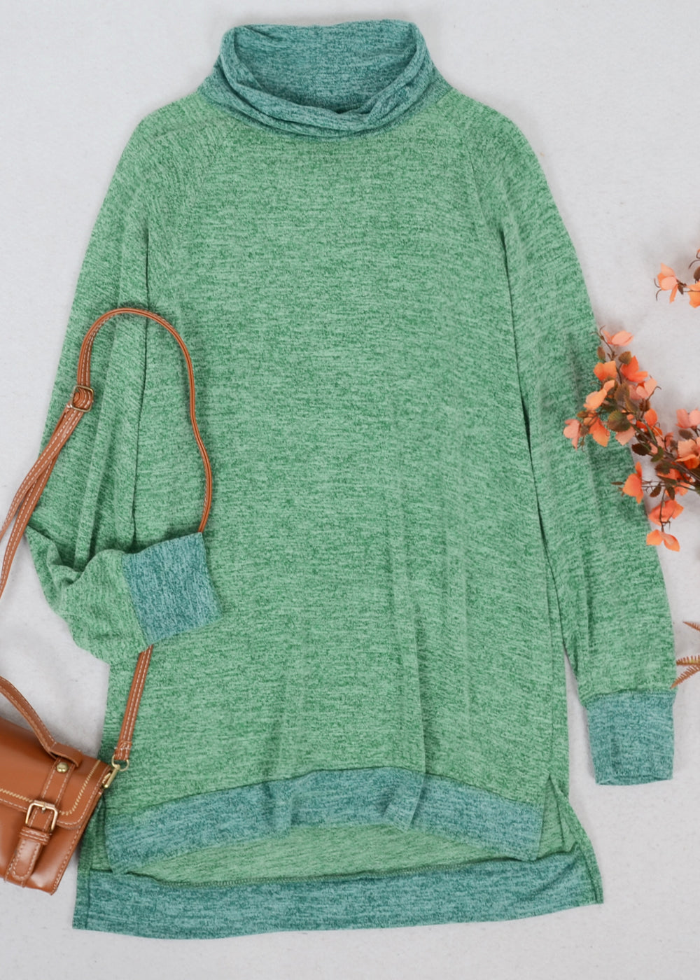 The Anna-Kaci sweater is detailed with a cozy mock neck line. Features a two tone design, raglan long sleeves, side slit, and oversized fit. Pair it with leggings and boots for a fabulous look.