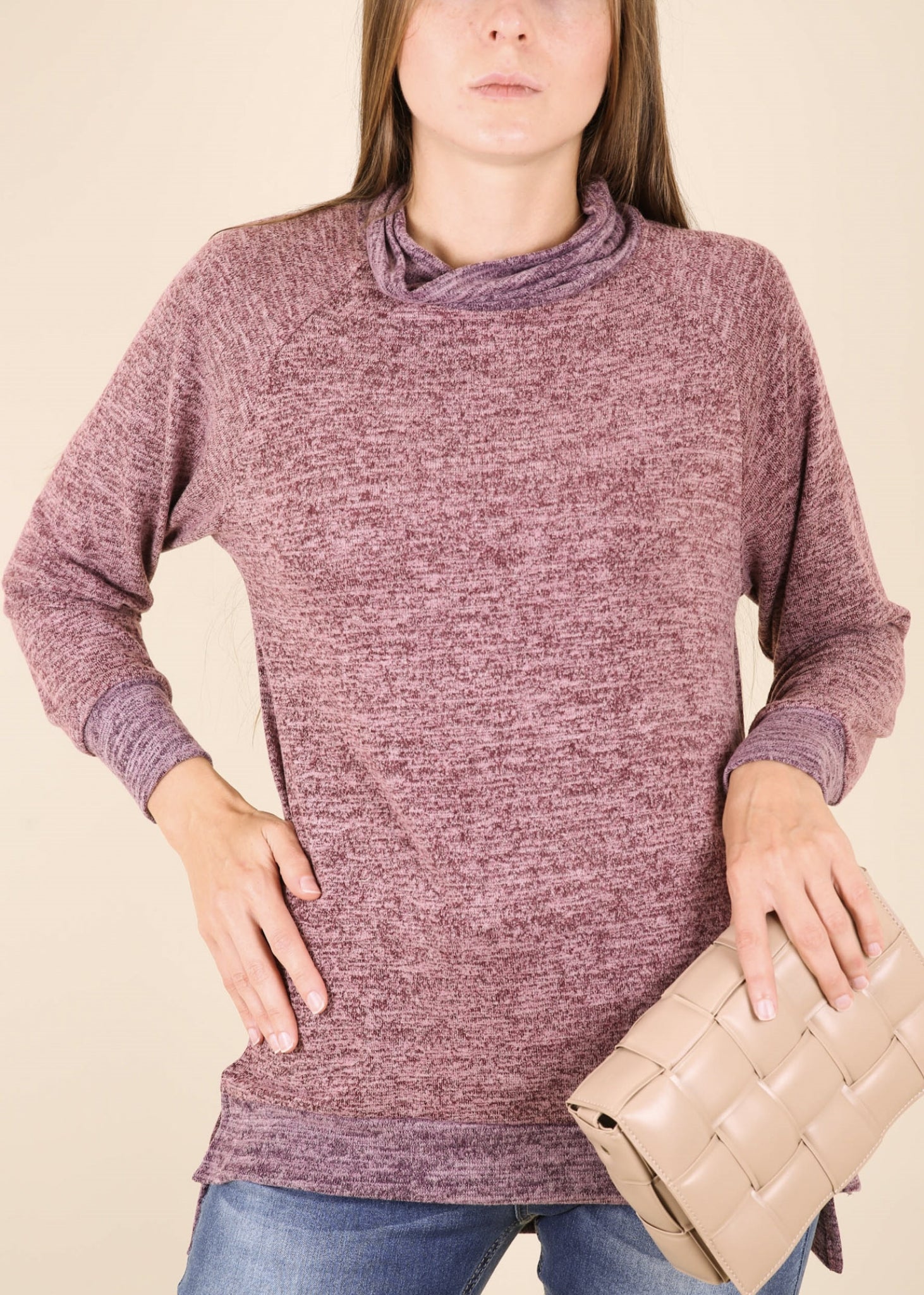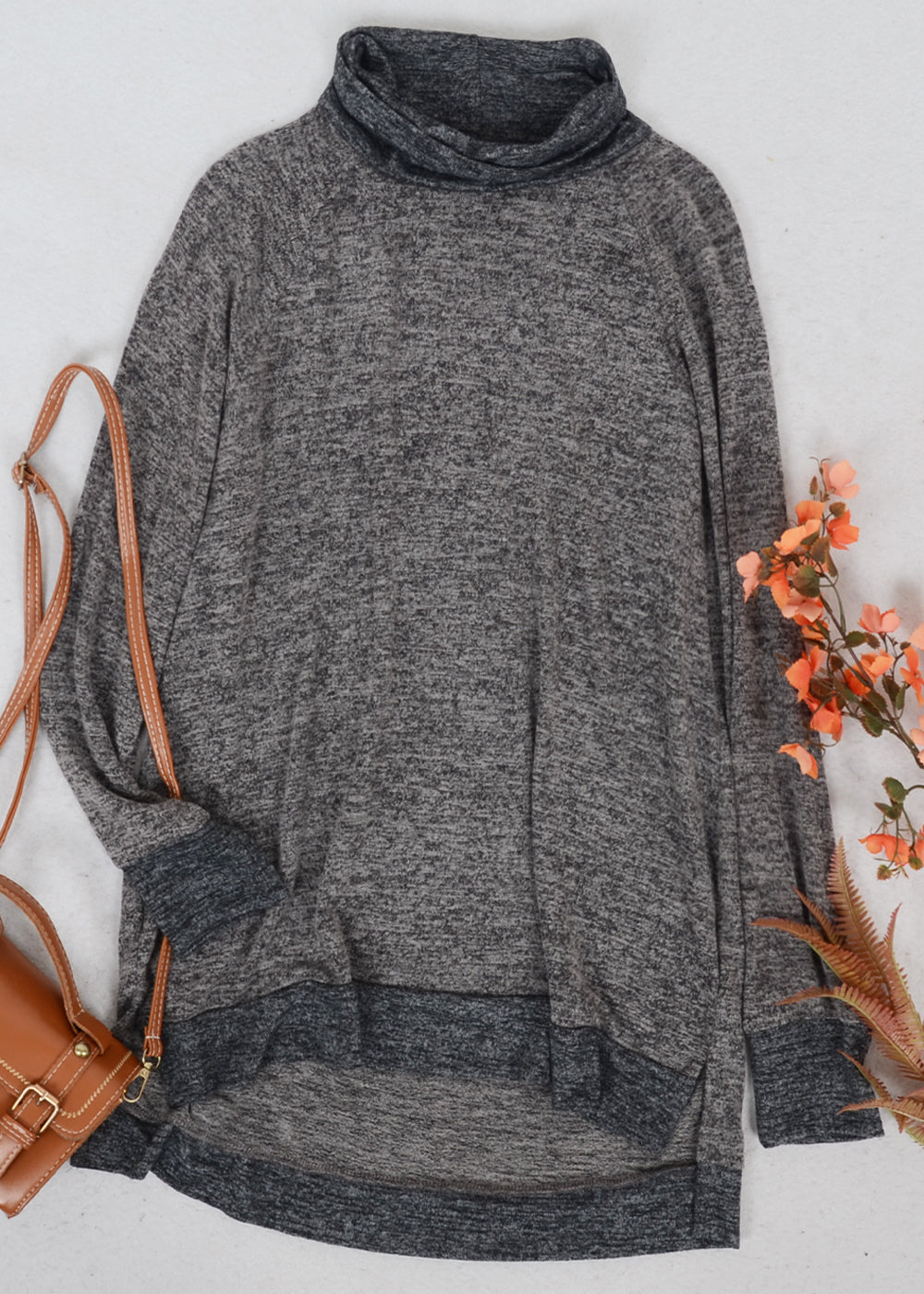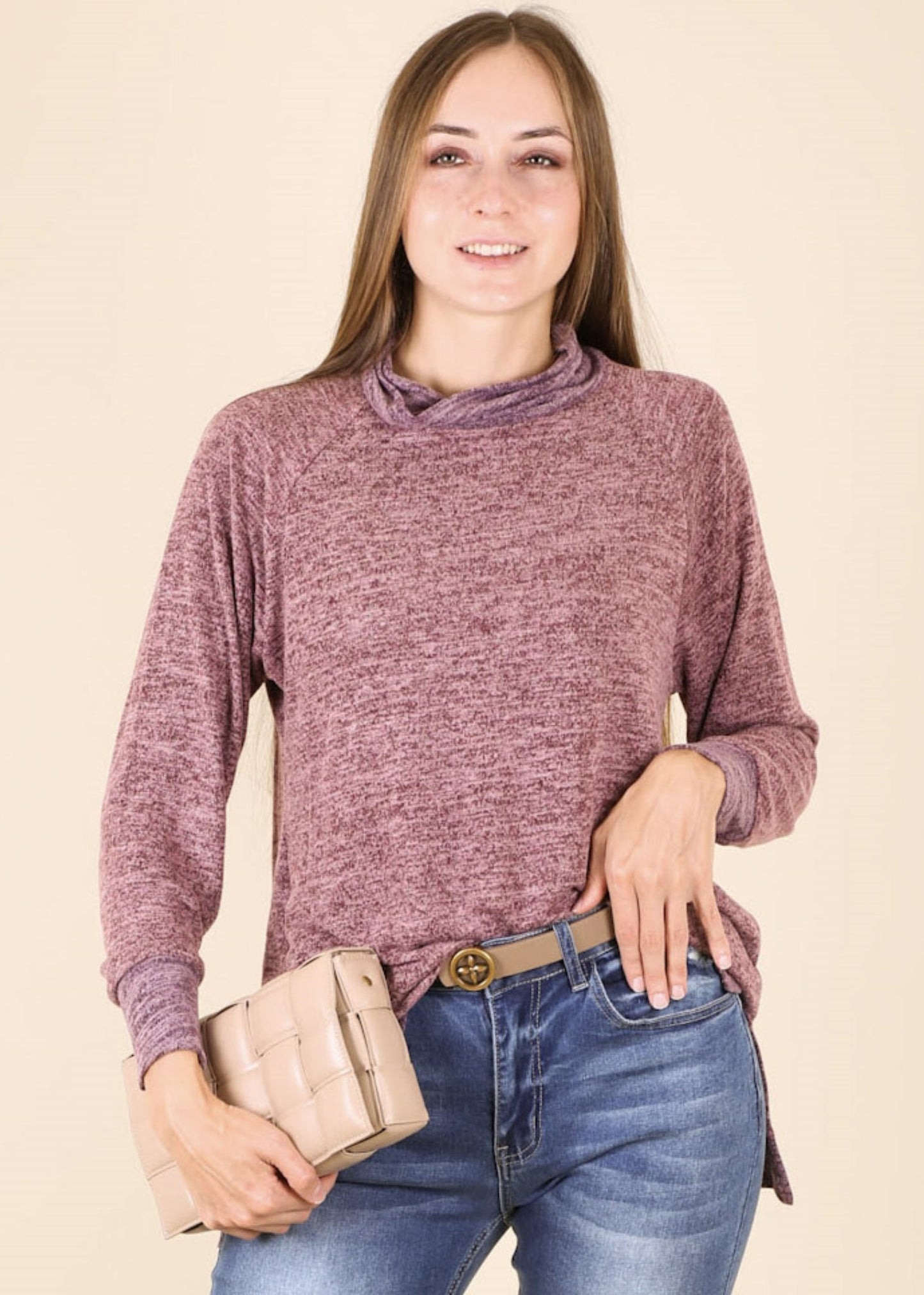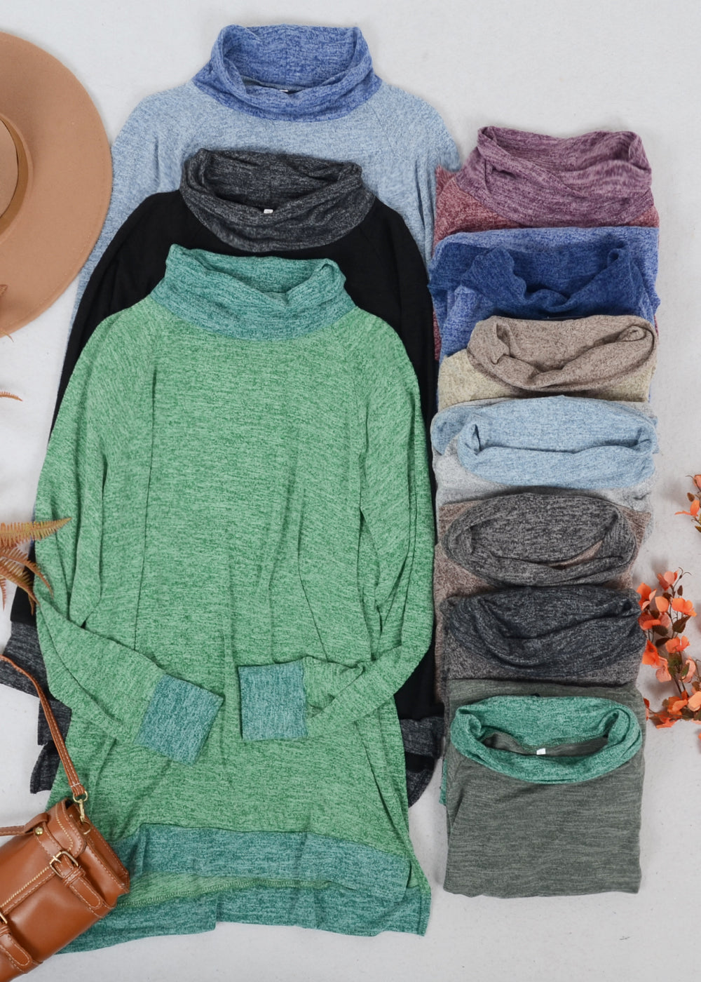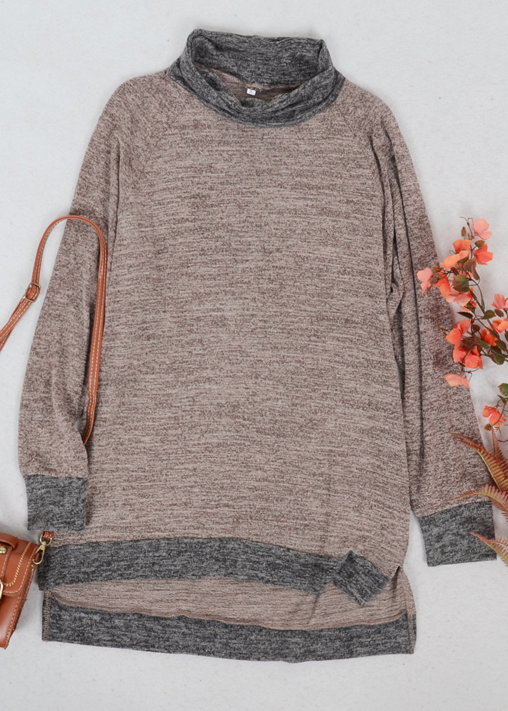 The Anna-Kaci sweater is detailed with a cozy mock neck line. Features a two tone design, raglan long sleeves, side slit, and oversized fit. Pair it with leggings and boots for a fabulous look.