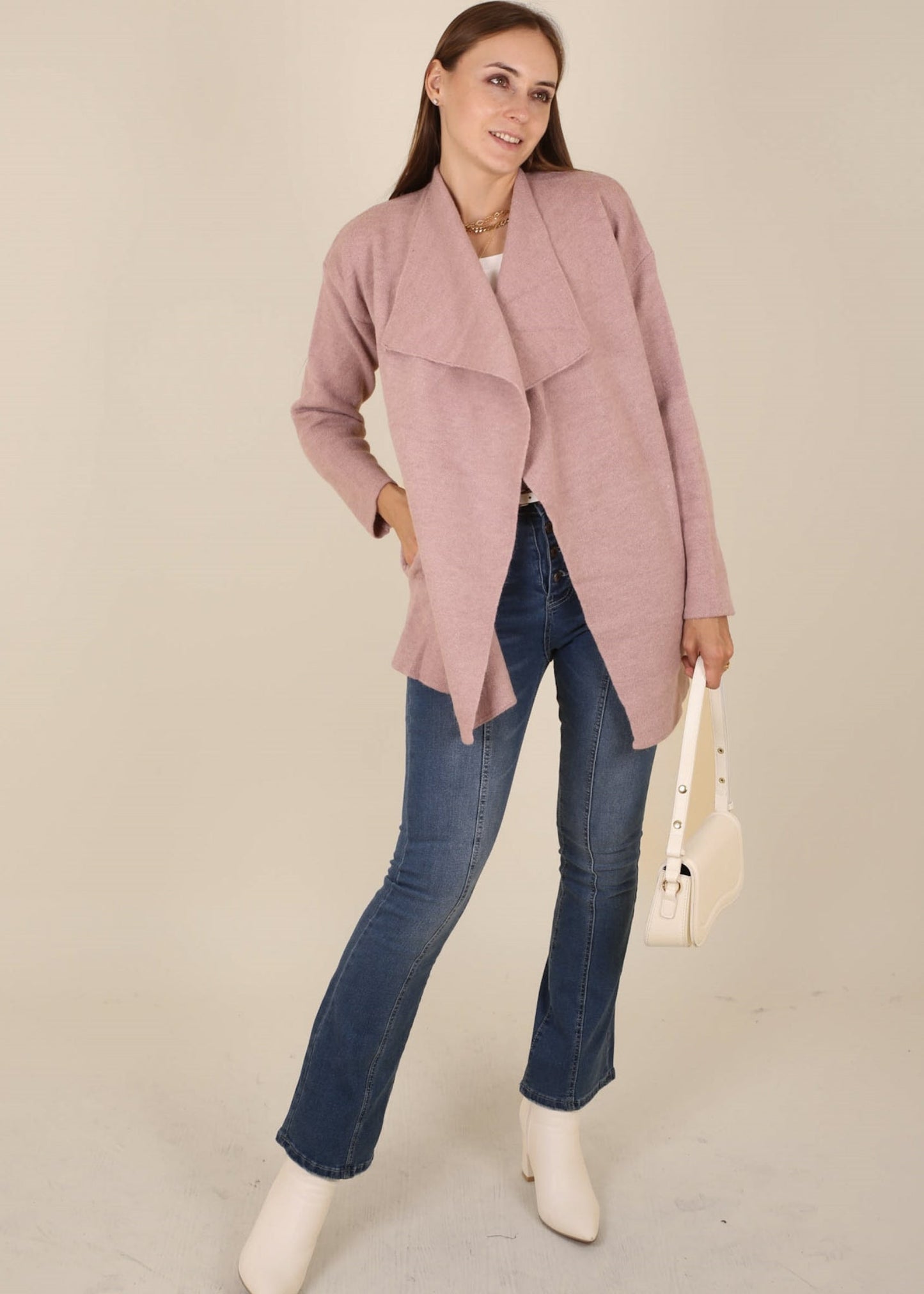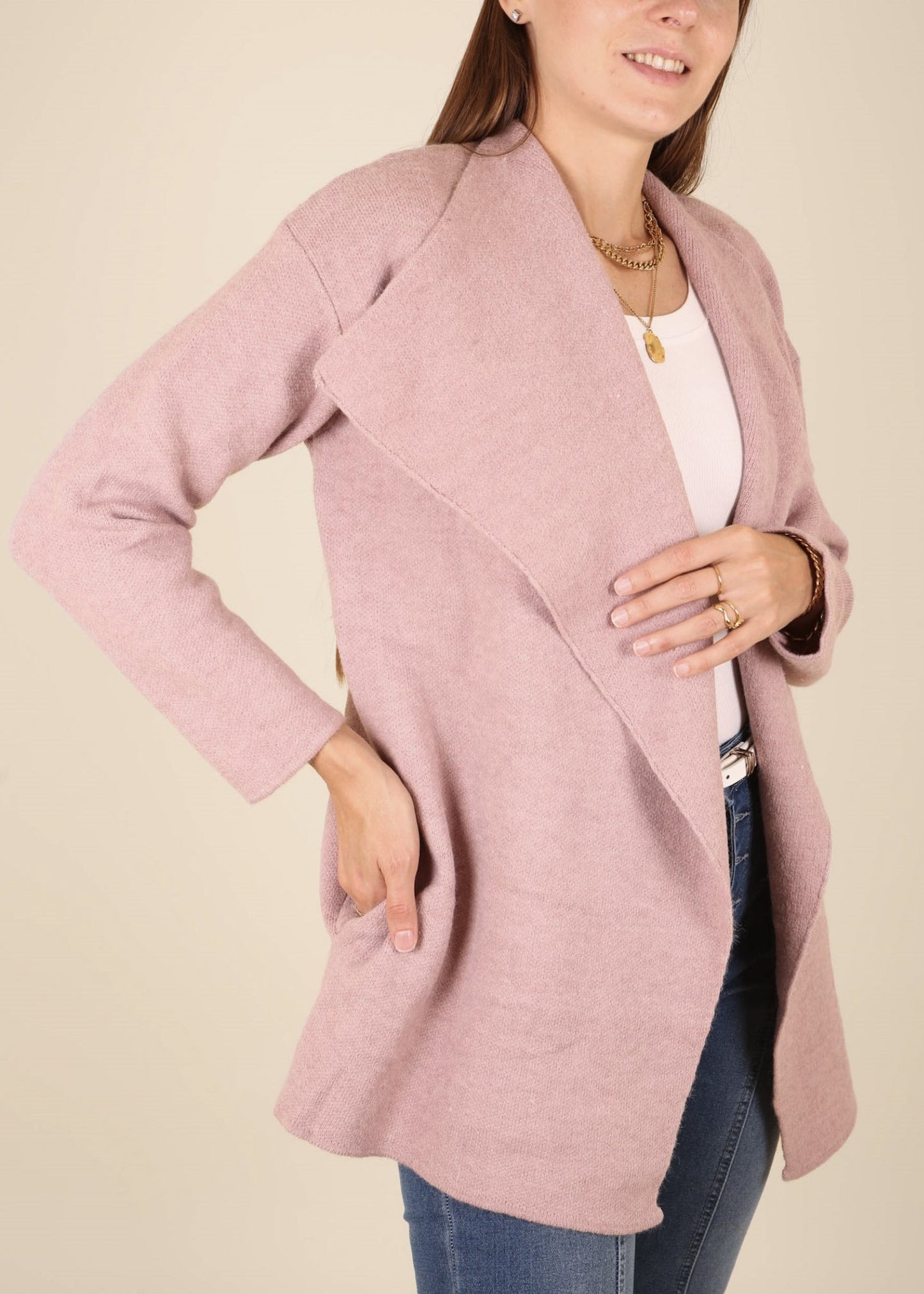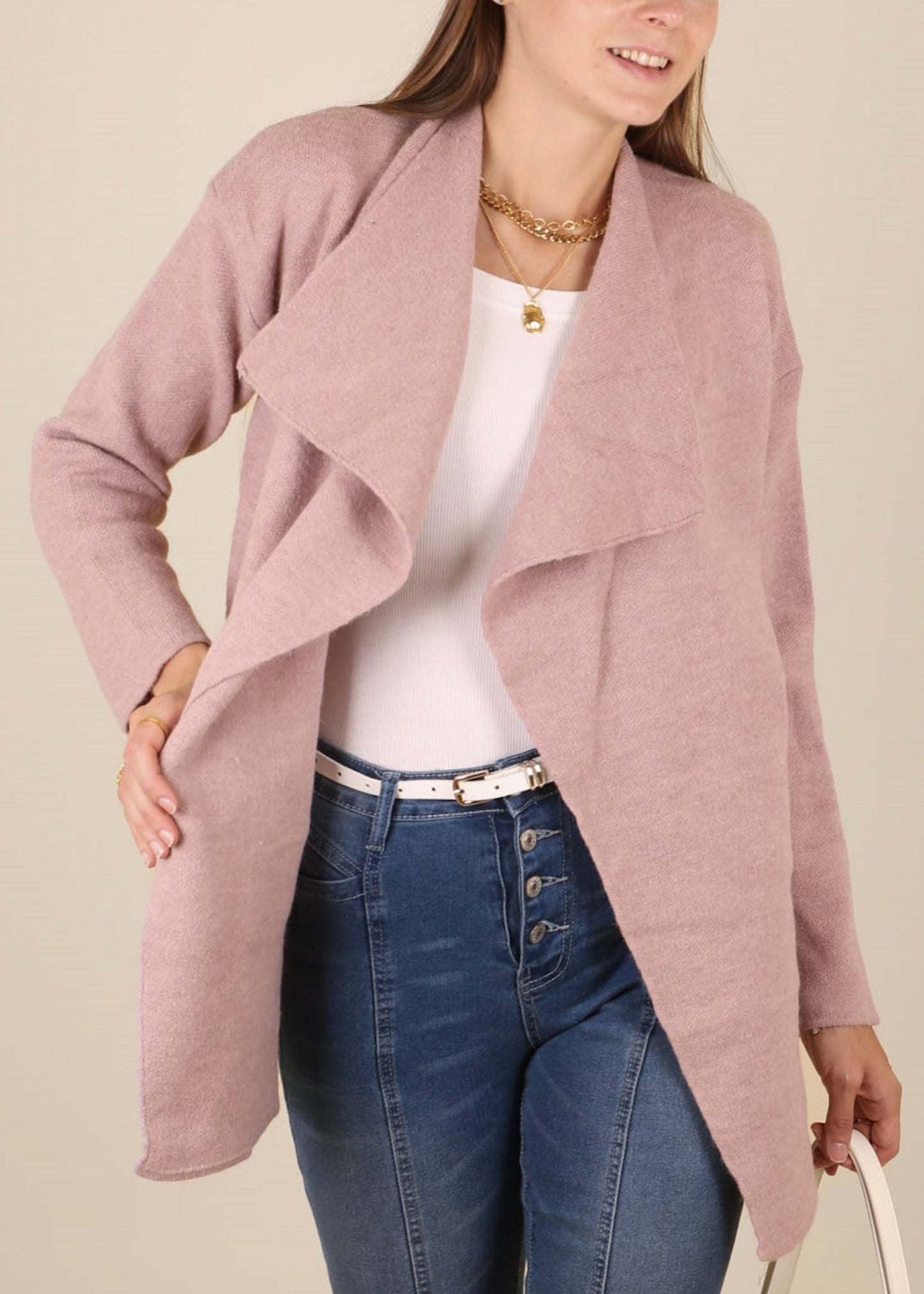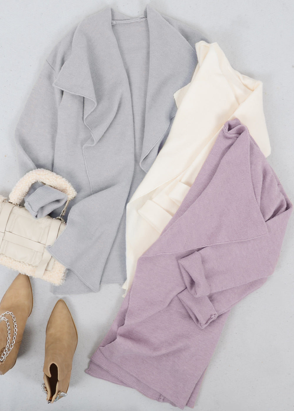 Open Front Wide Lapel Waterfall Relaxed Cardi
