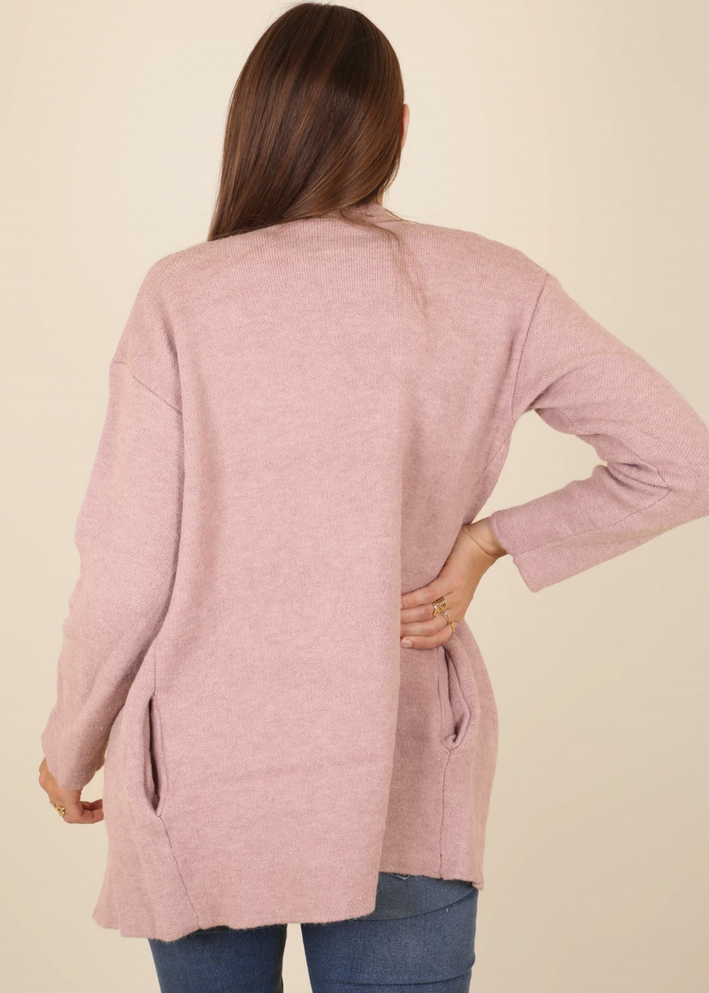 The Anna-Kaci cardigan is designed with a unique wide lapel. Features a waterfall cardi design, long sleeves, open front, and oversized fit with thigh length. Pair with a dress shirt for a sophisticated and unique look.
