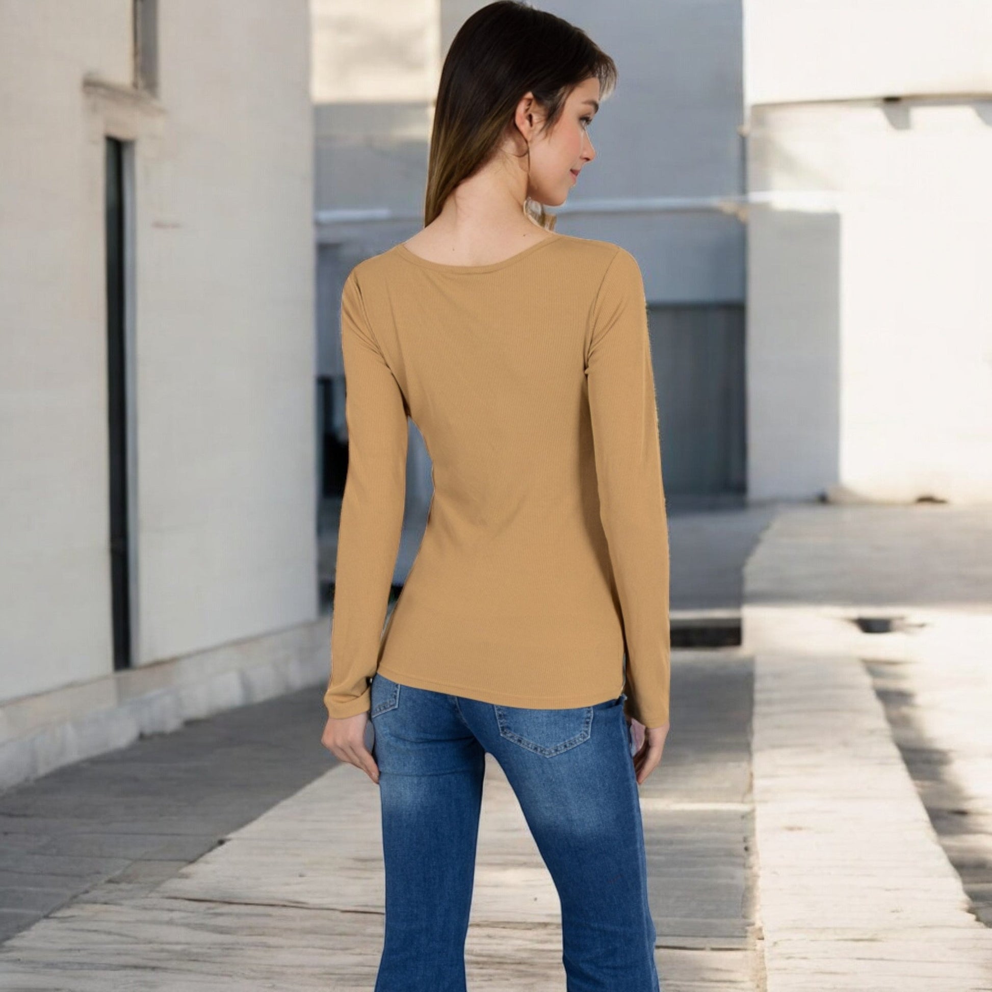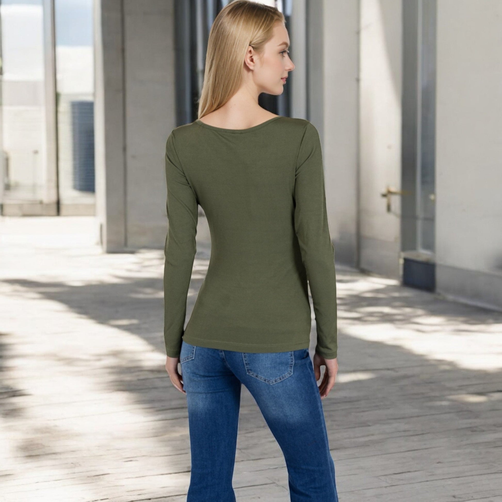 Anna-Kaci Women's Long Sleeve Scoop Neck Top is a versatile essential that combines comfort and timeless style. Crafted from a soft stretch knit fabric, this top offers a flattering fit and ease of movement. The scoop neckline and slim silhouette make it perfect for layering or wearing on its own. Pair it with jeans or skirts for a polished yet casual look suitable for any occasion.