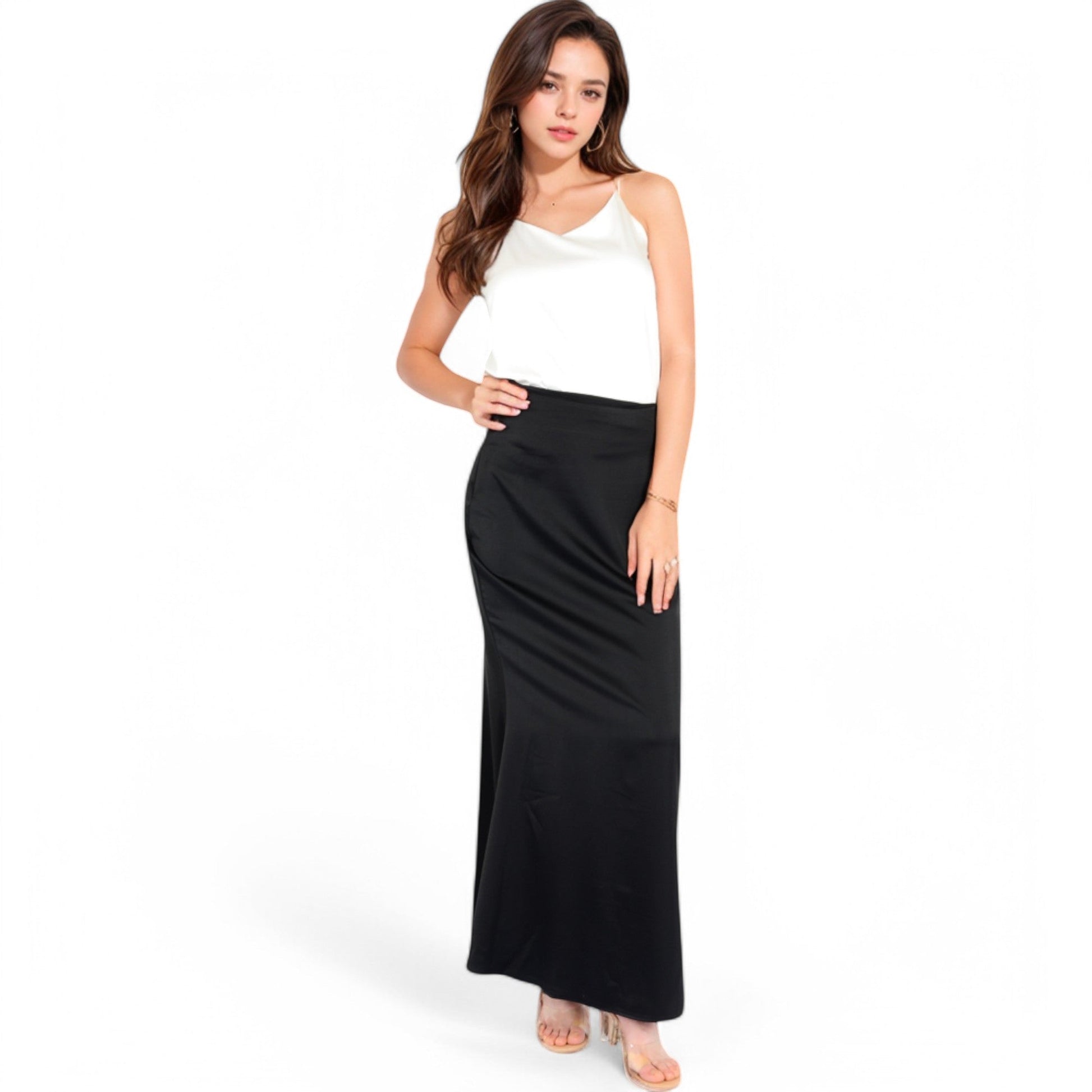 Satin Maxi Skirt With High Waist And Flowing A-Line Design