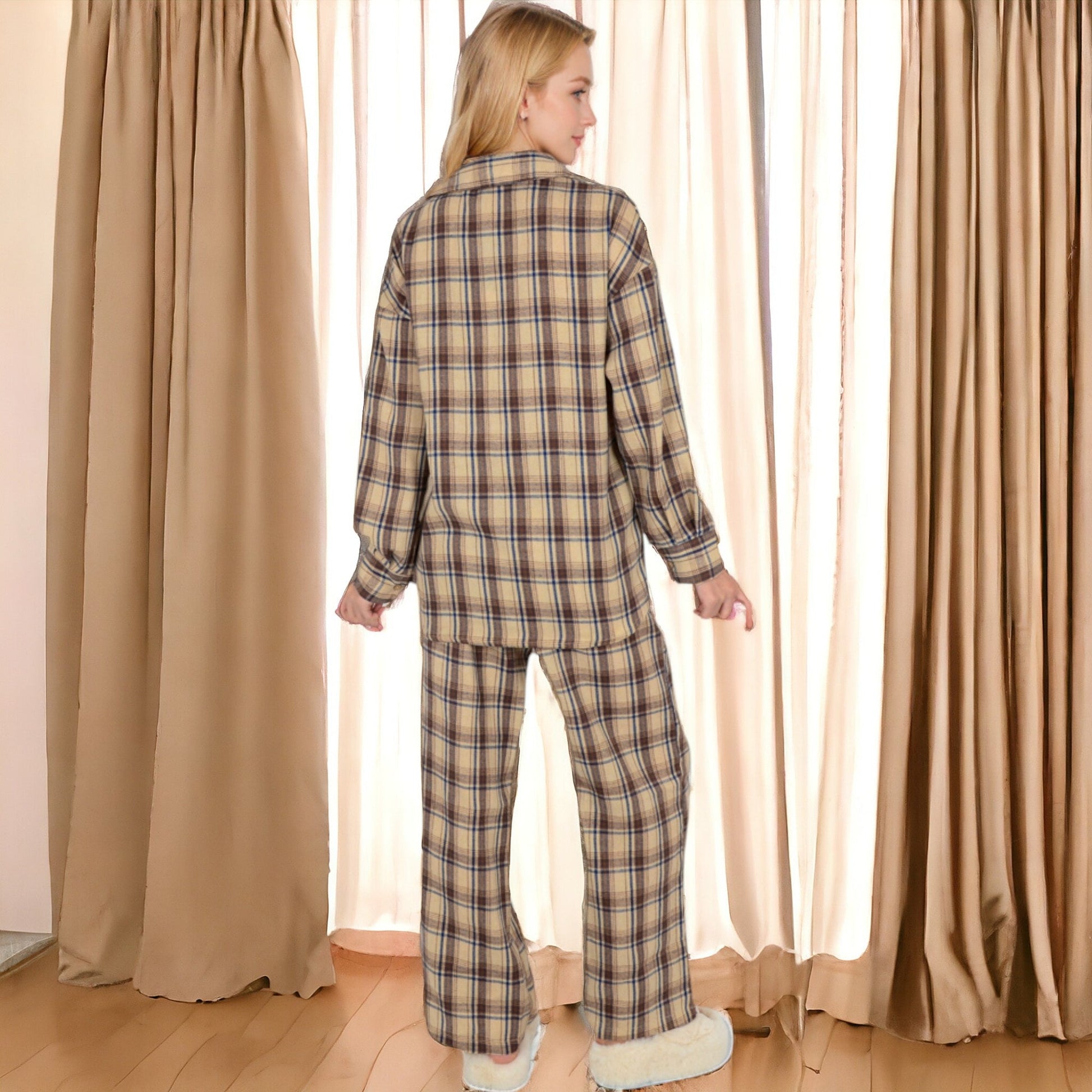 Plaid Lounge Set with Button-Up Shirt and Elastic Waist Pants