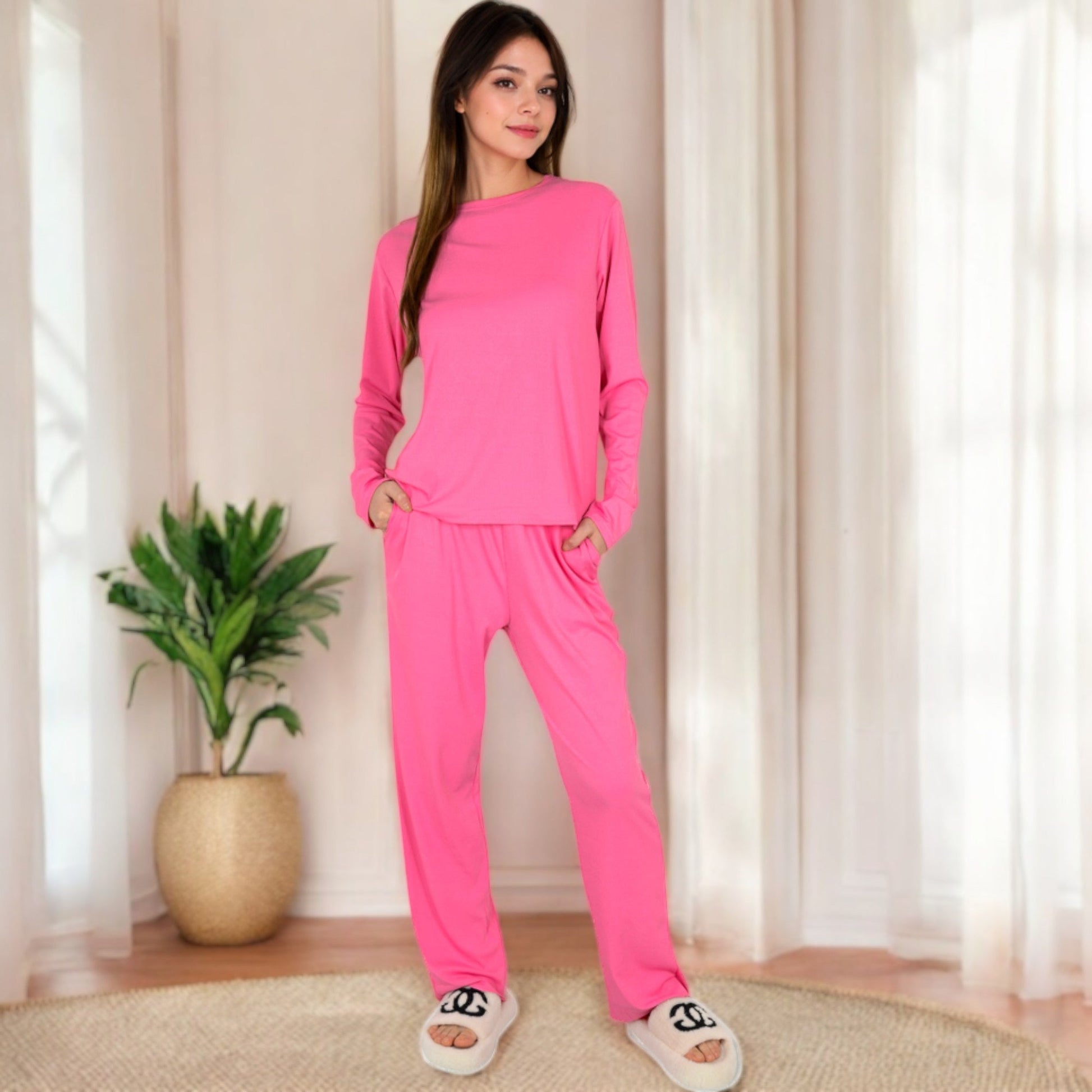 The Anna-Kaci Women's Long Sleeve Pajama Set combines ultimate comfort with effortless style. Featuring a lightweight, soft-touch fabric, this set is perfect for lounging or sleeping. The long sleeves and relaxed-fit pants provide all-day ease, while the simple design offers a timeless look. Whether you're winding down at home or enjoying a cozy morning, this pajama set is your go-to for comfort and style.