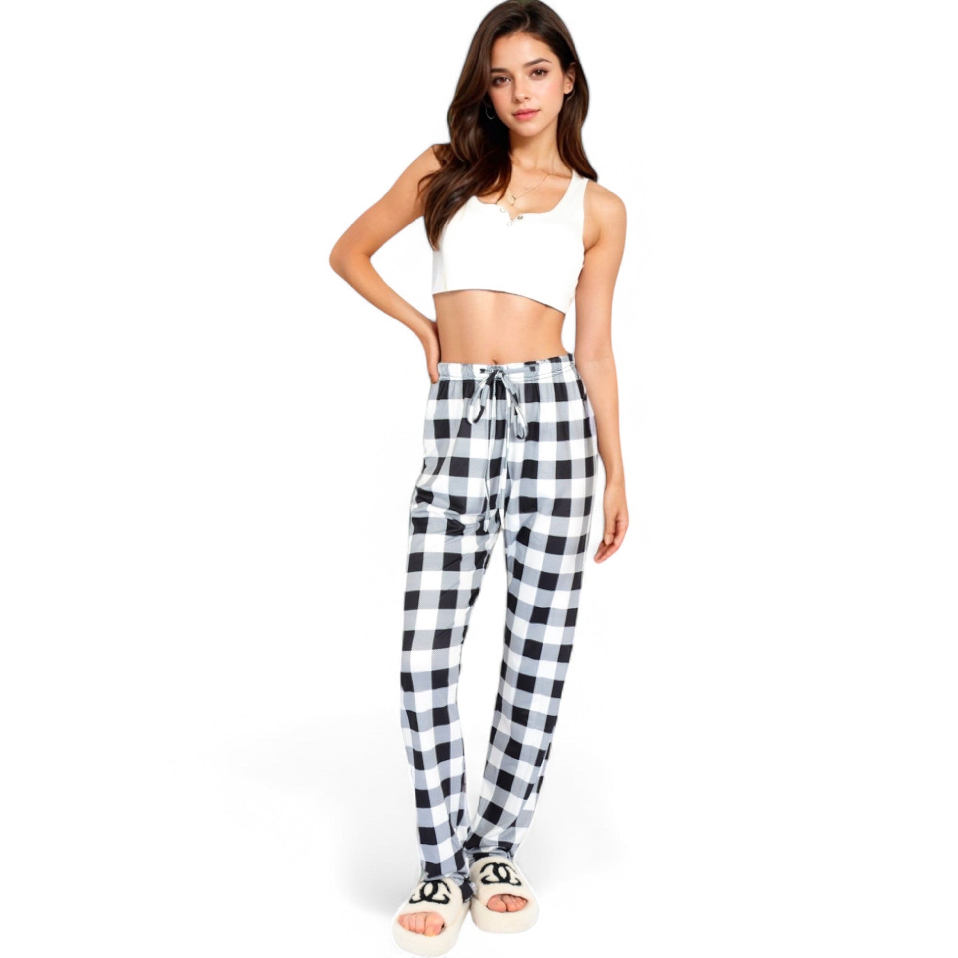Anna-Kaci Women's plaid flannel lounge pants combine classic style and comfort. These pants feature a soft, lightweight fabric with a timeless plaid pattern, offering a relaxed fit for ultimate ease. The elastic waistband and adjustable drawstring ensure a customizable, secure fit. Perfect for cozy moments at home, these lounge pants are designed for comfort without compromising style.