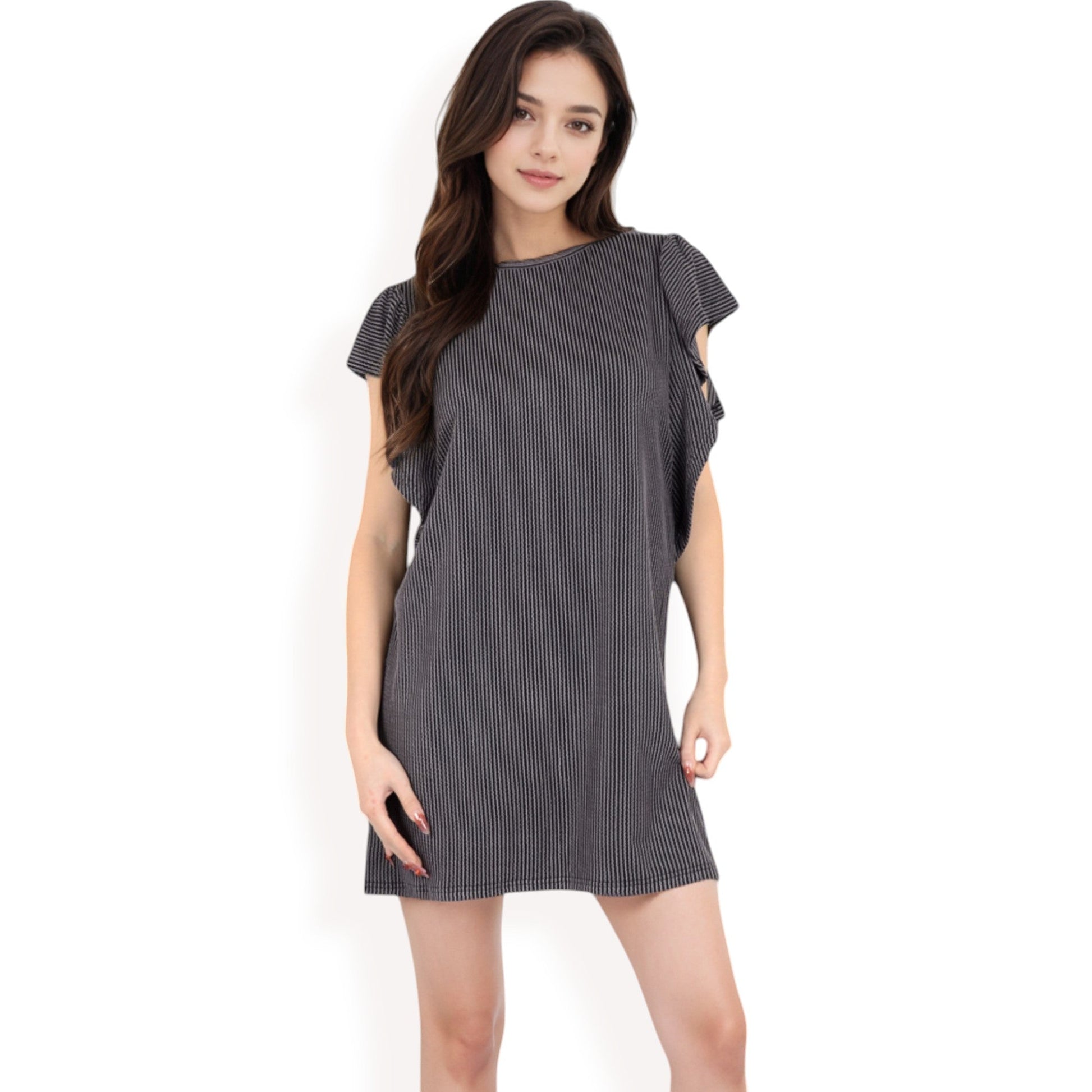 Ruffle Sleeve Textured Knit Mini Shift Dress
