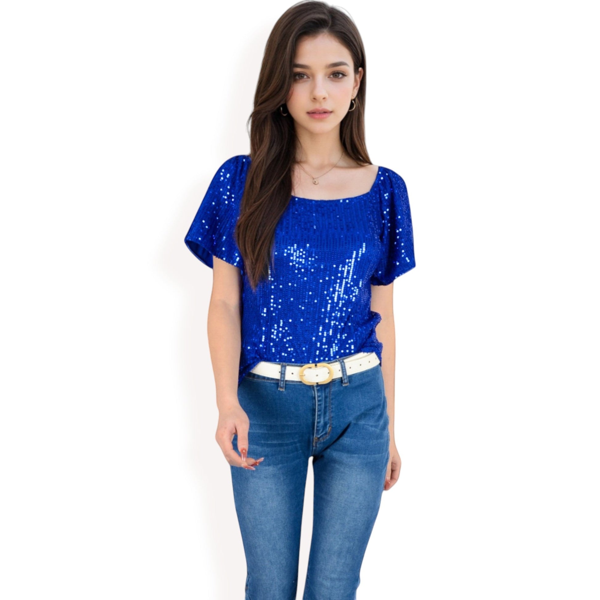 Short Sleeve Square Neck Sequin Top for Special Occasions