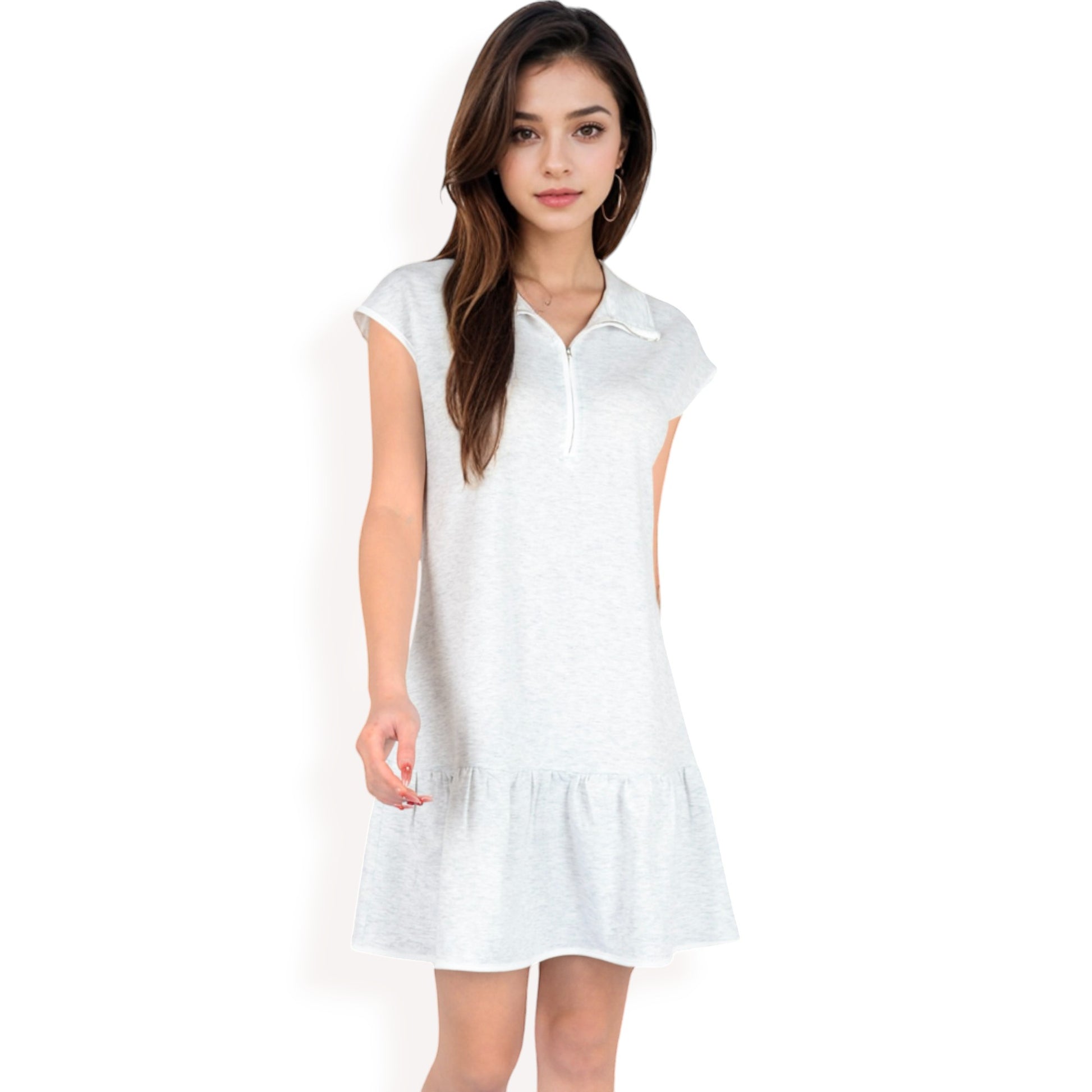 The Anna-Kaci Women's Zip-Up Collared Dress offers a perfect blend of sporty and feminine style. This casual dress features a zippered collared neckline and a playful ruffle hem for a flattering silhouette. Made from soft, lightweight fabric, it provides all-day comfort and ease of movement. Ideal for brunch dates, casual outings, or layering with jackets for cooler days, this dress combines practicality with chic design.