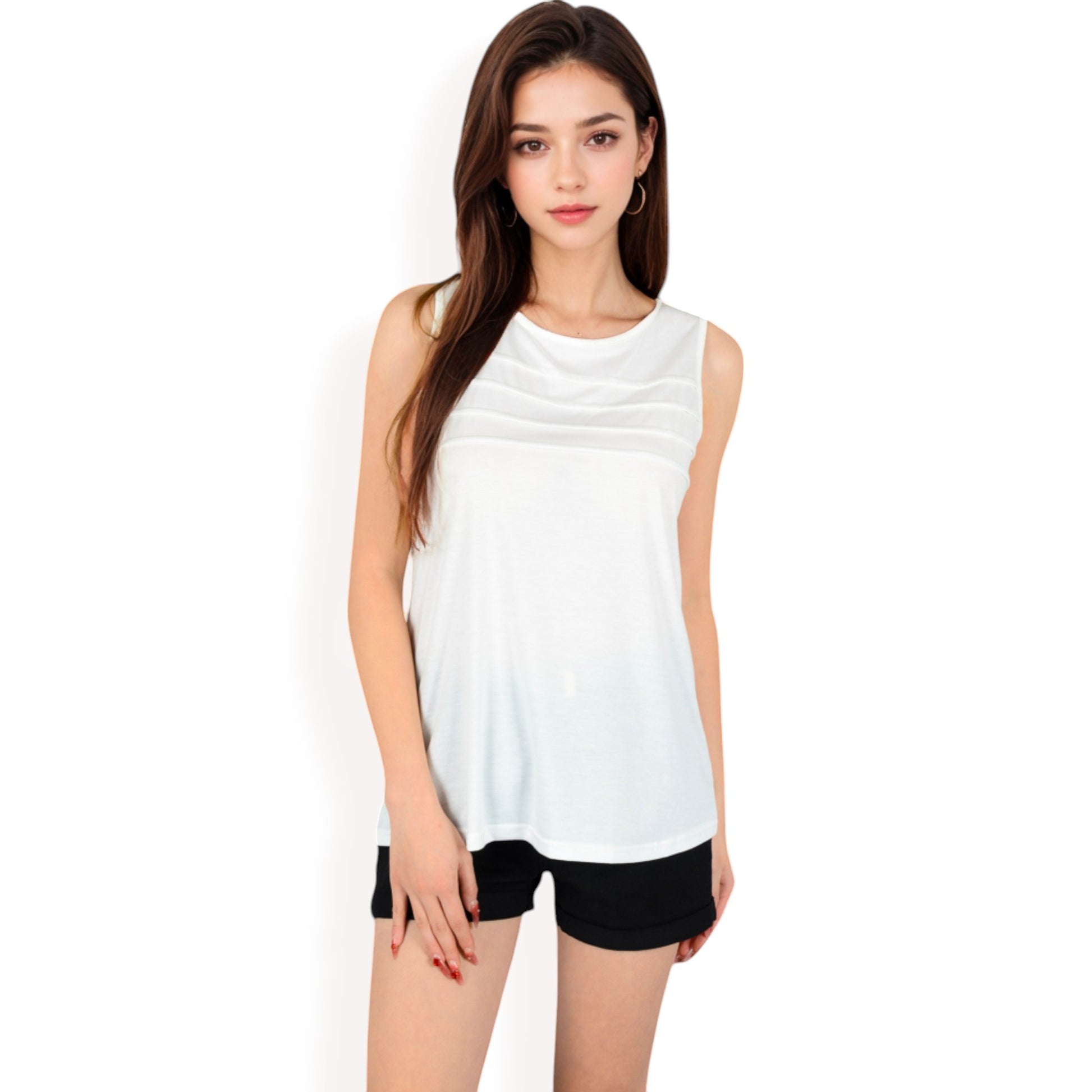 Sleeveless Tank Top with Pintuck Pleat Details and Soft Stretch Fabric