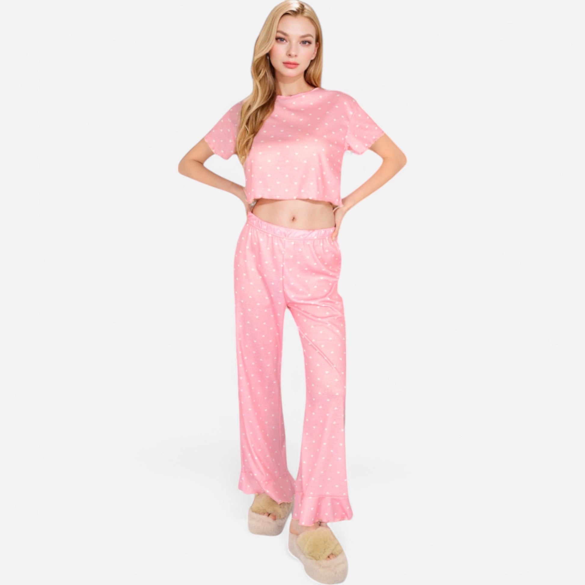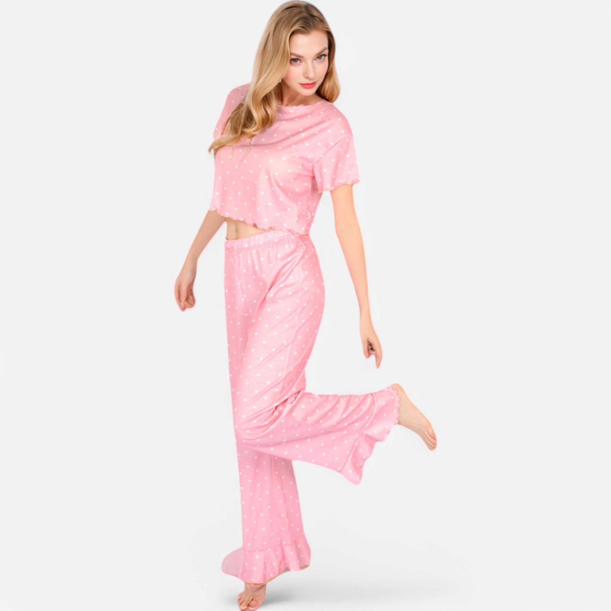 Lounge Women's Short Sleeve Lounge Set with Wide Leg Pants and Relaxed Fit