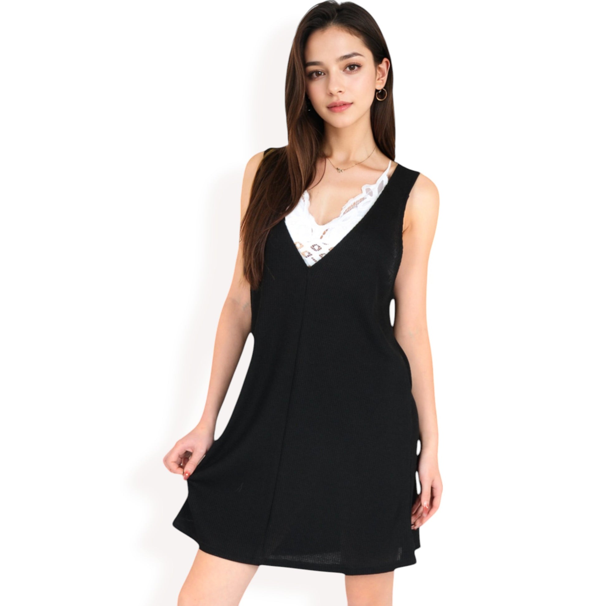 Sleeveless V-Neck Waffle Knit A-Line Dress