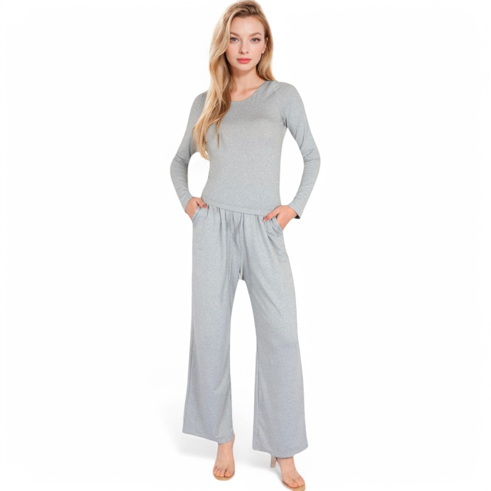 The Anna-Kaci Women's Wide-Leg Lounge Sets combine comfort and sophistication, ideal for lounging or casual outings. Featuring an elastic waistband and adjustable drawstring, these pants offer a secure and customizable fit. The flowy wide-leg silhouette creates an elegant and relaxed look, perfect for pairing with fitted tops or casual tees.