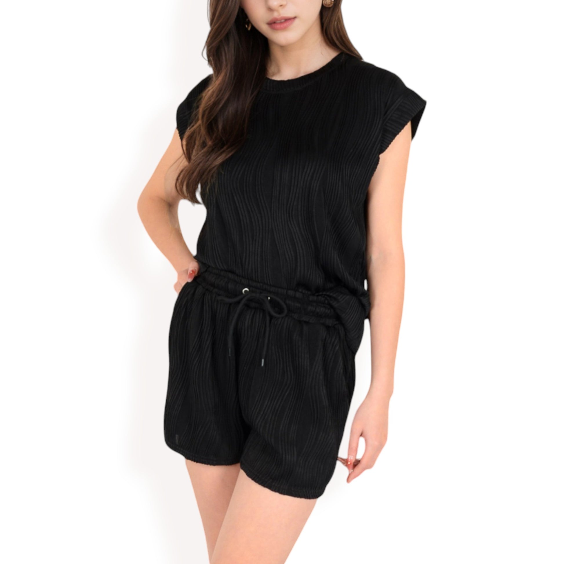 Sleeveless Two-Piece Lounge Set with Rolled Hem Shorts