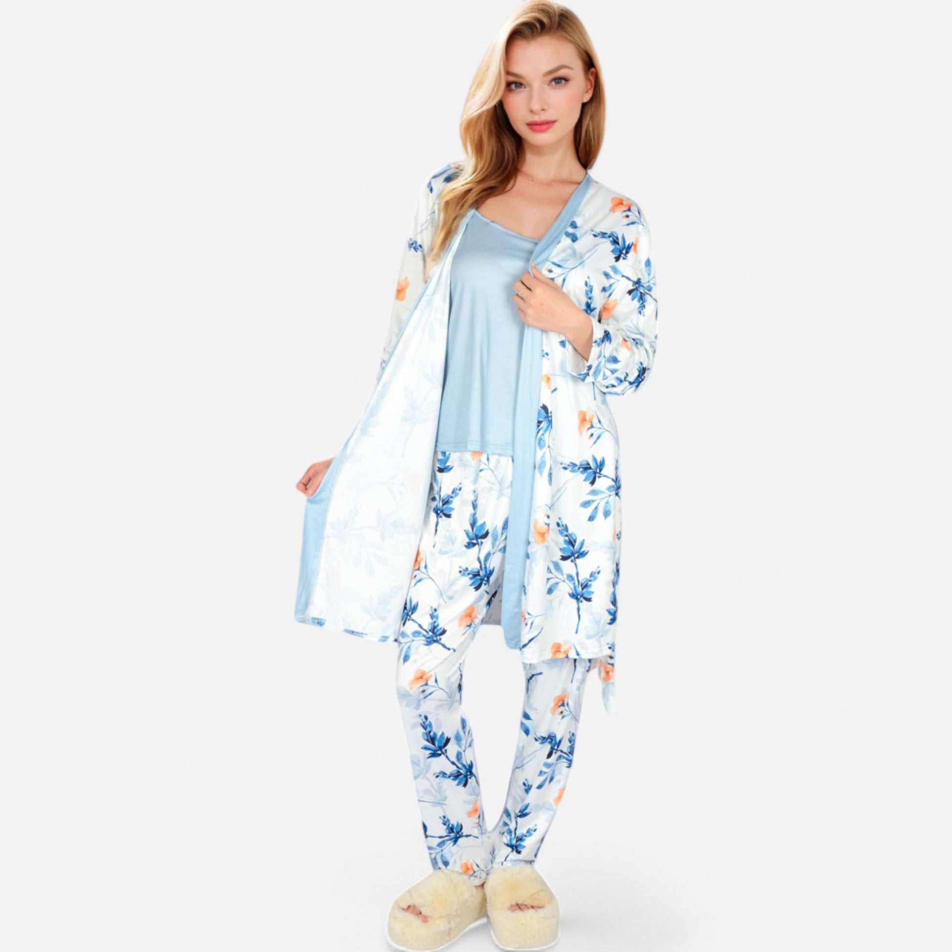 Lounge Women's Floral Print 3-Piece Pajama Set with Long Cardigan
