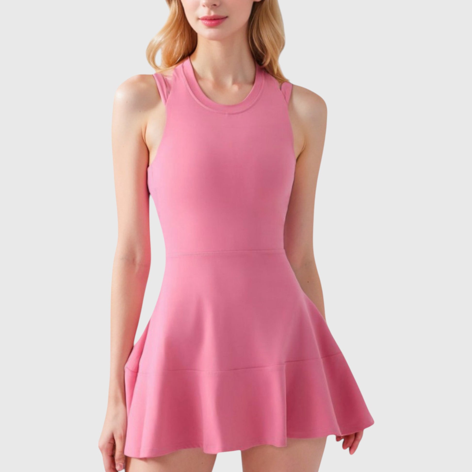 Women's Racerback Flowy Athletic Dress with Built-In Shorts