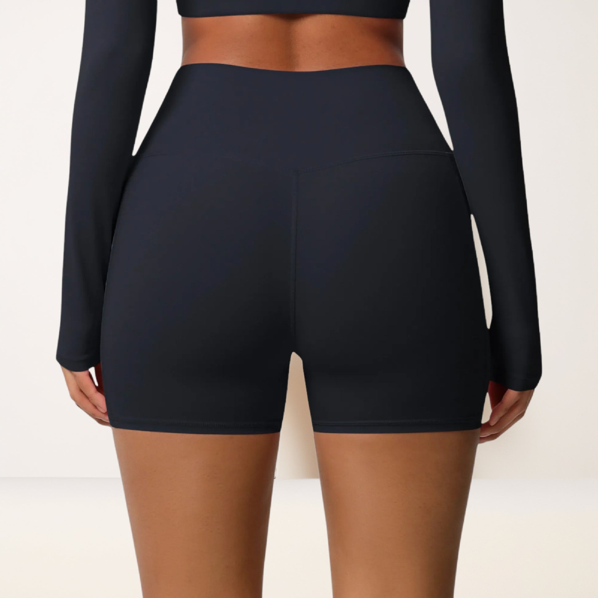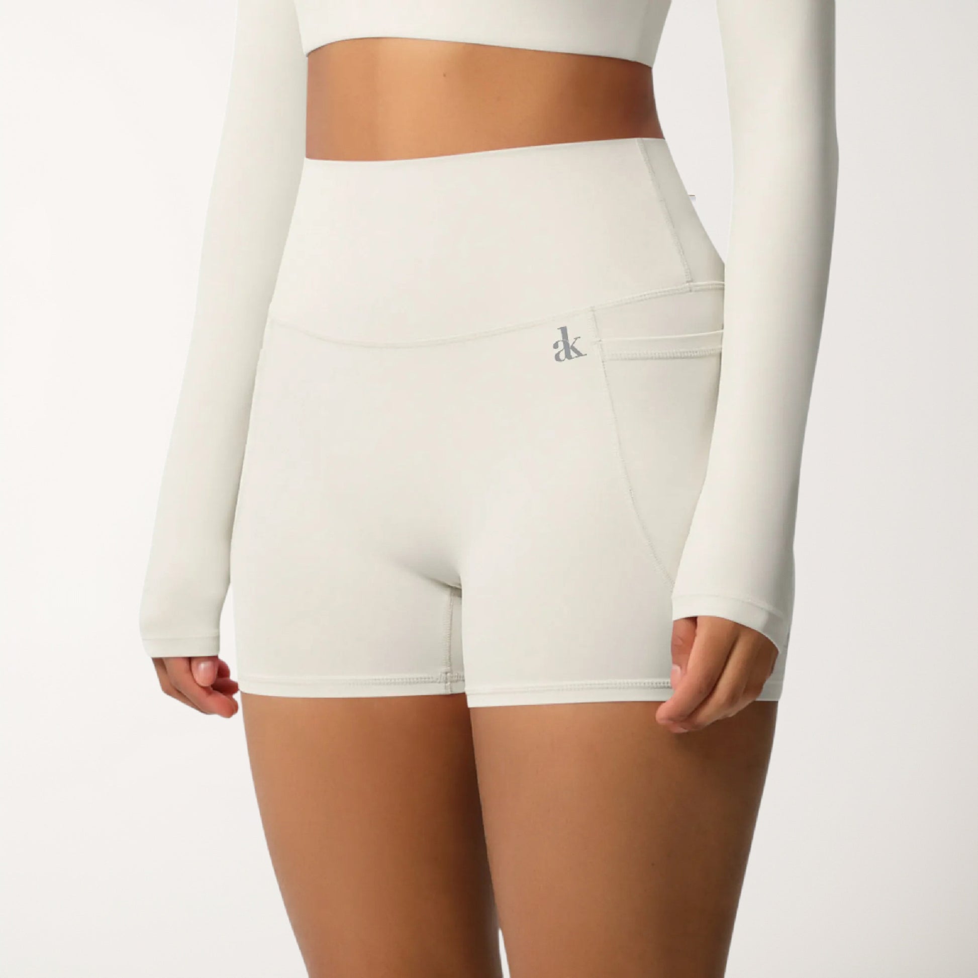 High Waist Active Shorts with Stretch Compression Fit Seamless Construction and Side Pocket Detail