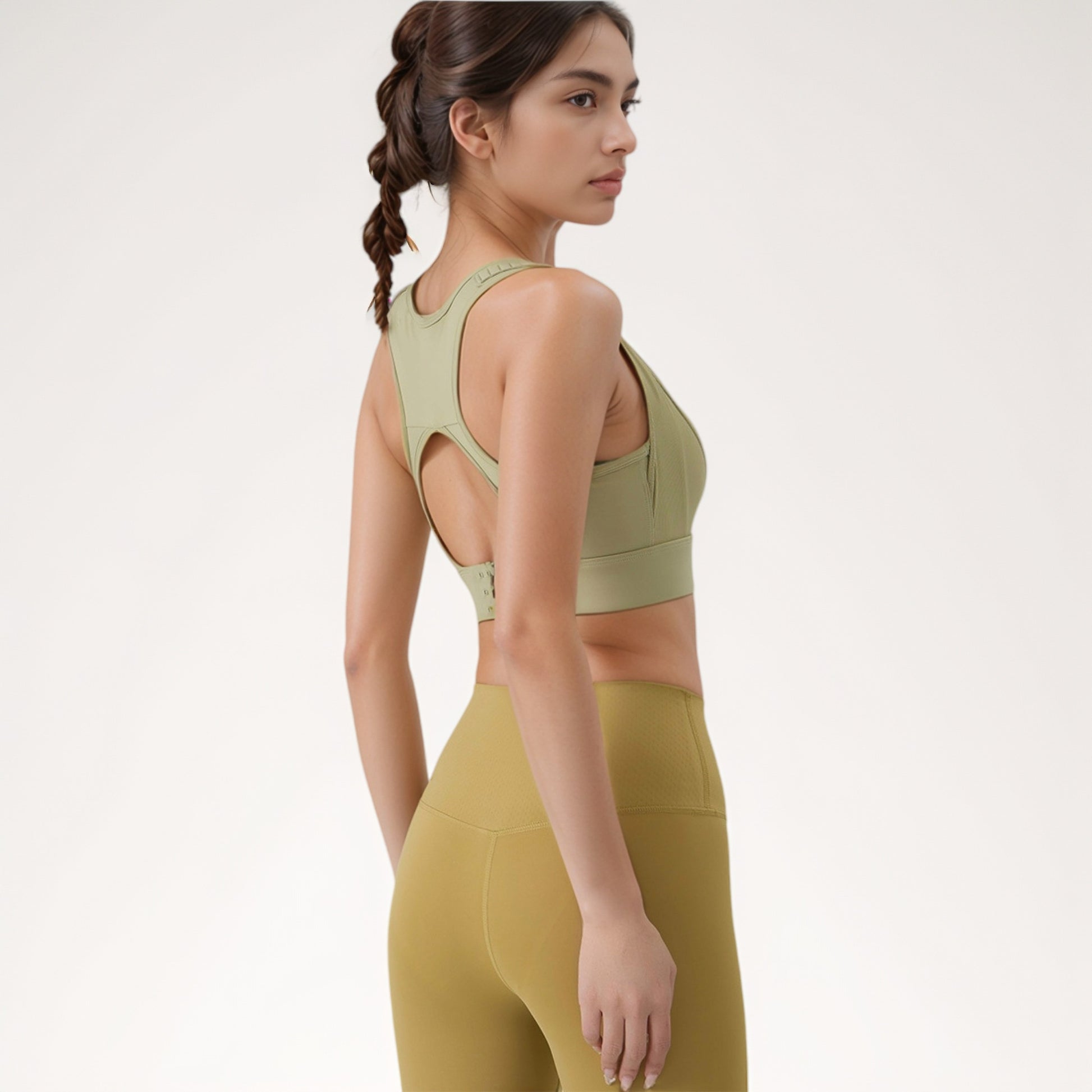 High Support Athletic Sports Bra with Scoop Neck and Wide Adjustable Straps