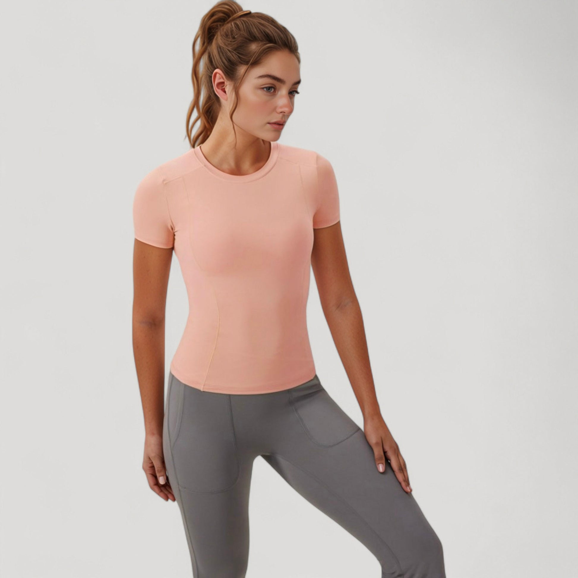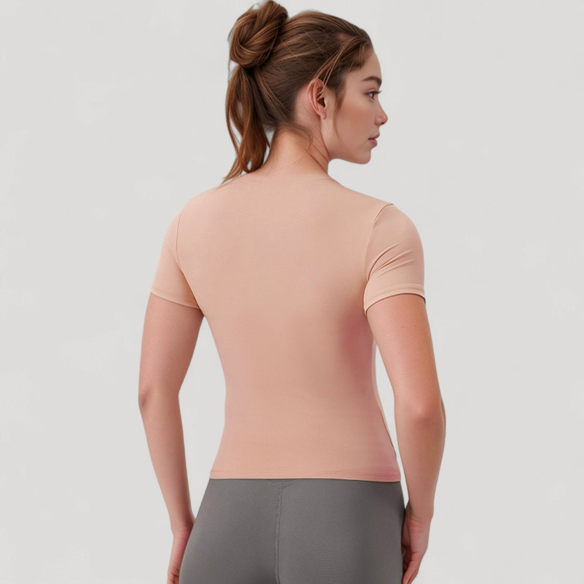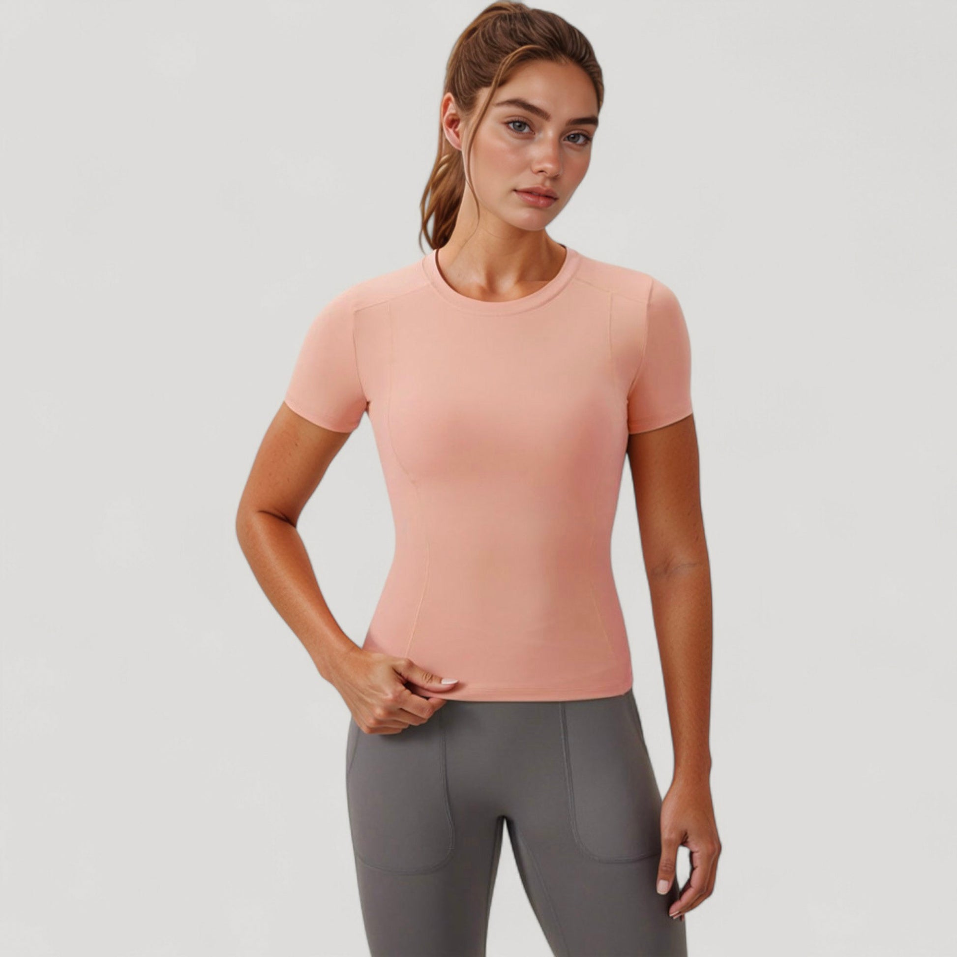 This women's performance tee is designed with a classic crew neckline and a sleek slim fit that contours to your shape without feeling restrictive. Made from soft, stretchy fabric, it offers moisture-wicking comfort and a lightweight feel, ideal for both workouts and casual wear. Its smooth seams and minimalistic design ensure a flattering, polished look. Whether you're heading to the gym or running errands, this tee keeps you feeling fresh and stylish all day long.