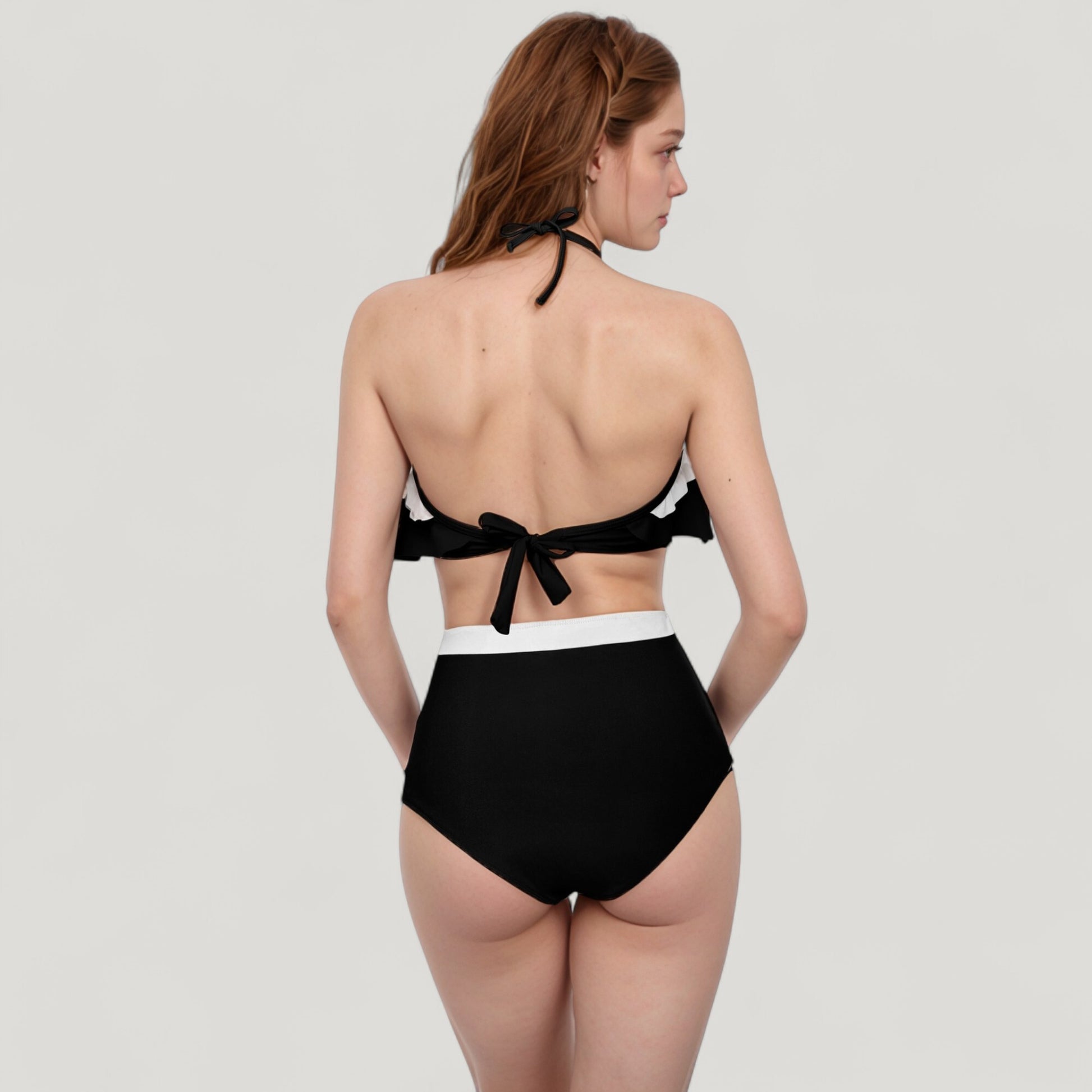 Ruffle Flounce Bikini Top and High Waist Bottom Two-Piece Swimsuit with Contrast Trim