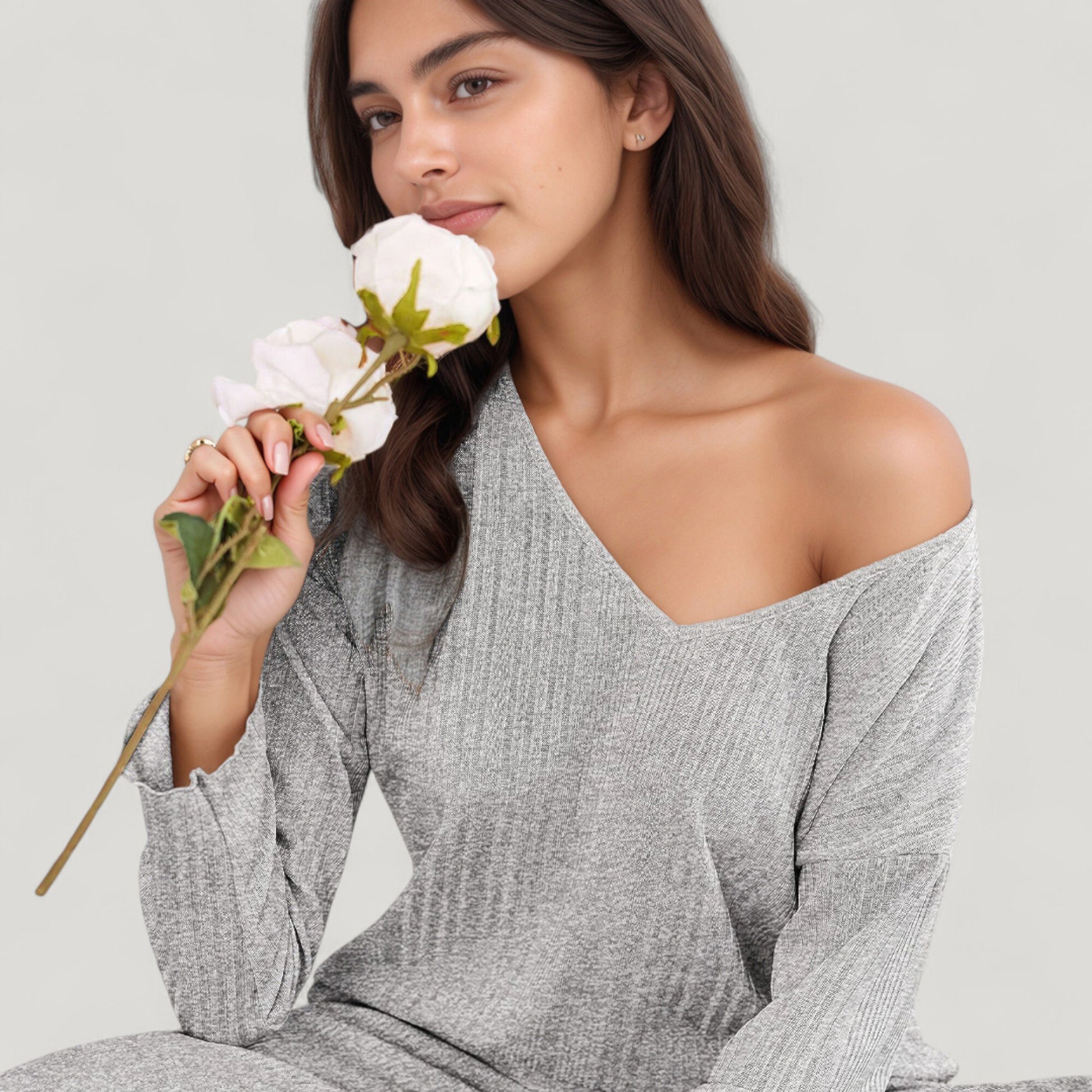 The Anna-Kaci Women's Pajama Set combines modern style with everyday comfort in this effortlessly chic two-piece design. The ribbed knit fabric adds subtle texture, while the long sleeve crop top and high-waisted pants offer a flattering silhouette. Soft, stretchy, and breathable, this set is ideal for lounging at home or casual daywear. A versatile addition to your laid-back wardrobe.