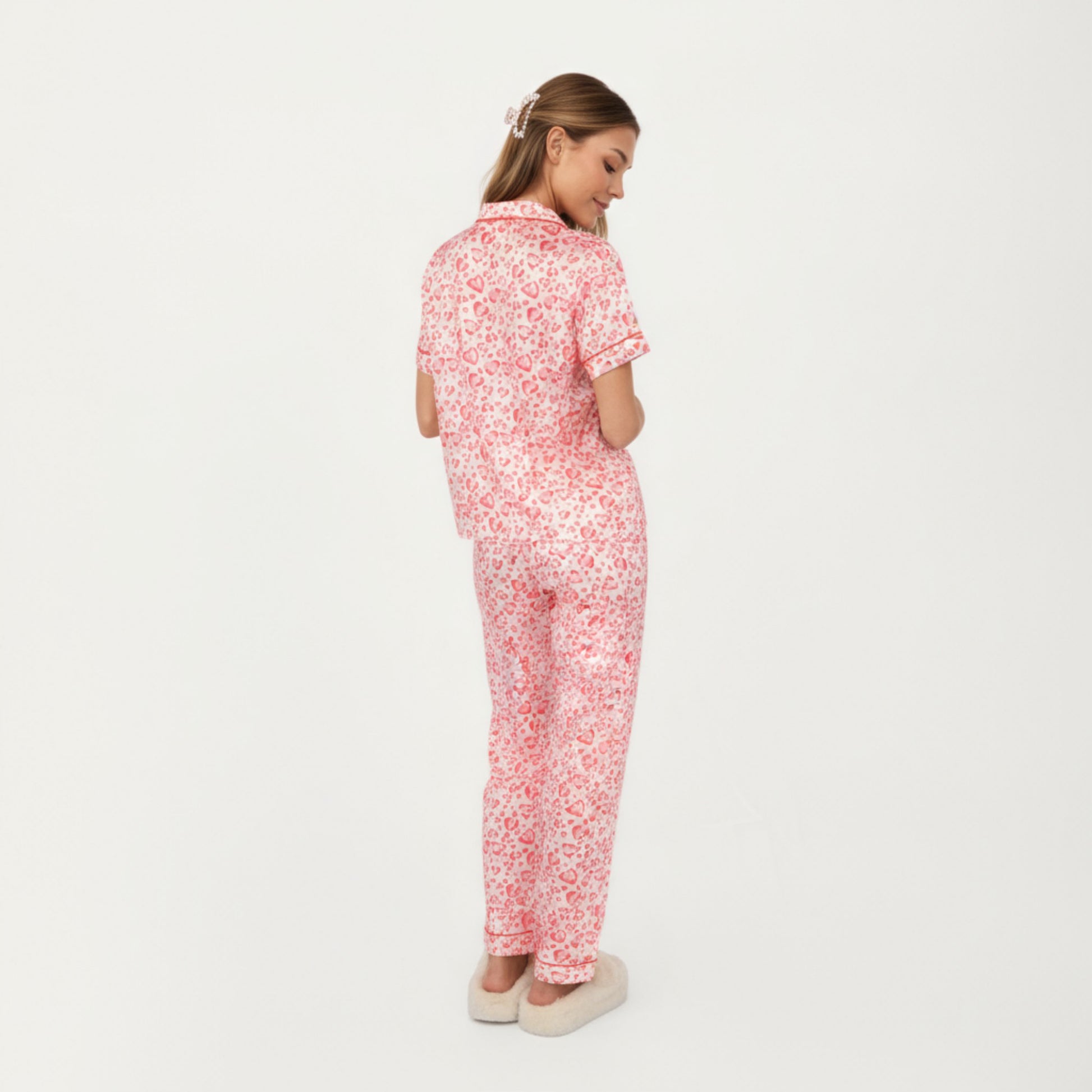 The Anna-Kaci Women's 2-Piece Set Short Sleeve Button Front Pajama Set brings playful style and all-day comfort to your sleepwear collection. Featuring a chic leopard print on smooth fabric, this two-piece set includes a short sleeve button-down top and relaxed-fit pants. Lightweight and breathable, it¡¯s perfect for warm-weather lounging or cozy nights at home with a fun, fashionable twist.