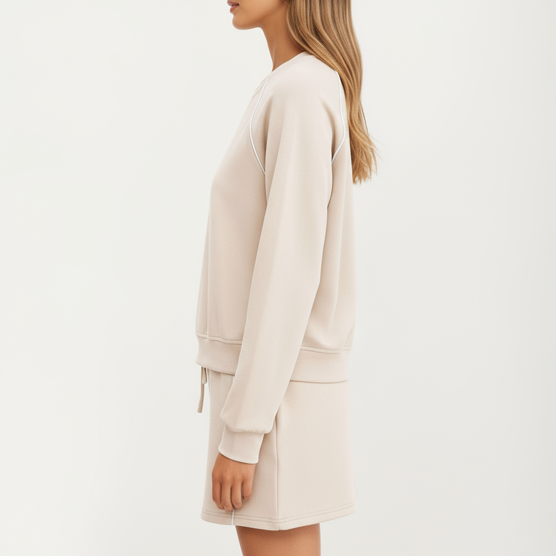 2-Piece Set Long Sleeve Pullover Top with Elastic Waist Mini Skirt