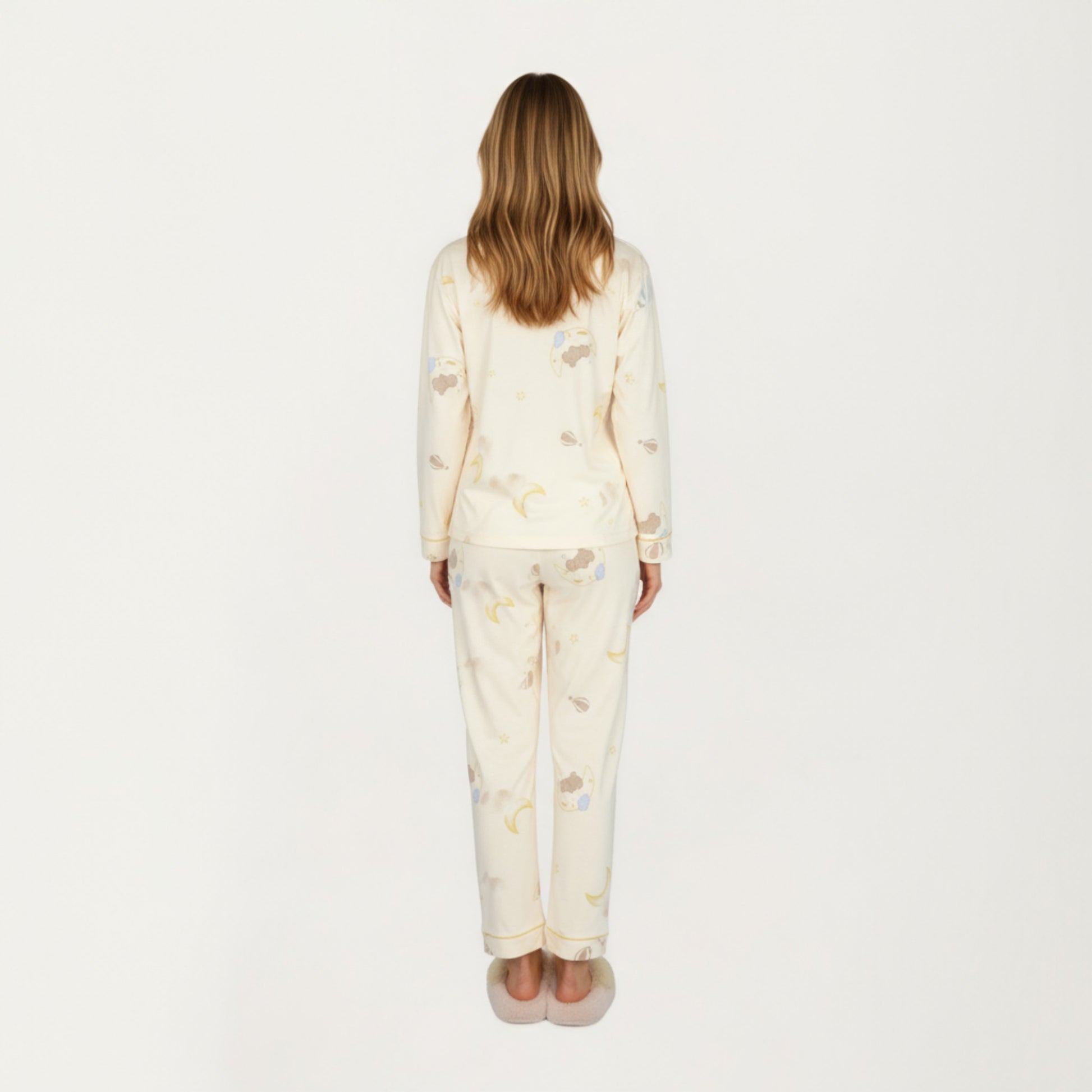 2-Piece Set Long Sleeve Button Front Top and Relaxed Fit Pants Pajama Set with Moon and Star Print