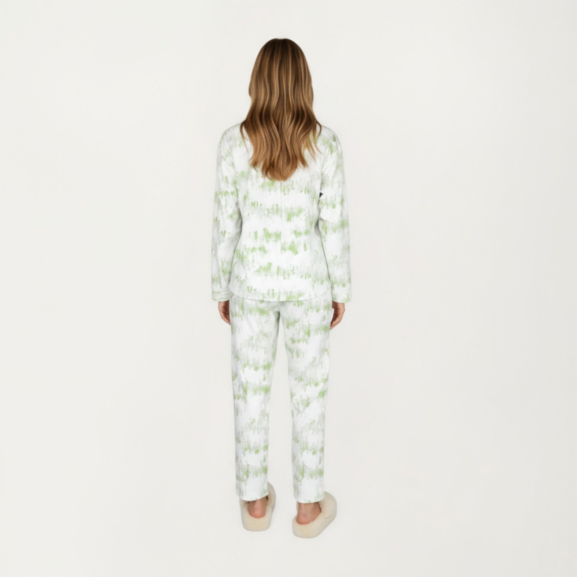 The Anna-Kaci Women's 2-Piece Set Long Sleeve Button Front Top with Built-In Chest Pads and Relaxed Fit Pants Pajama Set combines comfort, style, and convenience in one. Featuring built-in chest pads for light support and a chic brushstroke print, this set includes a long sleeve button-front top and coordinating pants made from soft, breathable fabric. Perfect for lounging or bedtime, it delivers effortless style and everyday comfort.