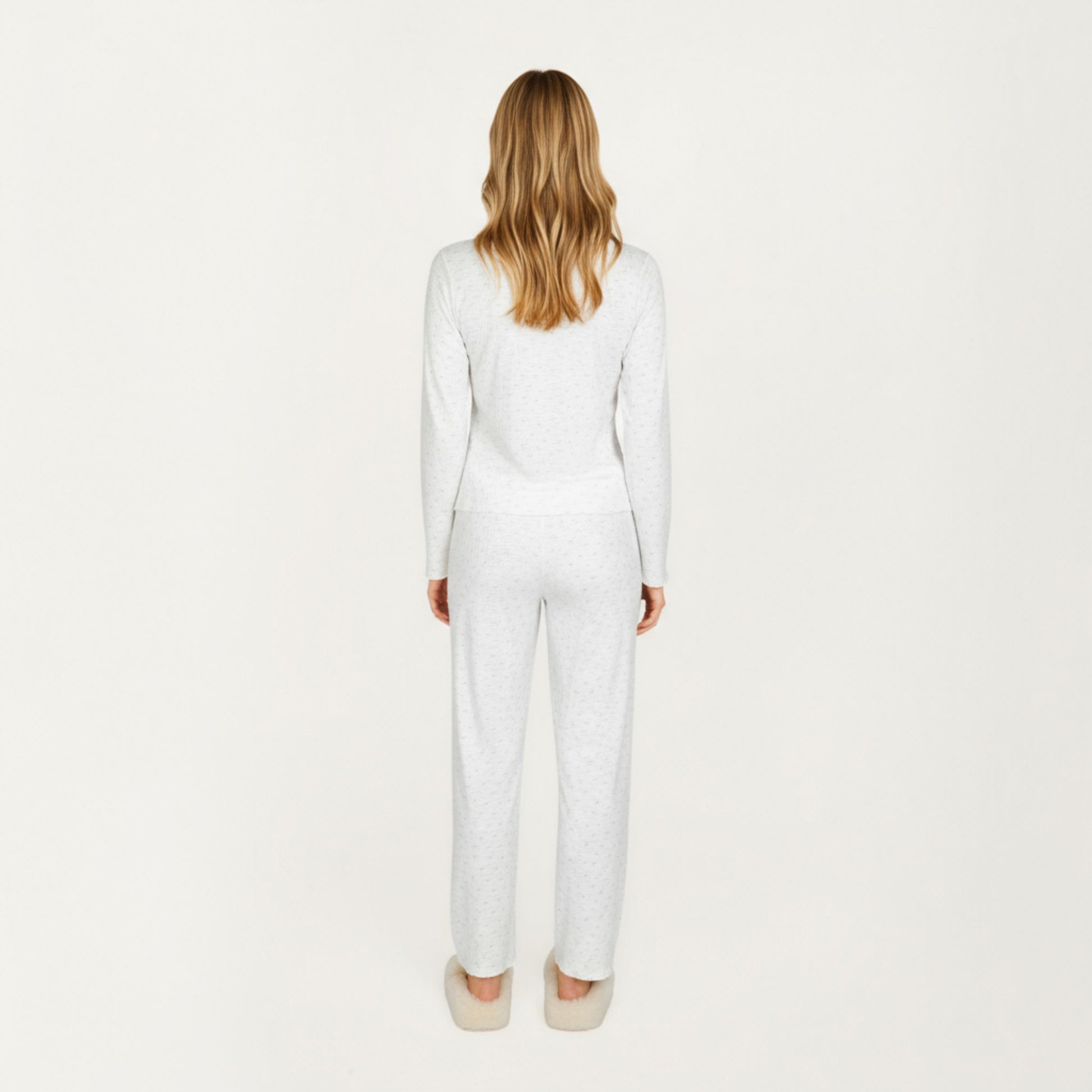 2-Piece Set Long Sleeve Button Front Top with Built-In Chest Pads and Relaxed Fit Pants Pajama Set in Soft Textured Fabric
