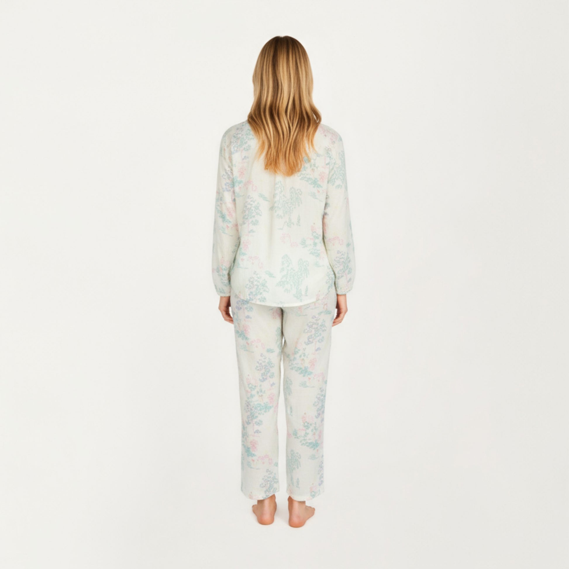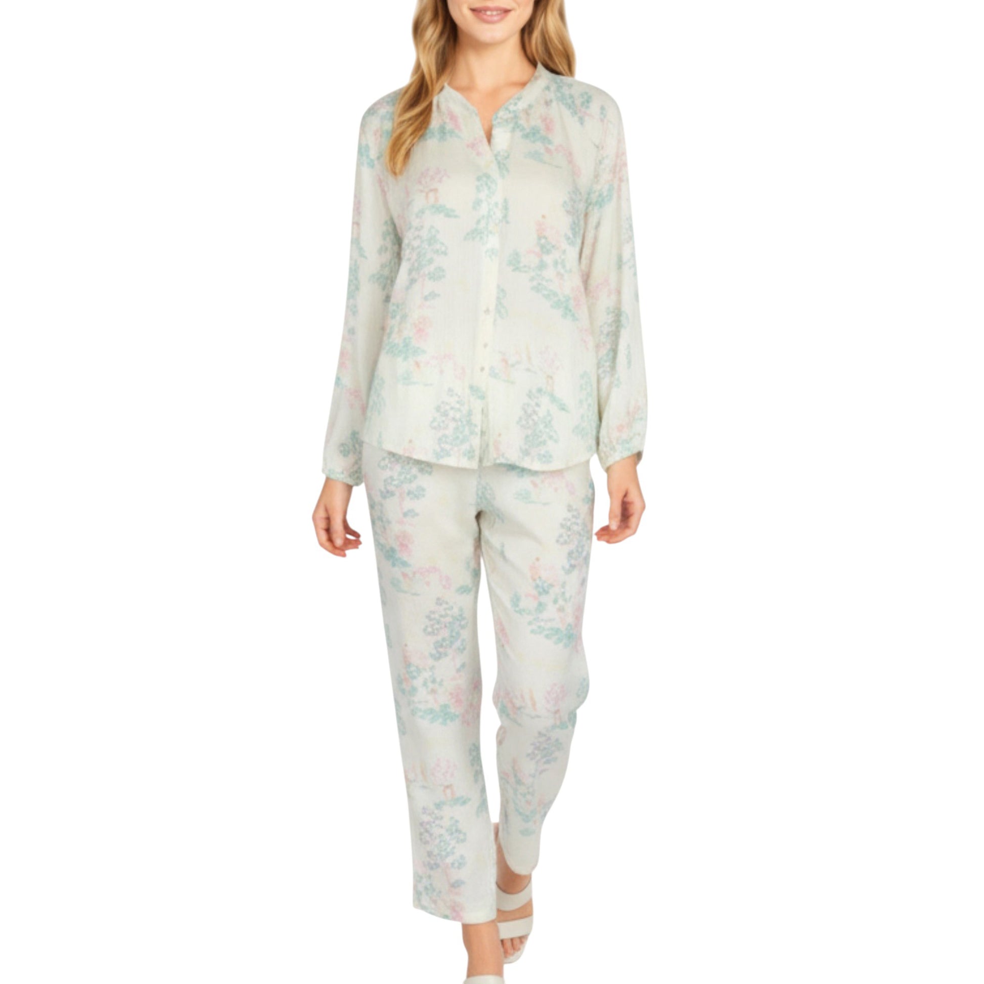 2-Piece Set Long Sleeve Button Front Top and Relaxed Fit Pants Pajama Set with Pastel Print