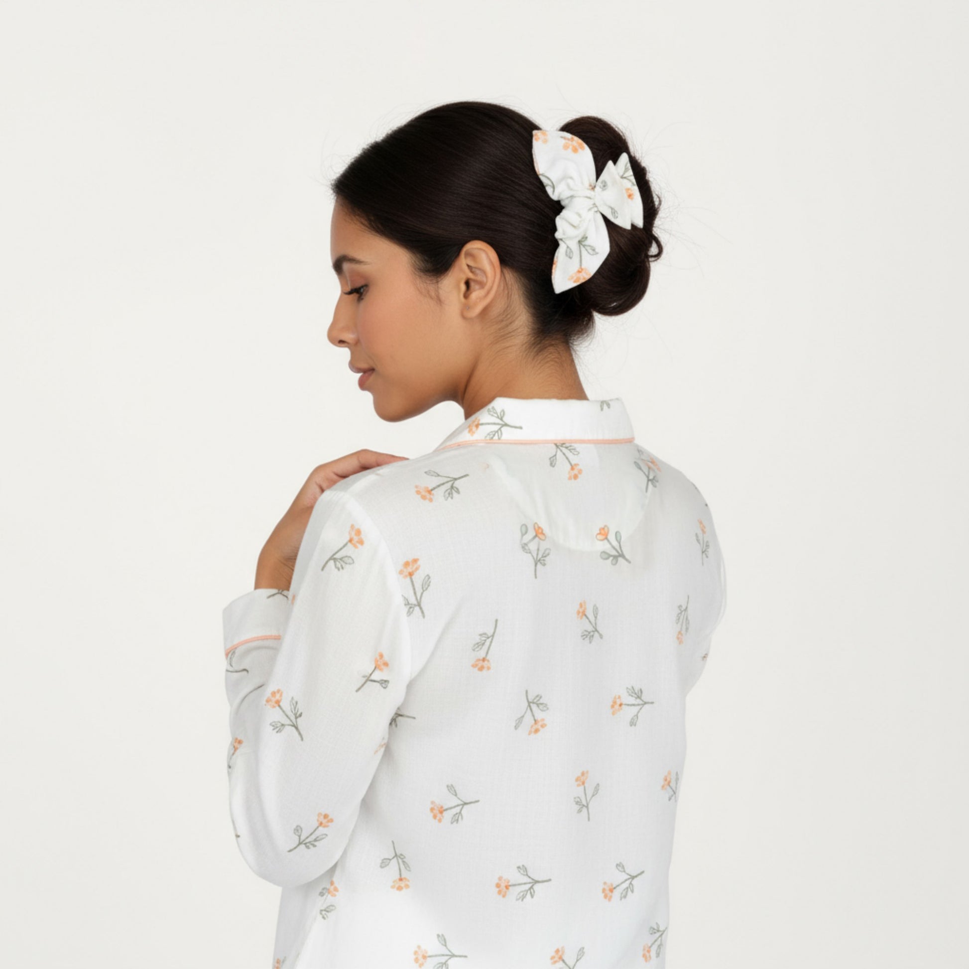 2-Piece Set Long Sleeve Sleep Shirt with Floral Pattern and Coordinating Lounge Pants