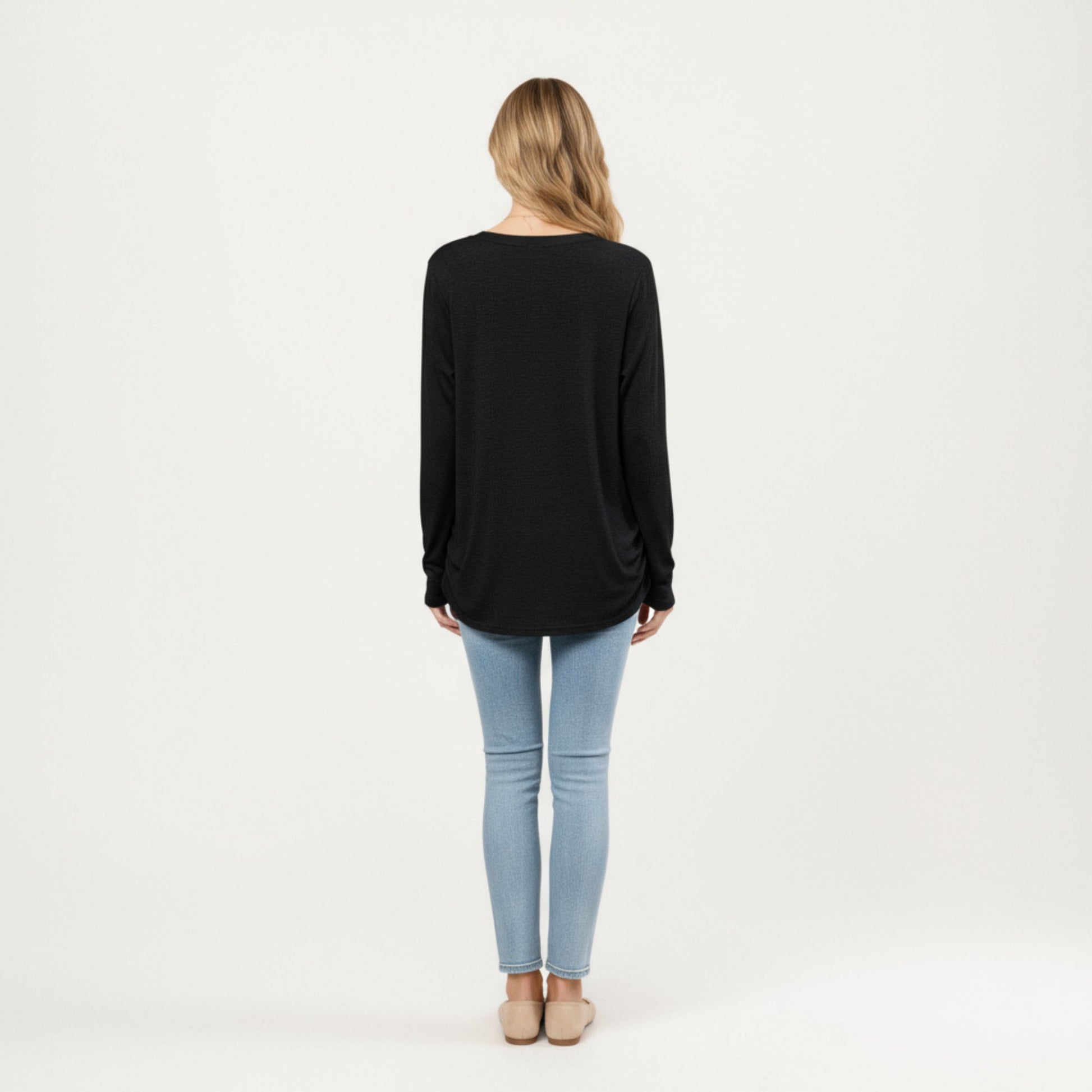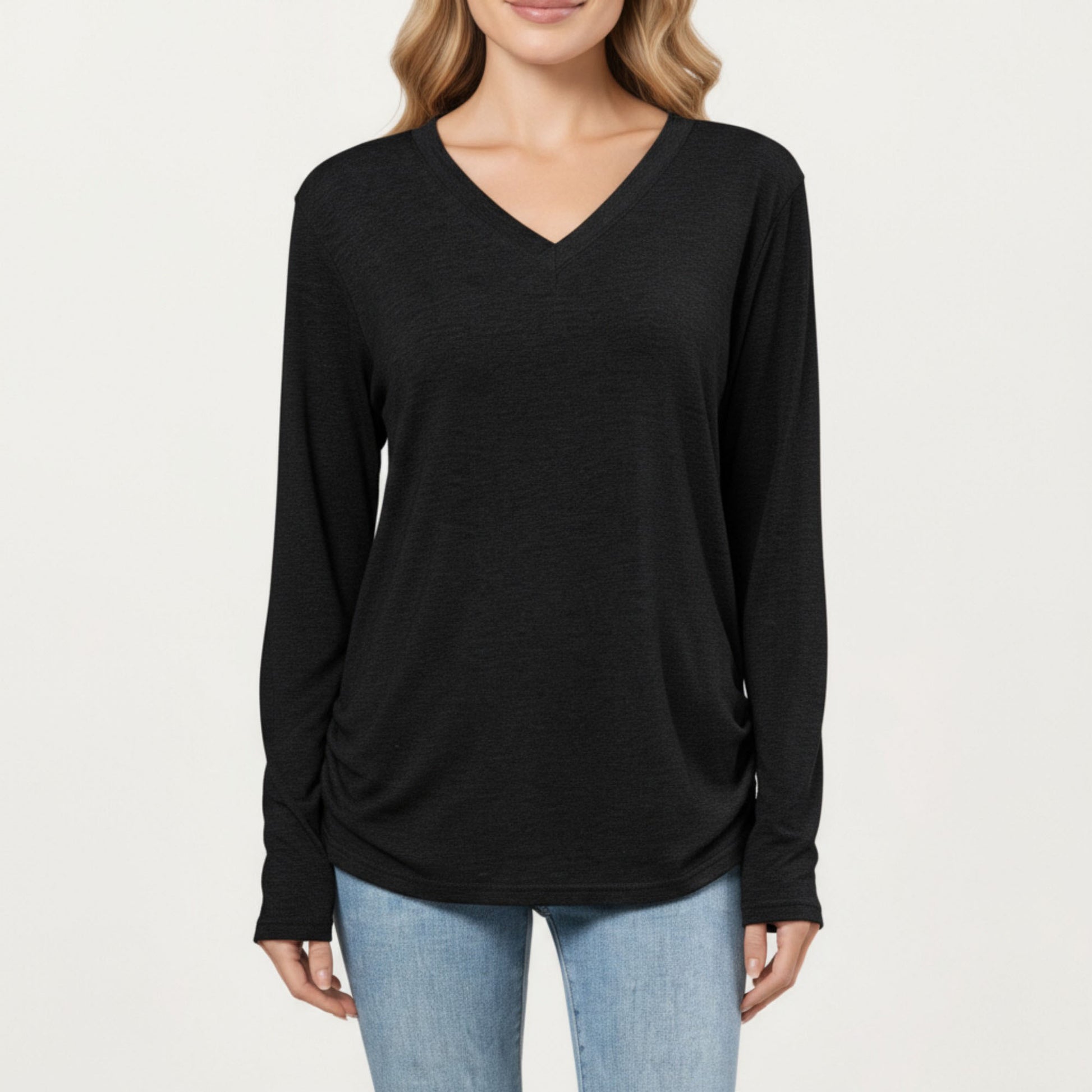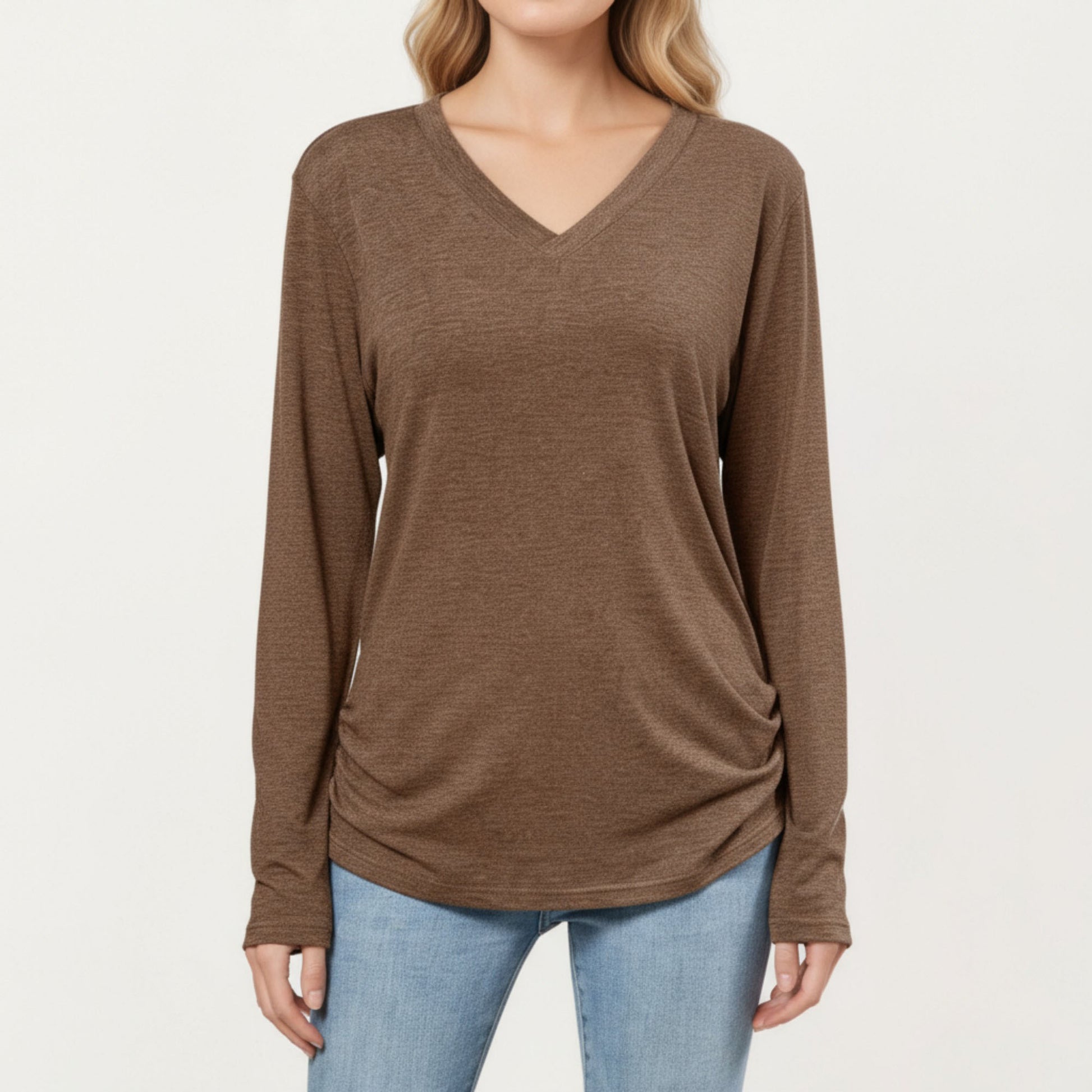 Long Sleeve V-Neck Top with Ruched Side Detailing