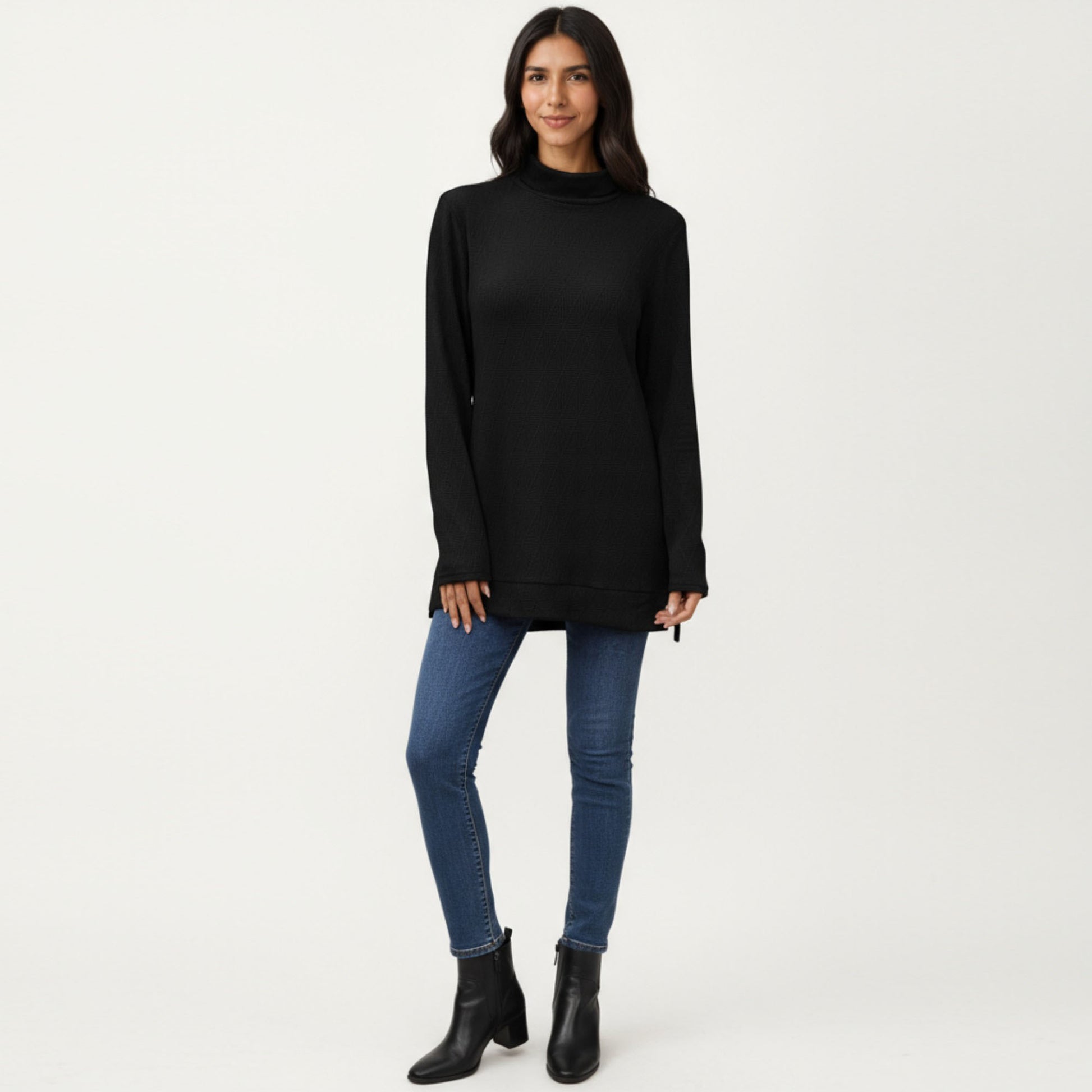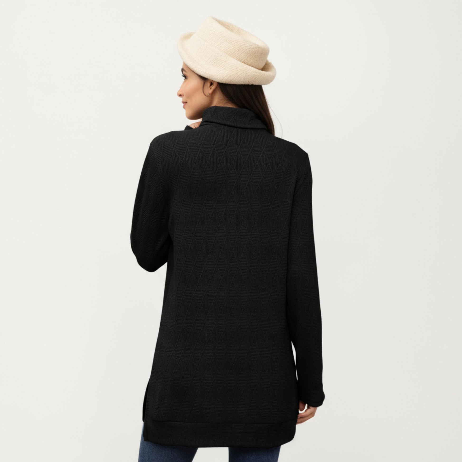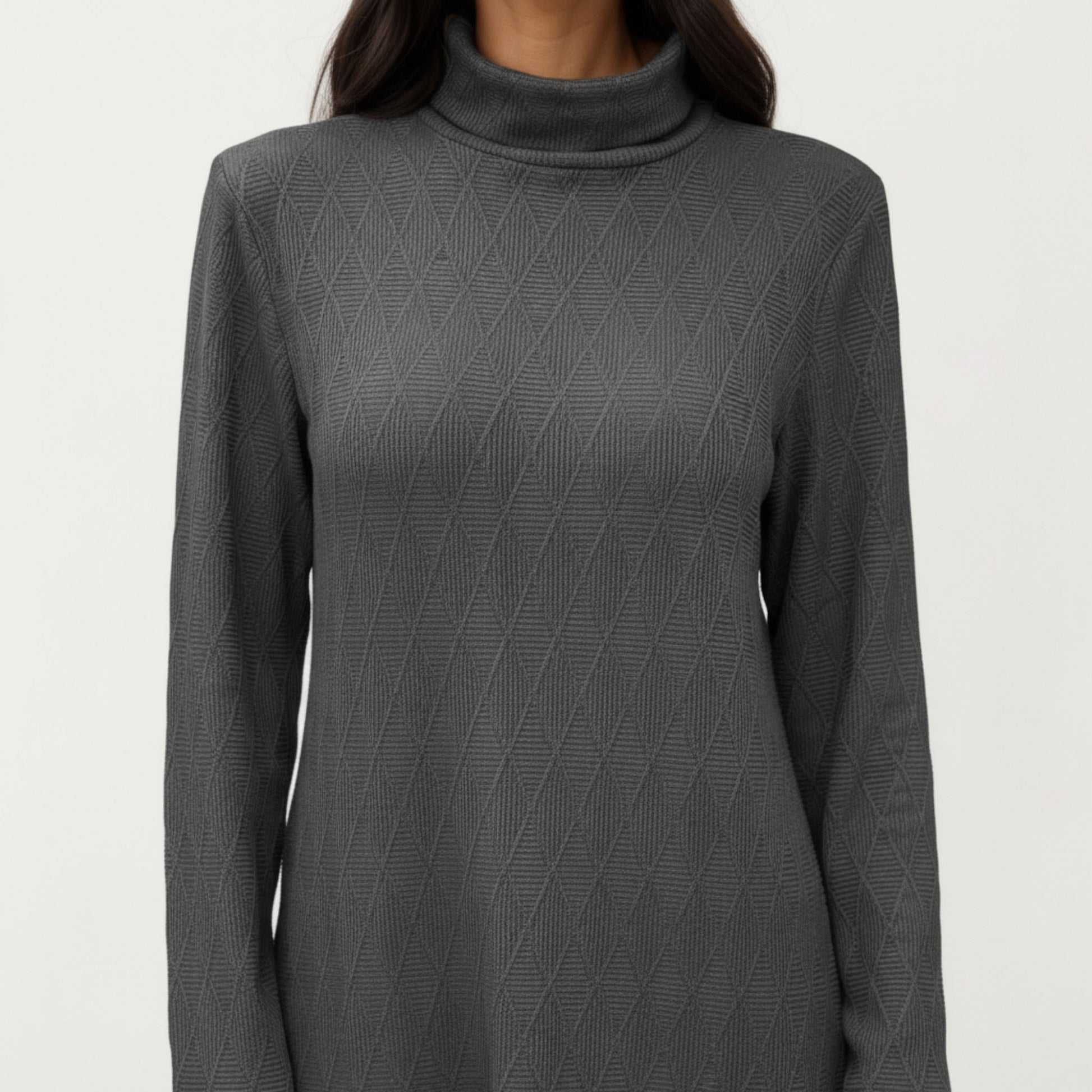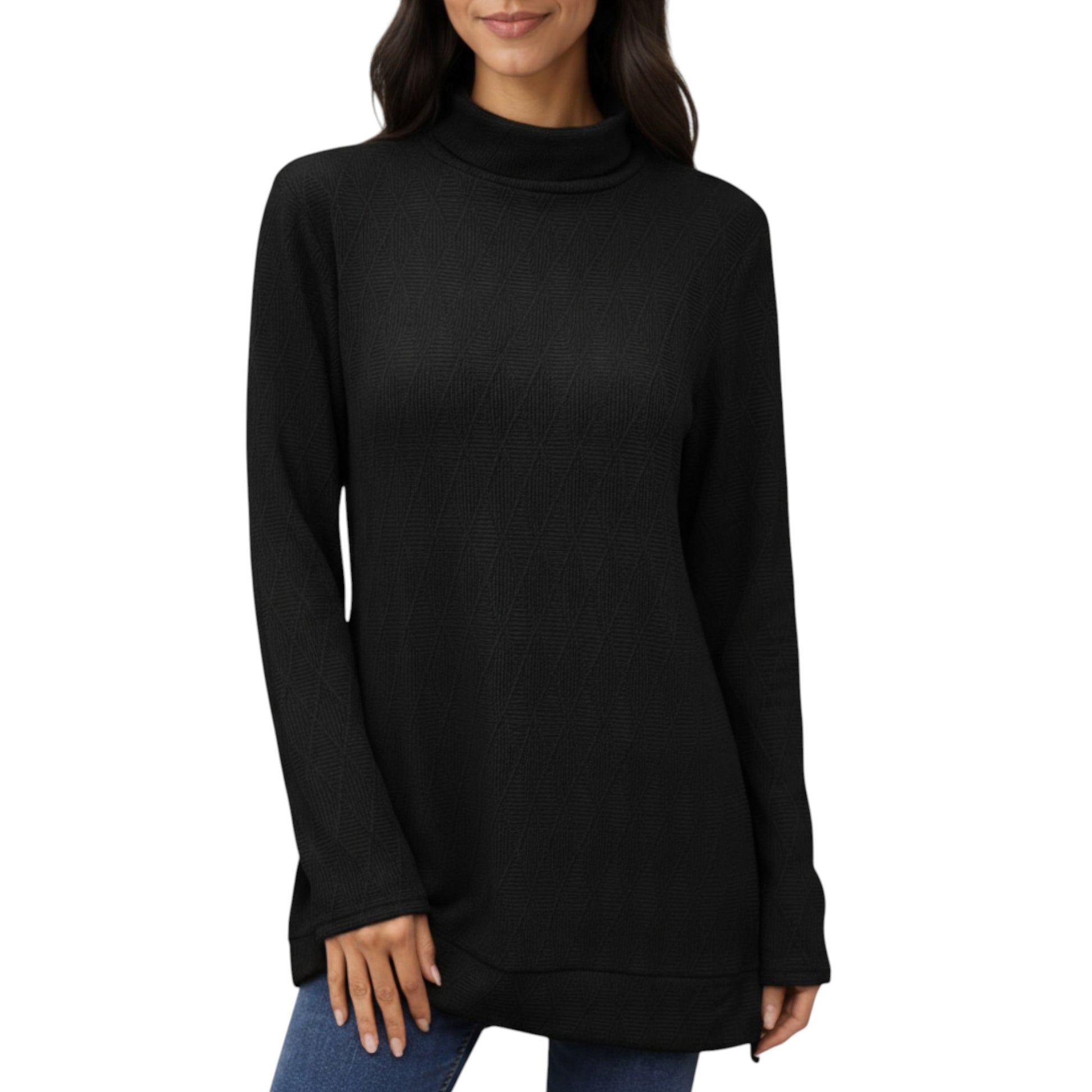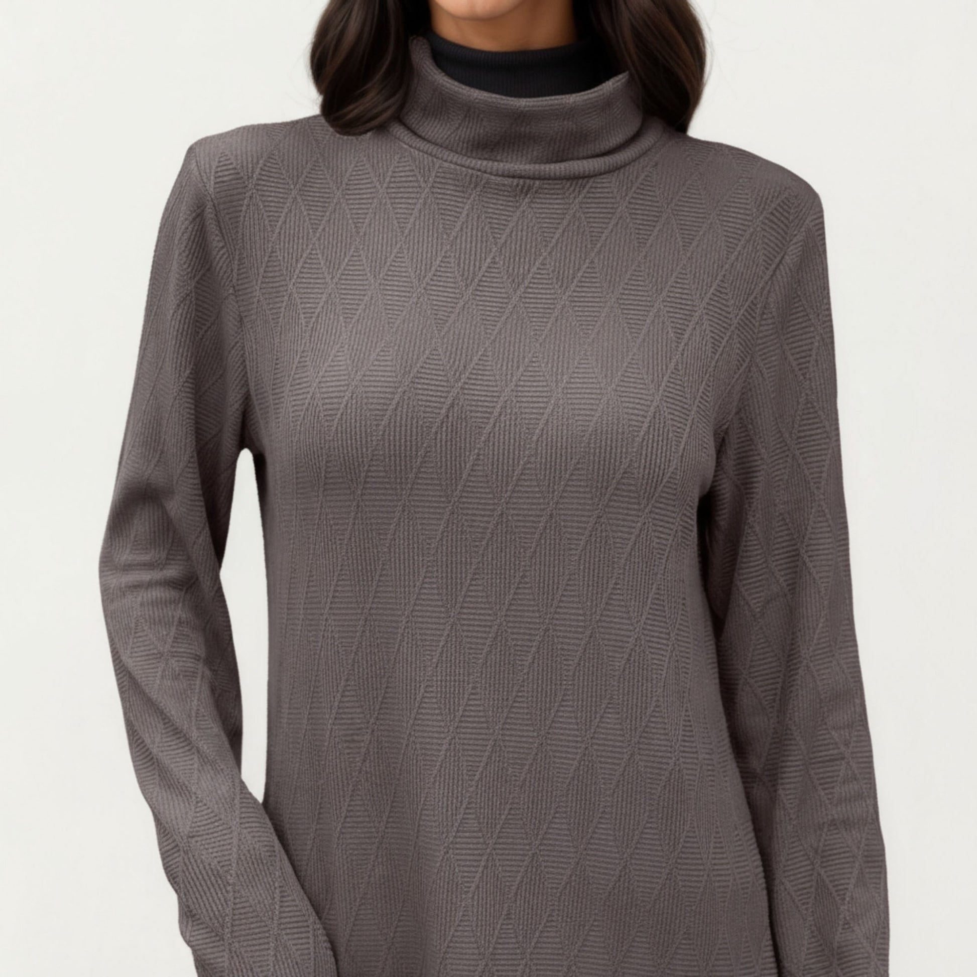 Long Sleeve Collared Knit Top with Subtle Textured Pattern and Relaxed Fit