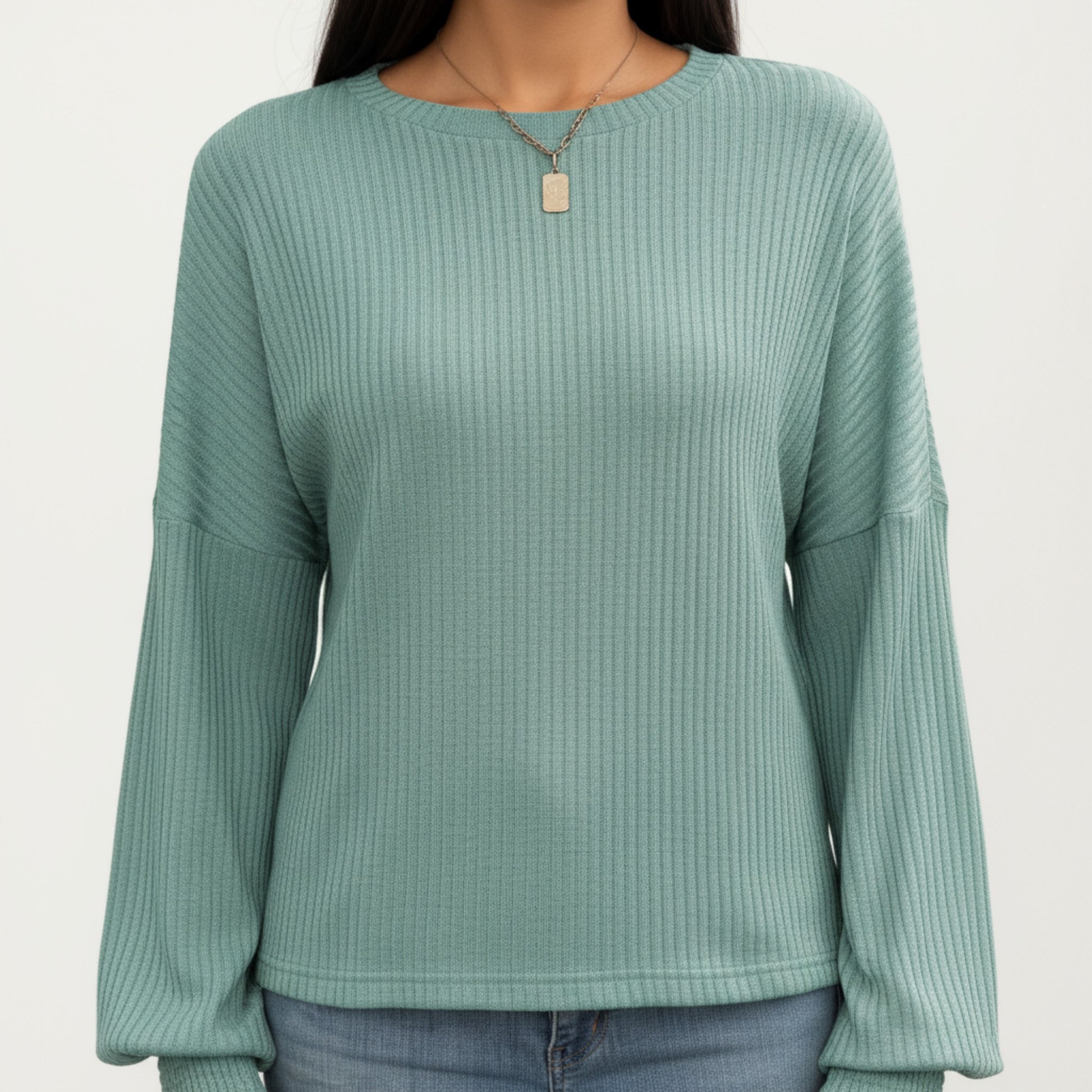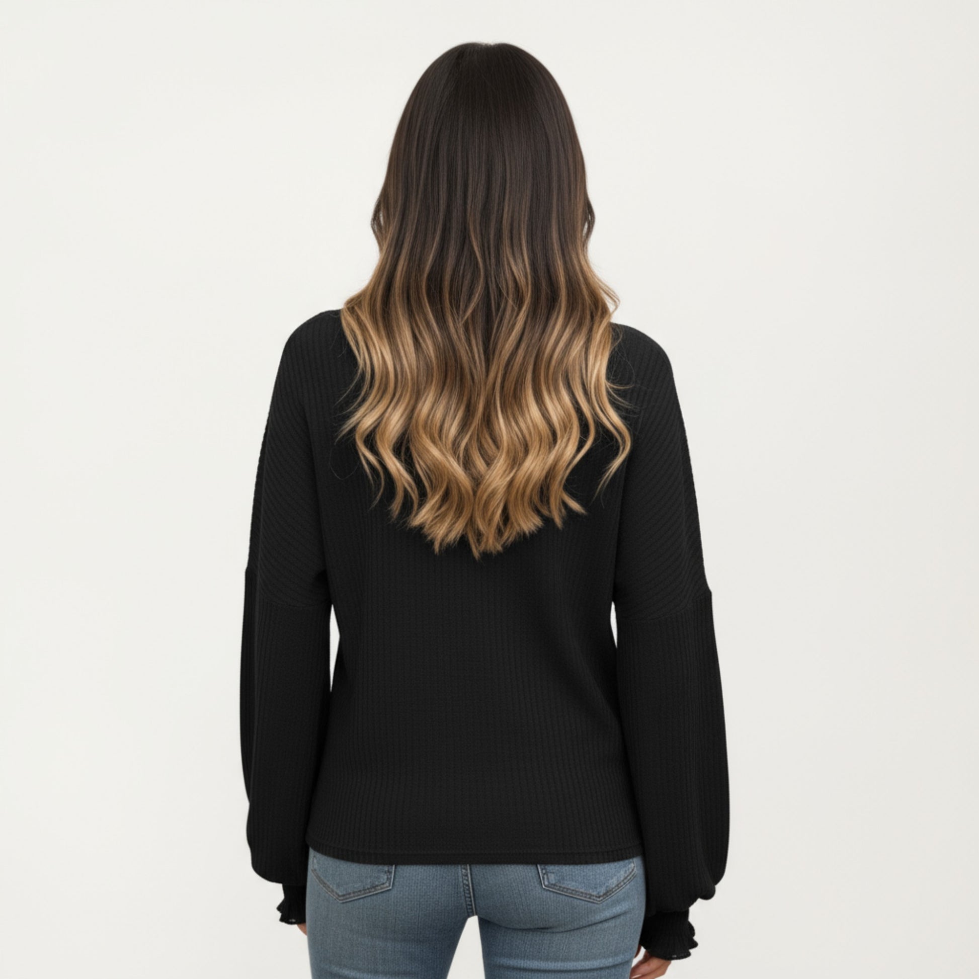 Long Sleeve Ribbed Knit Top with Subtle Ruffle Cuff Detail
