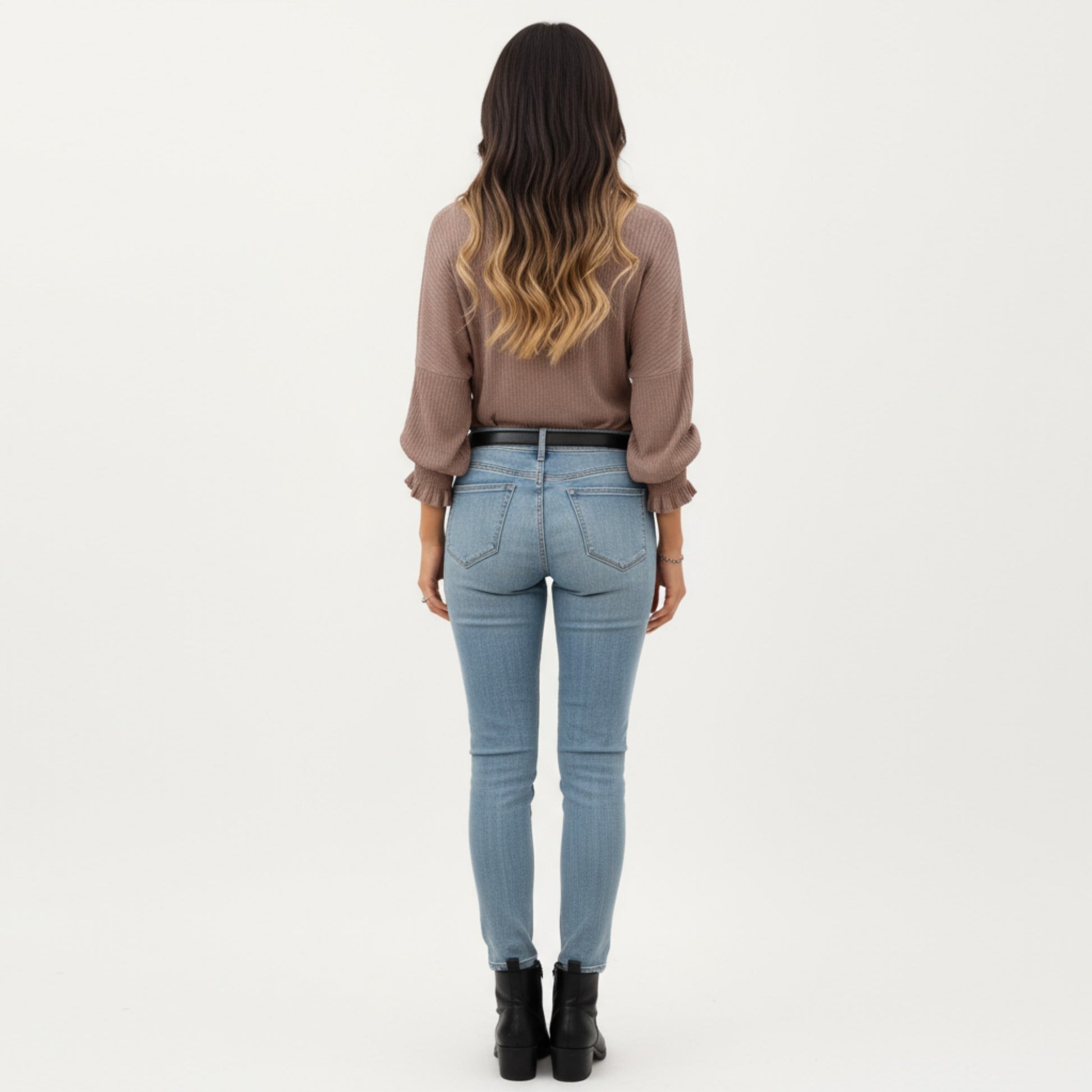 The Anna-Kaci Women's Long Sleeve Ribbed Knit Top combines a classic silhouette with delicate details. Featuring a soft ribbed texture and feminine ruffle cuffs, this top offers a comfortable yet polished style. Perfect for layering or wearing on its own, it pairs effortlessly with jeans, skirts, or tailored pants for versatile outfits.